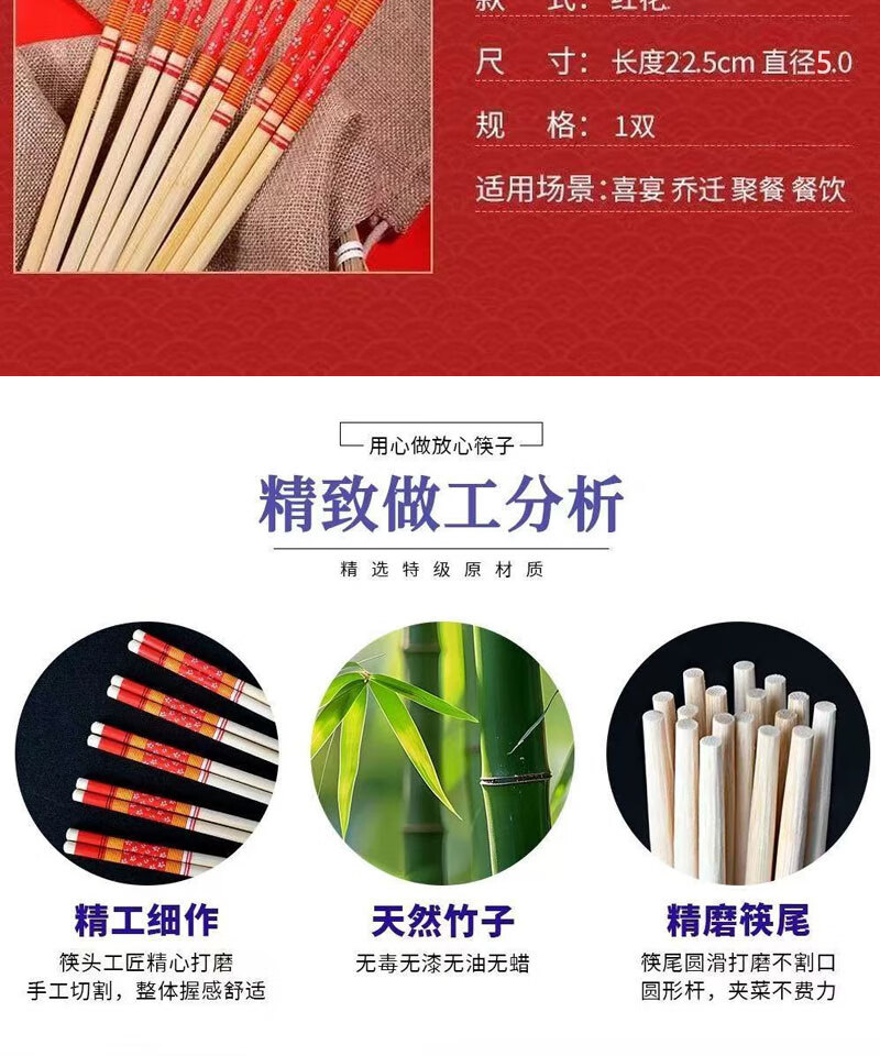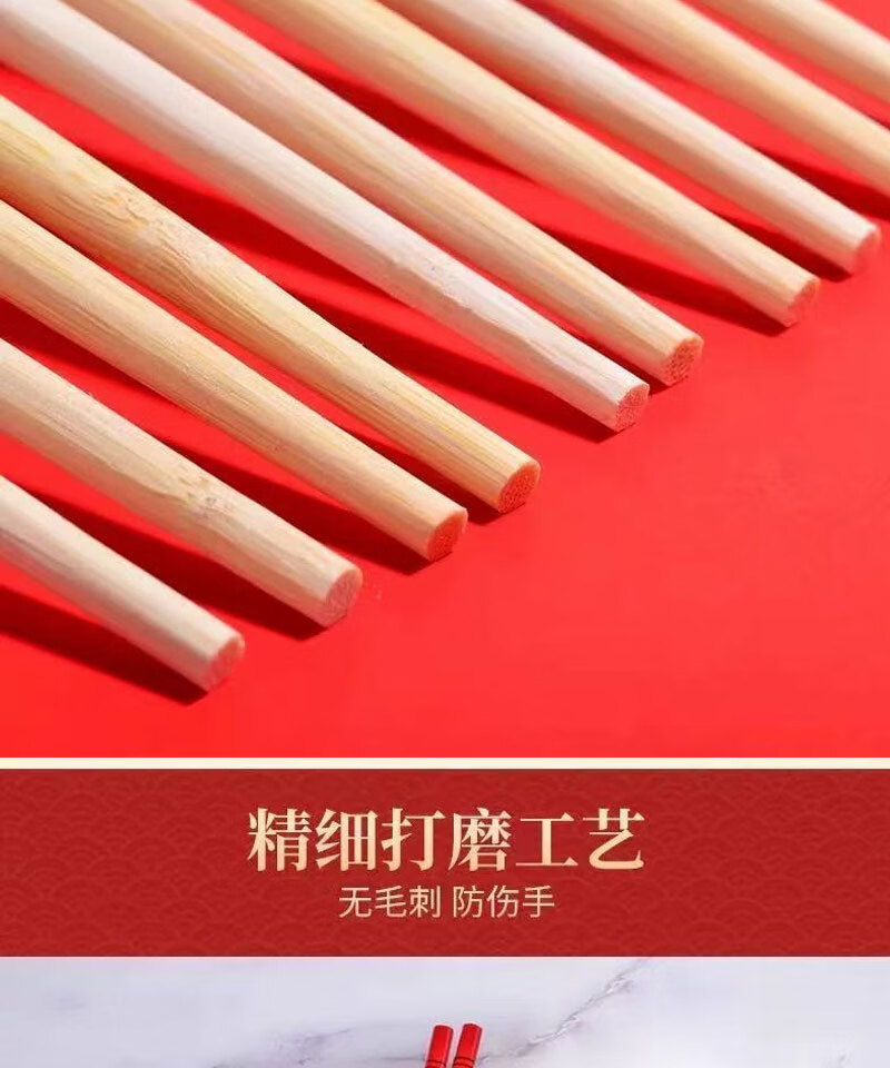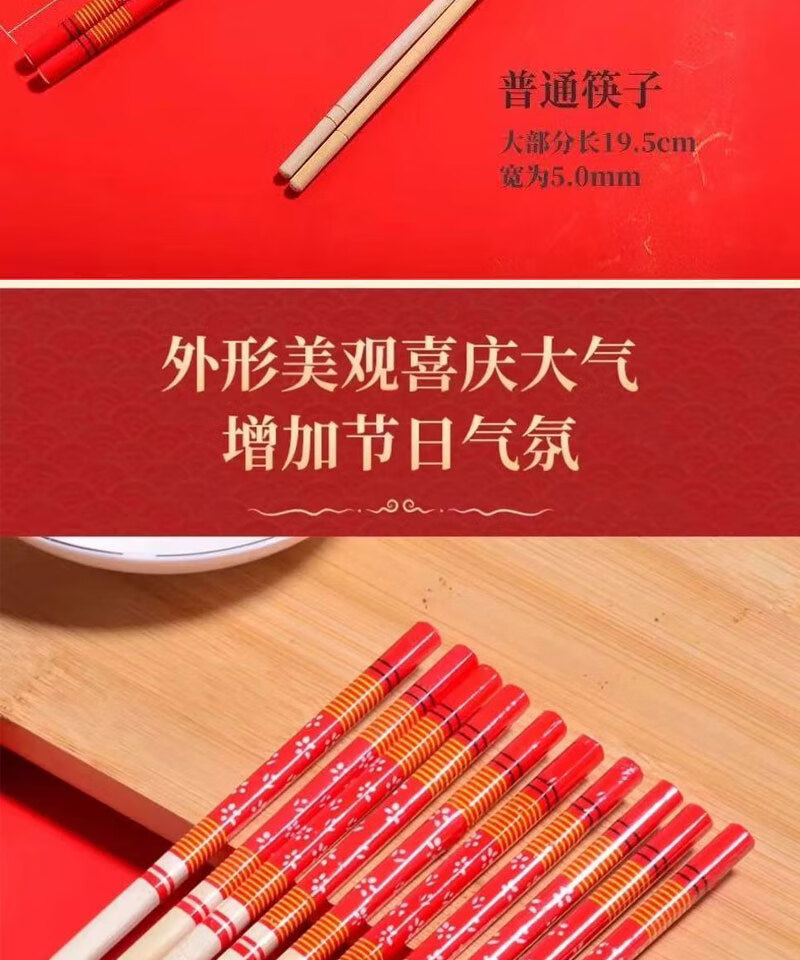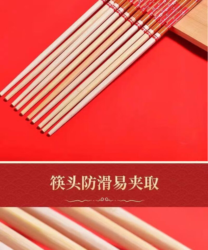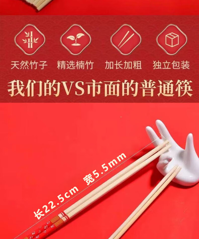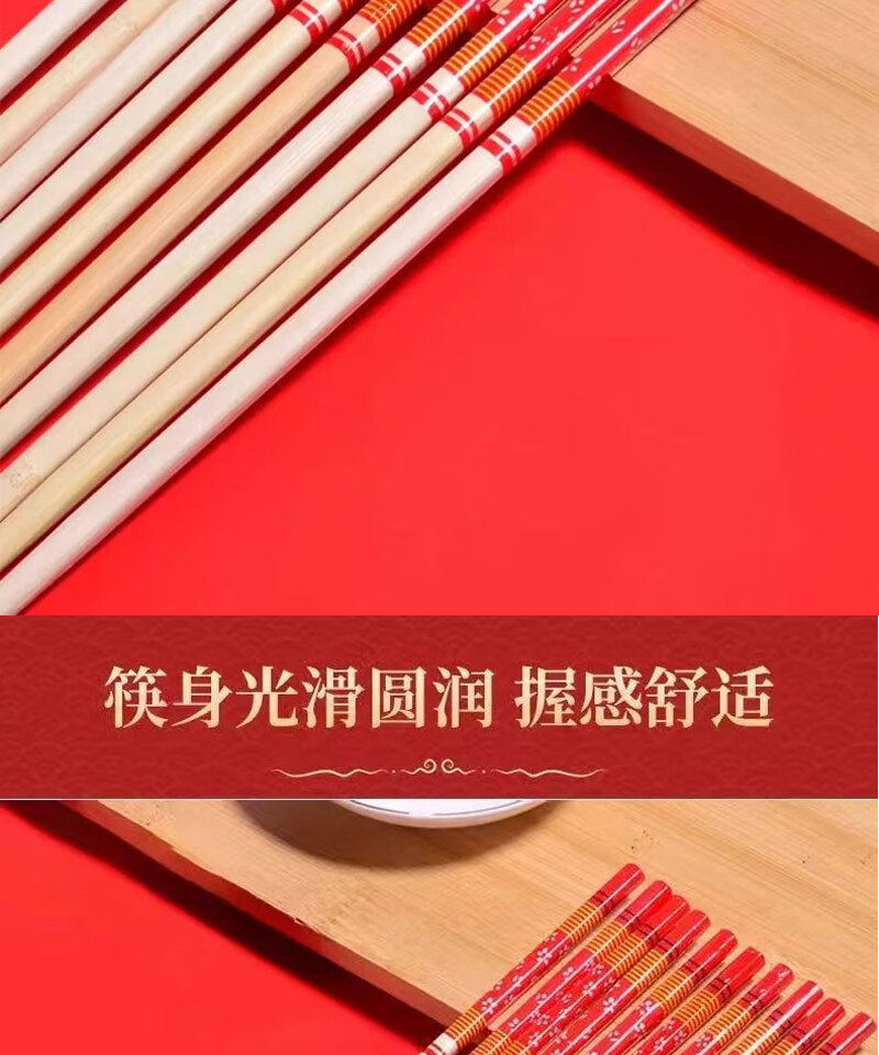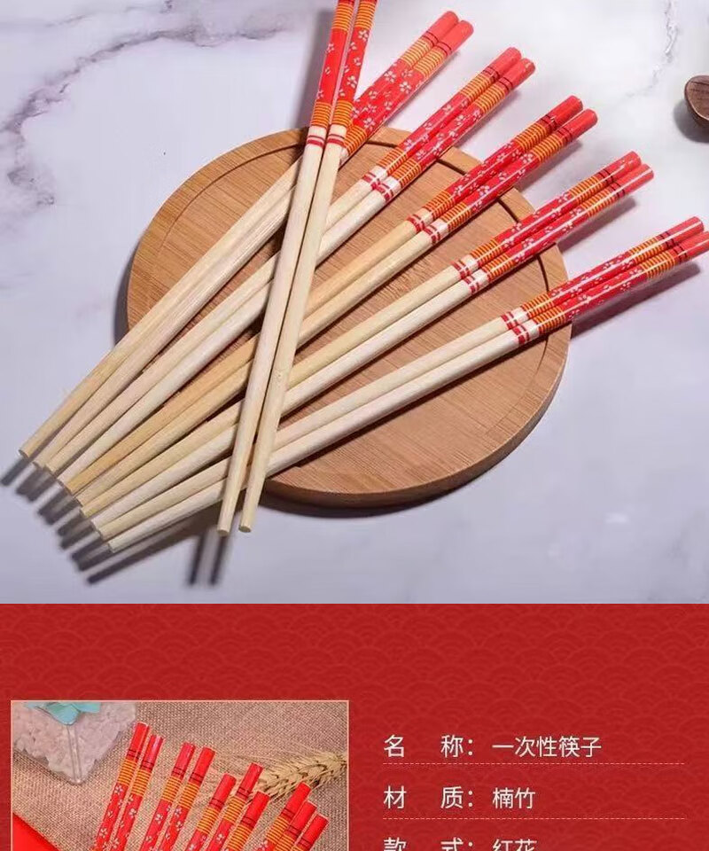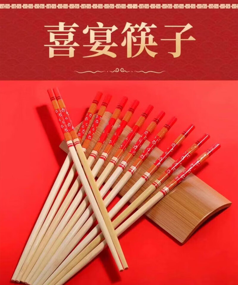 Guoweili disposable chopsticks individually packaged thick and long red flower chopsticks festive banquet and event bamboo chopsticks red flower chopsticks 50 pairs individually packaged