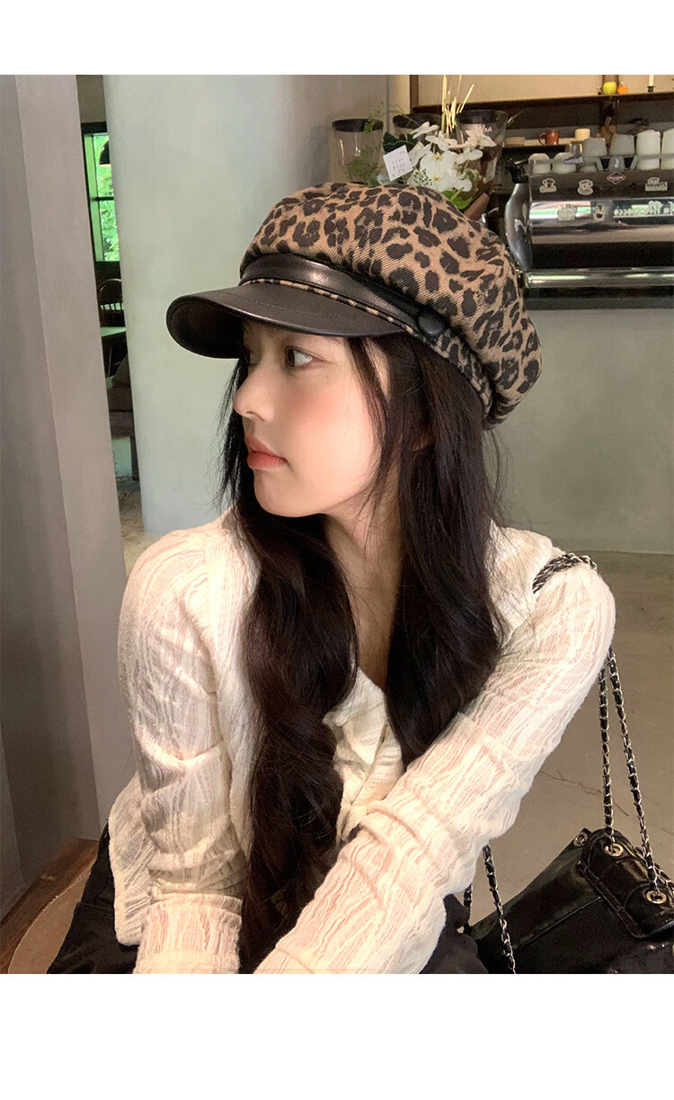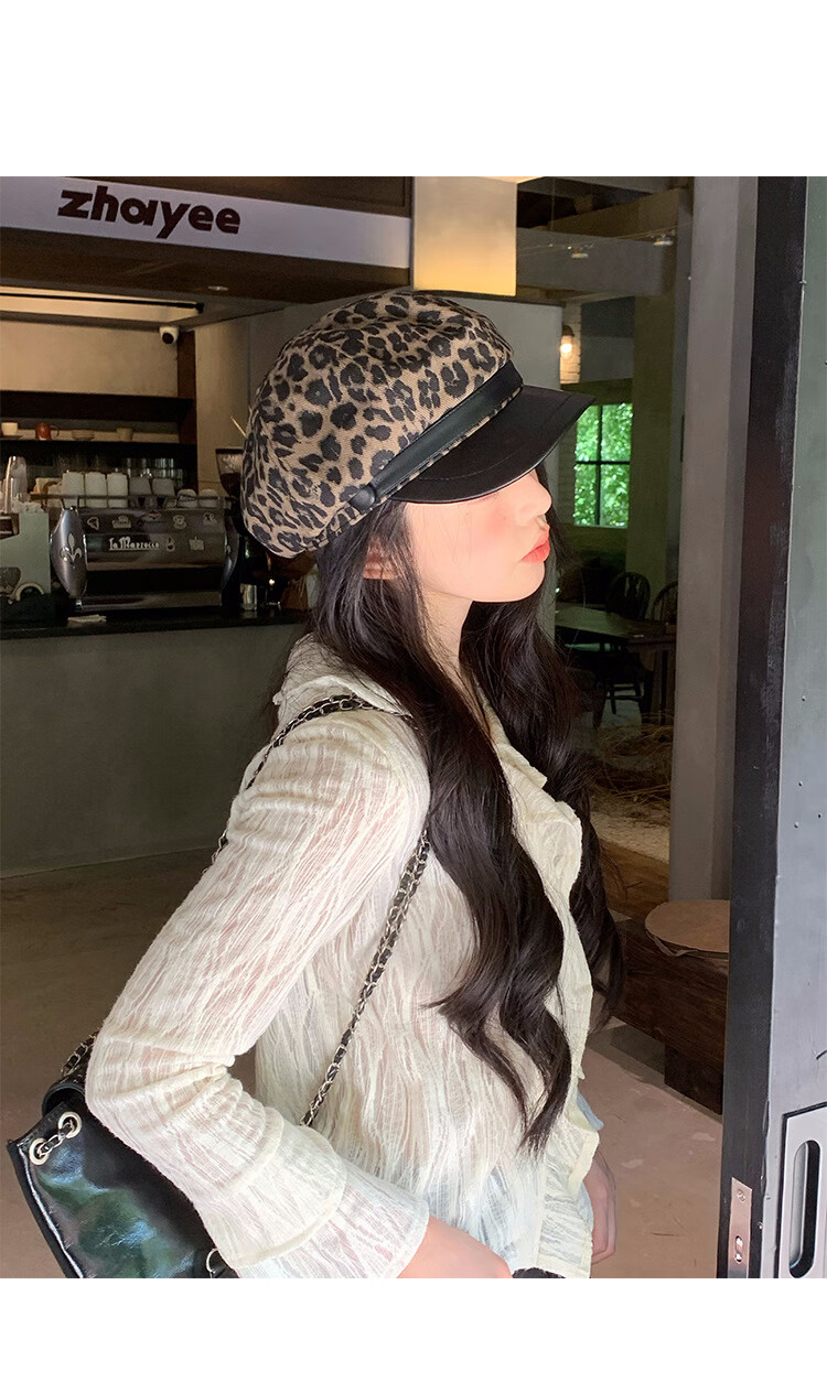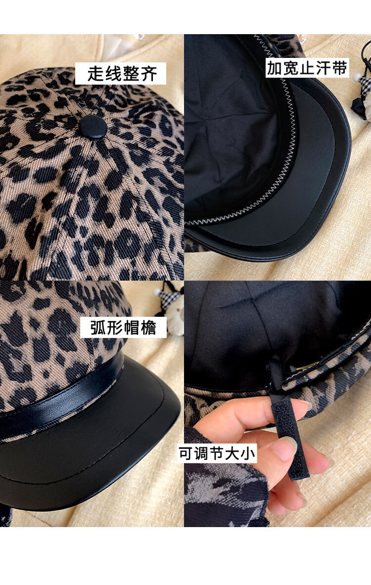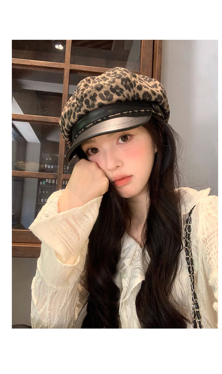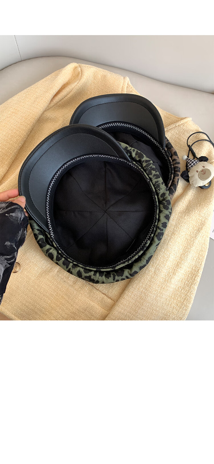 2025 New Retro Leopard Print Beret Girls Autumn Millennial Niche Octagonal Hat Big Head Circumference Showing Face Hat Fashion Brown Leopard Print