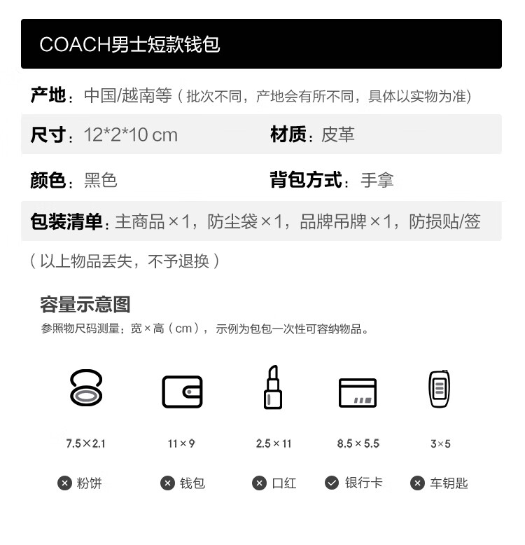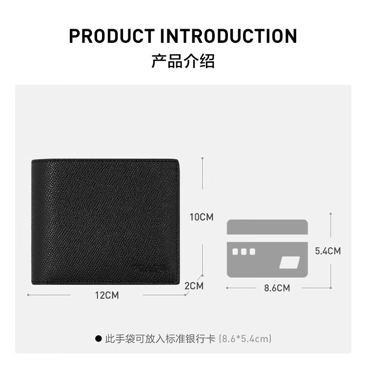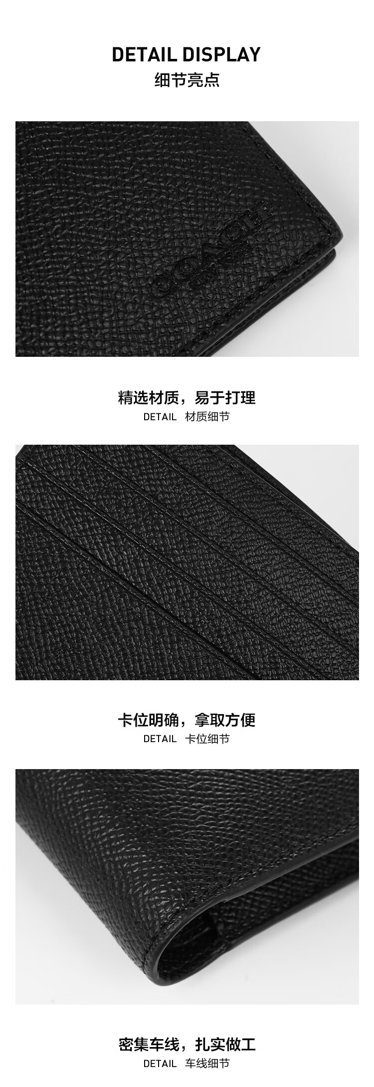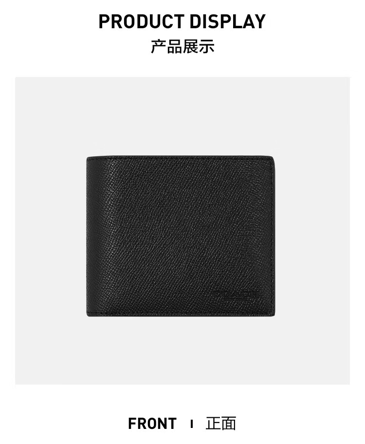 COACH Men's Short Half-Fold Cow Split Leather Wallet Black CR899