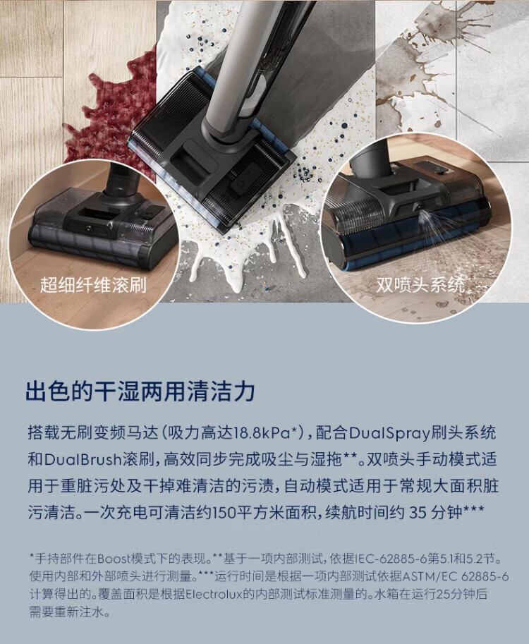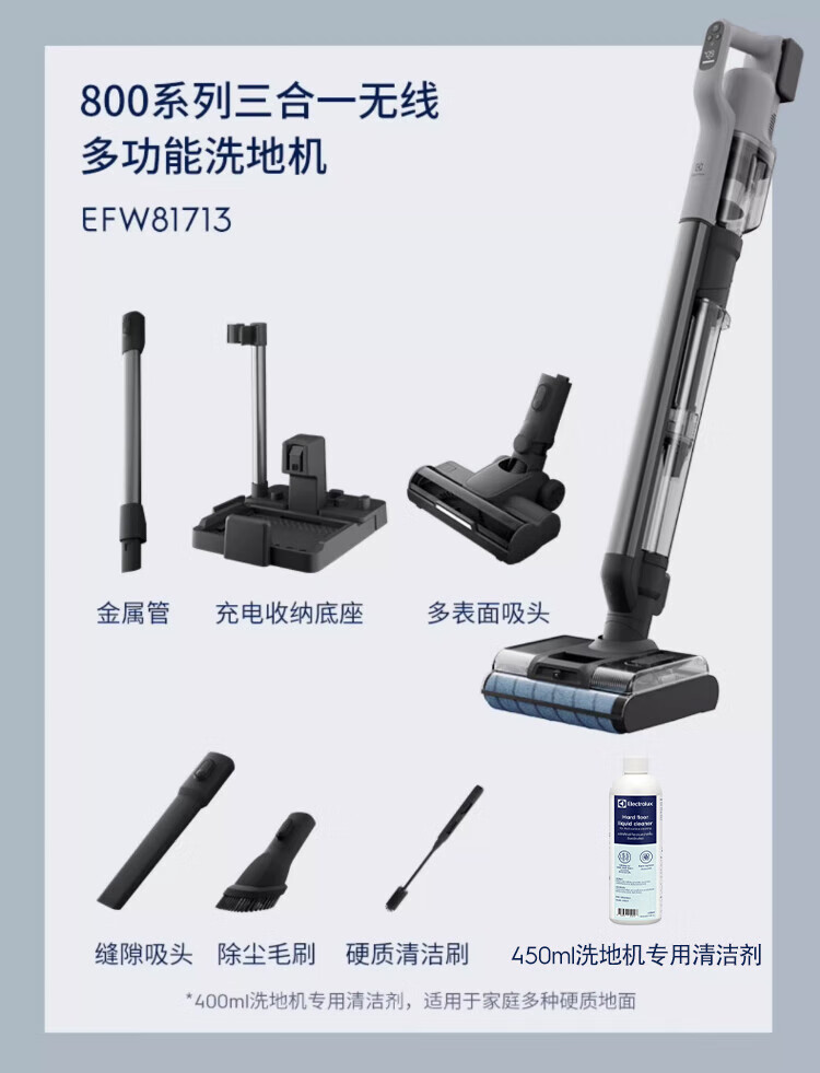 Electrolux vacuum cleaner, floor scrubber, wireless smart home sweeper, all-in-one suction and mopping electric mop, handheld wet and dry storage floor wiper EFW81713