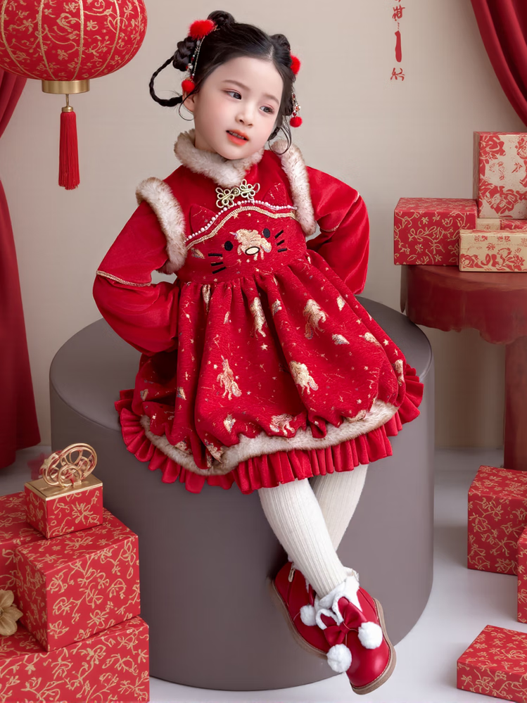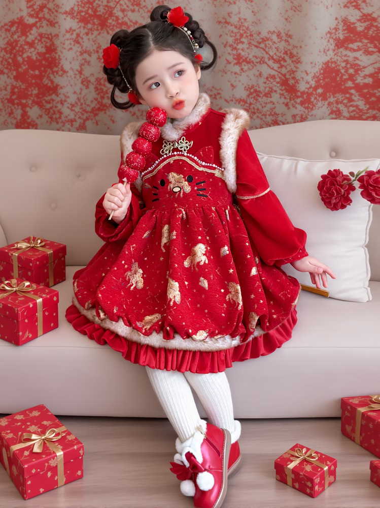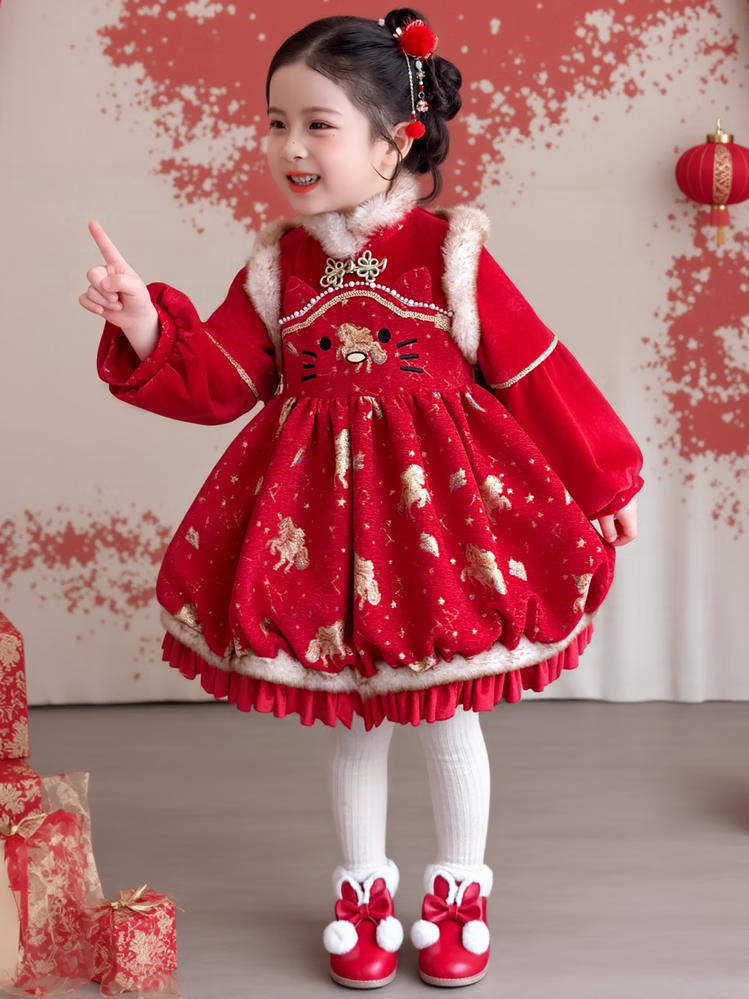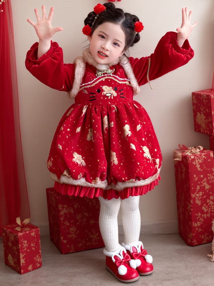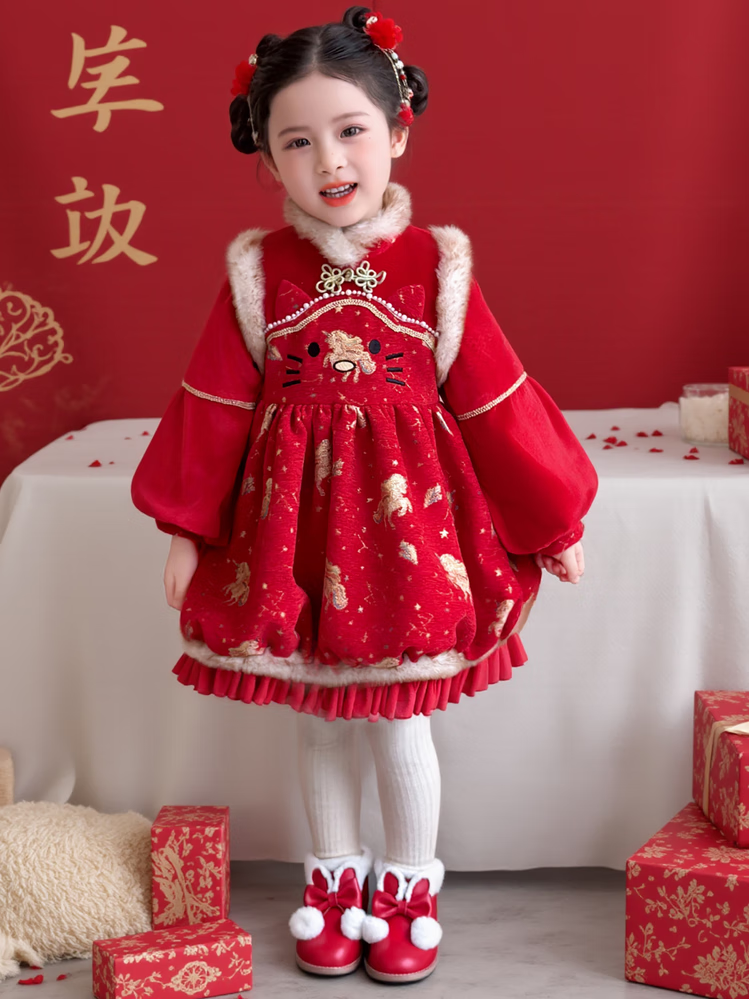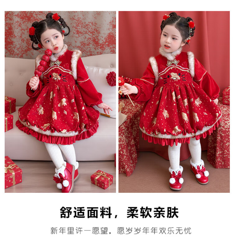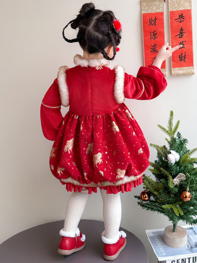 G.duck little yellow duck children's clothing New Year's greetings girls' dresses winter children's New Year's clothing baby girl's New Year's Day performance clothing red 110 recommended 100-110cm4-5 years old