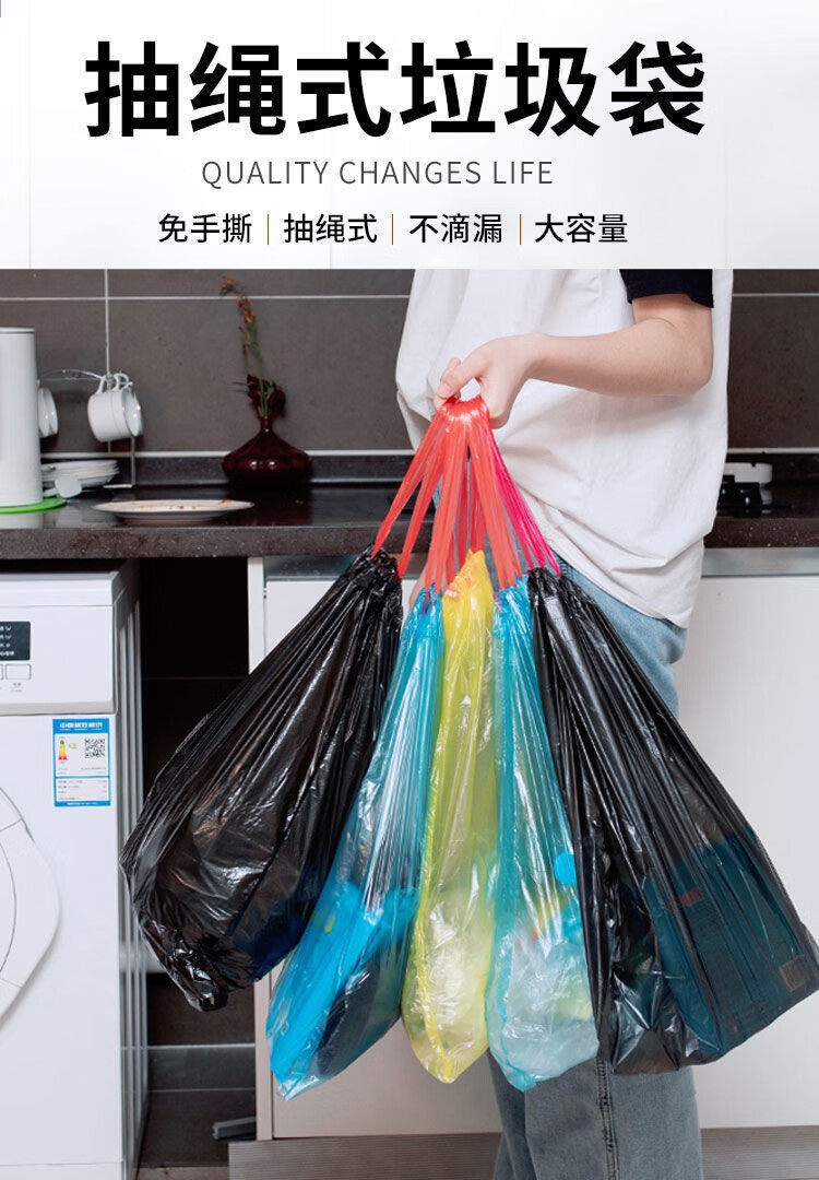 Yangchen Drawstring Garbage Bag Portable Drawstring Garbage Bag Large Roll Thickened Large Drawstring Garbage Bag 105 Drawstrings Random Colors
