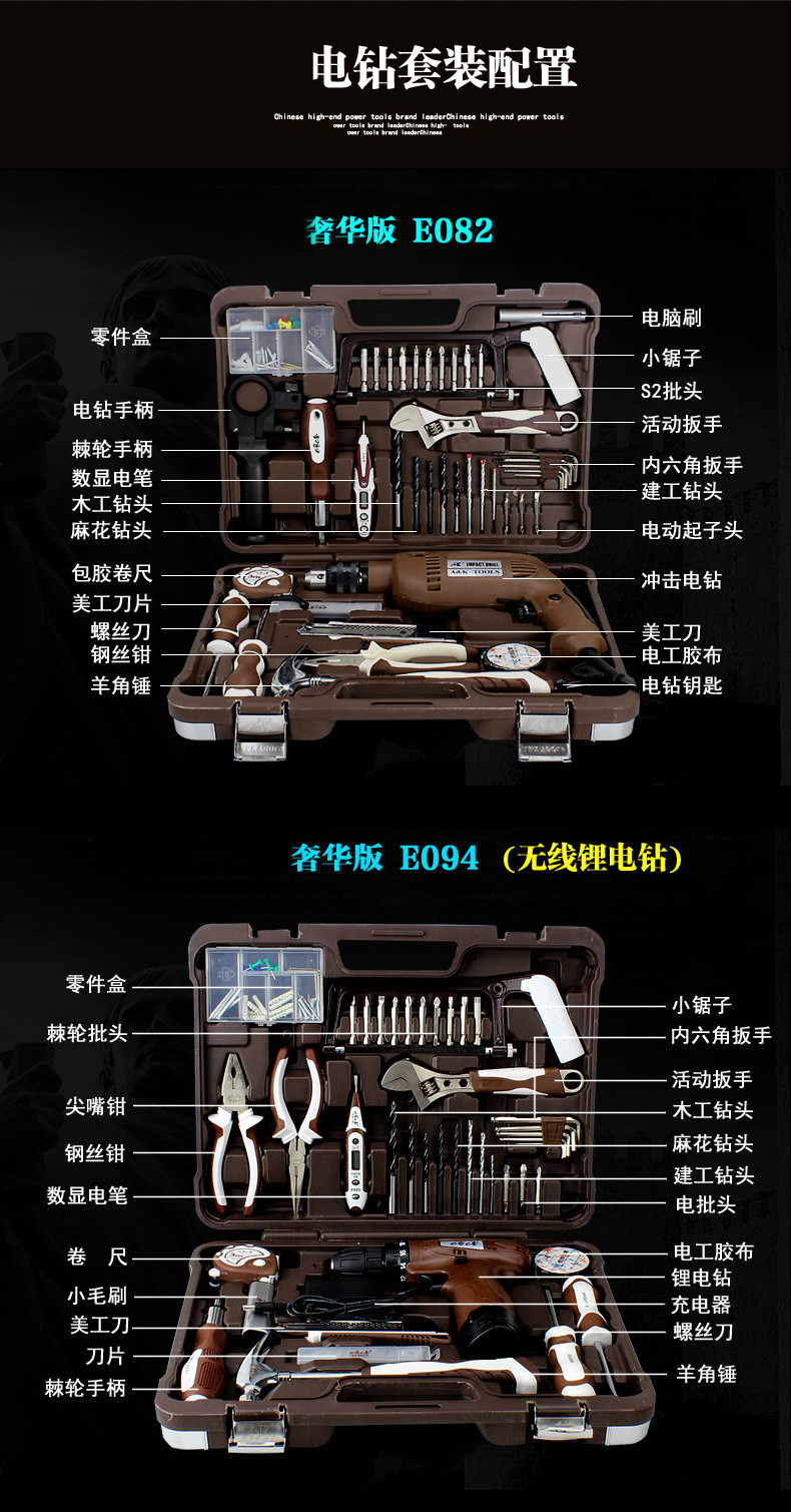 Li Haojia A-point KAK multi-function tool box set repair electrician set home vehicle hardware set version E124 cordless drill