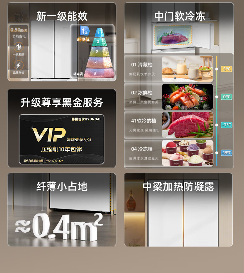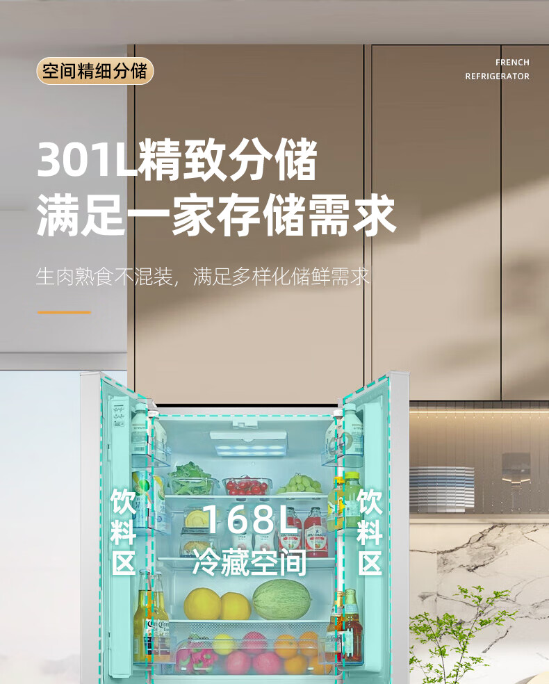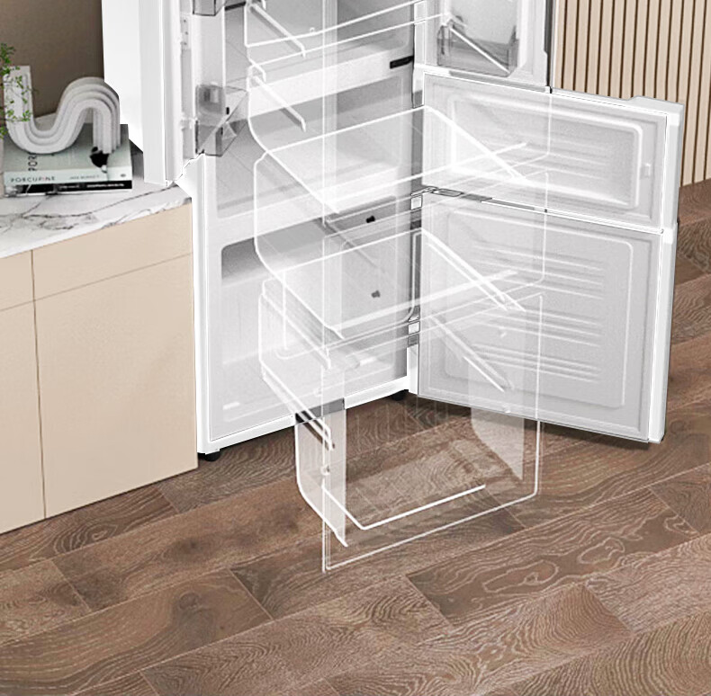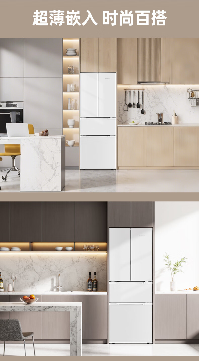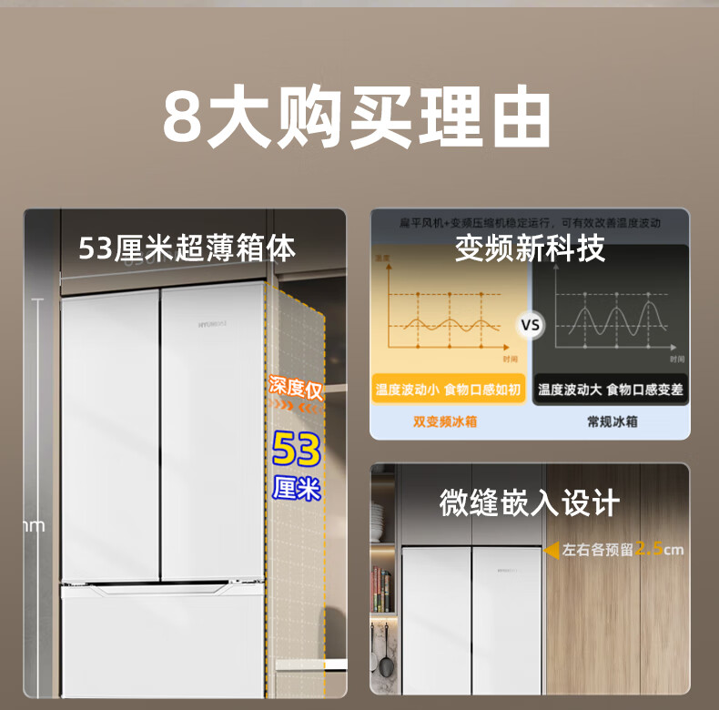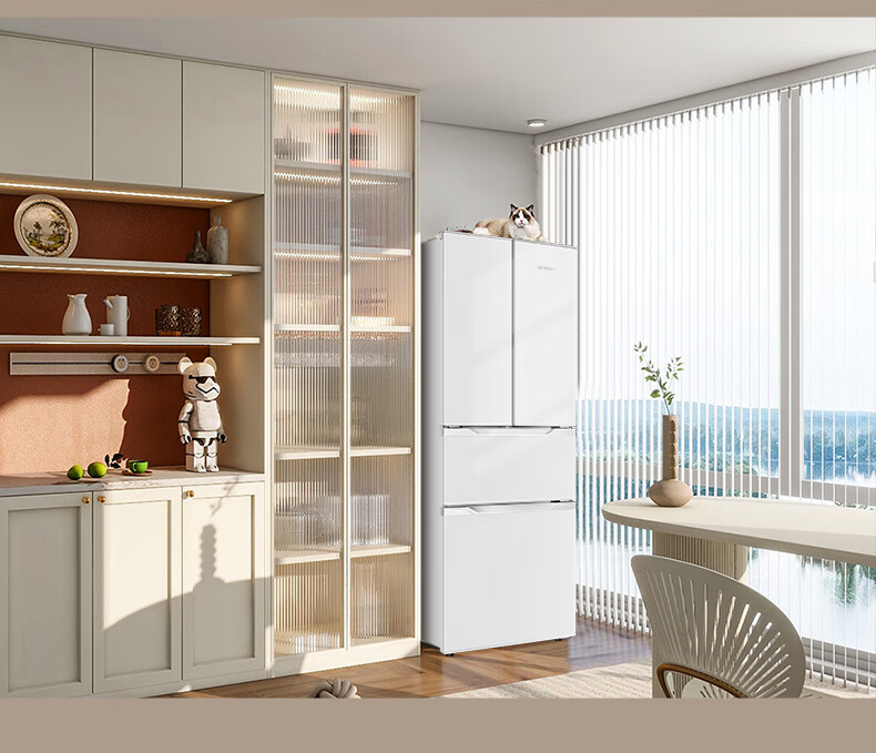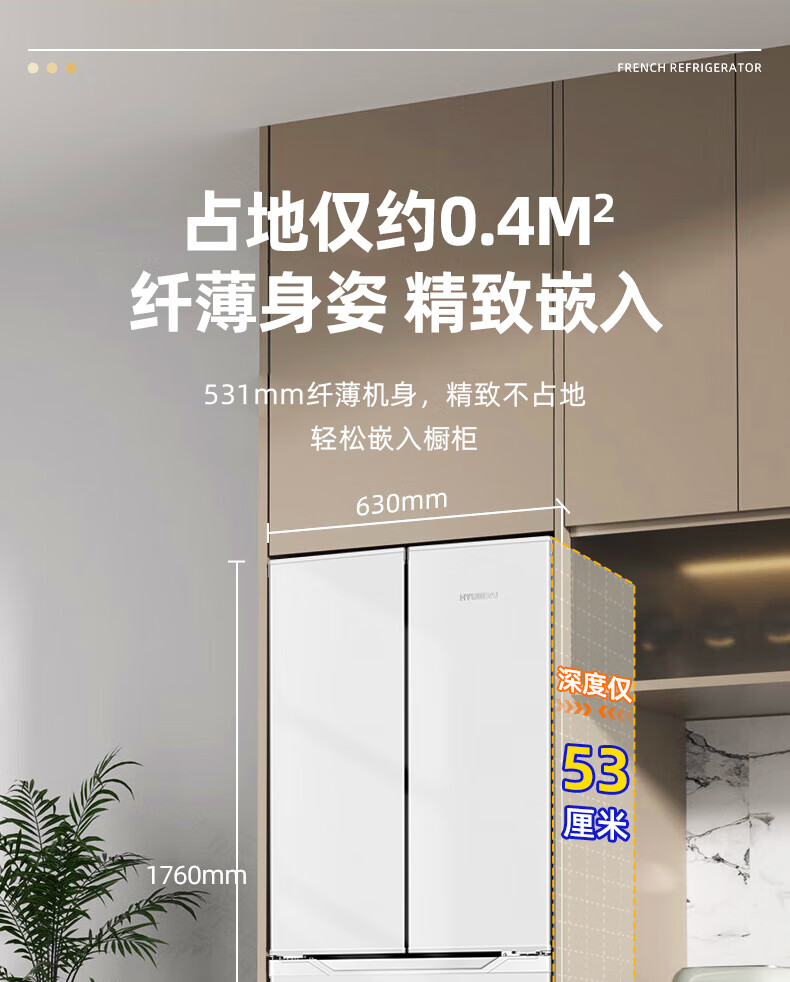 HYUNDAI Korean modern refrigerator large capacity first-class energy efficiency home frequency conversion power-saving white French cross four-door silent low-noise energy-saving ultra-thin embedded air-cooled frost-free 301L French white first-class frequency conversion 53 cm ultra-thin embedded