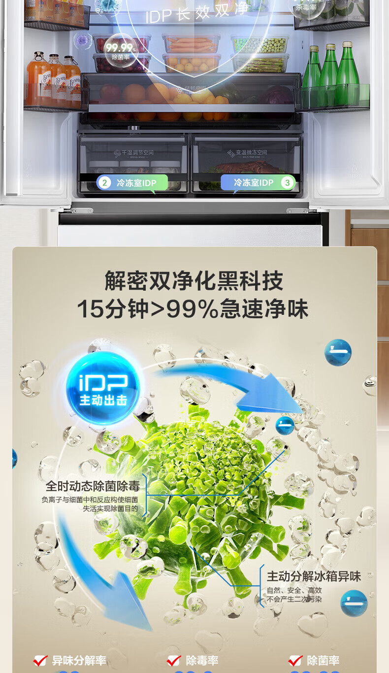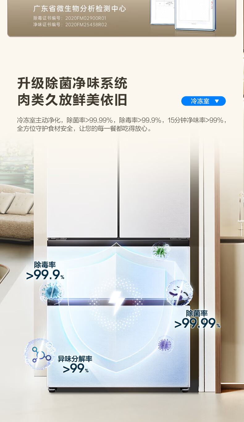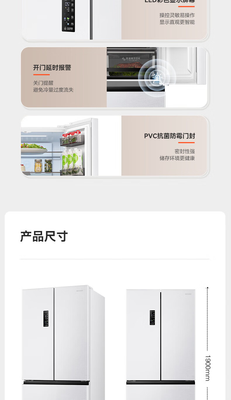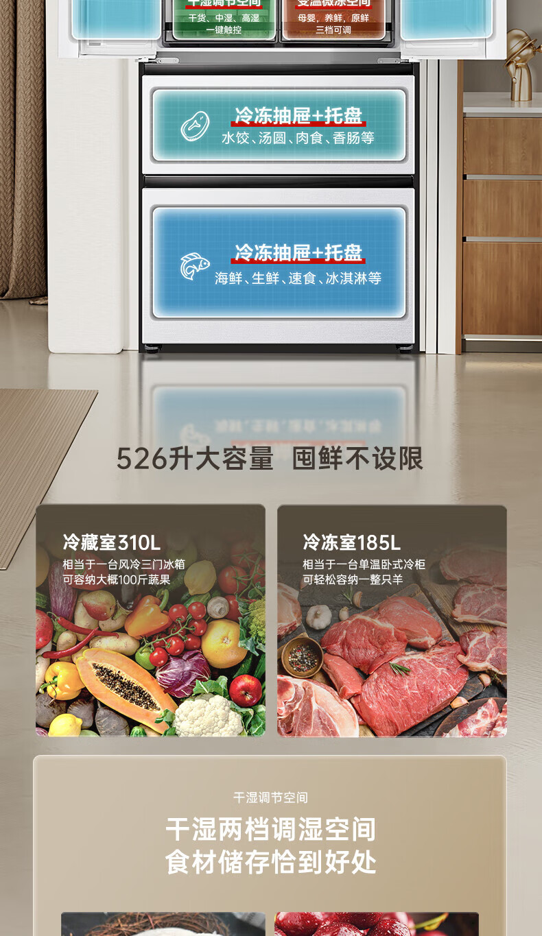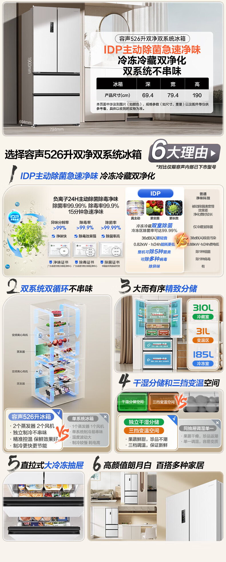 Rongsheng Refrigerator 526 liters dual-clean dual-system French multi-door four-door refrigerator household first-class energy efficiency air-cooled frost-free energy-saving large capacity BCD-526WD1MPA white dual system no odor + IDP active sterilization + air-cooled frost-free