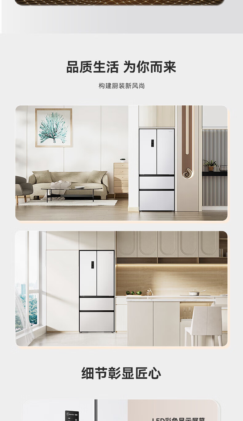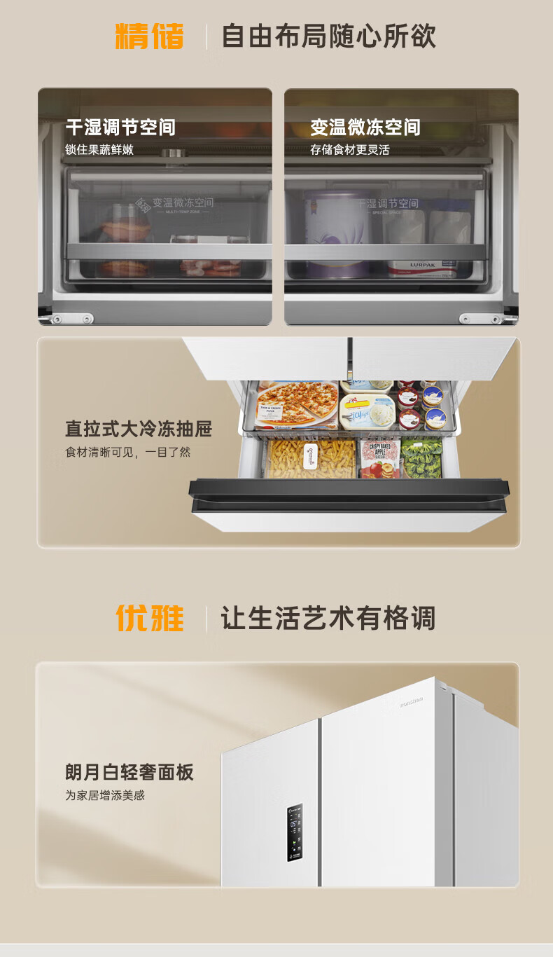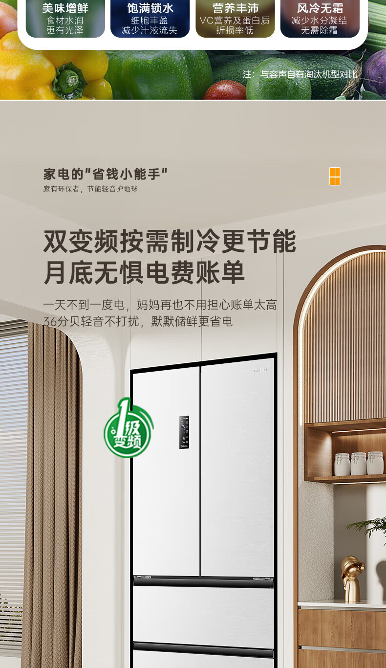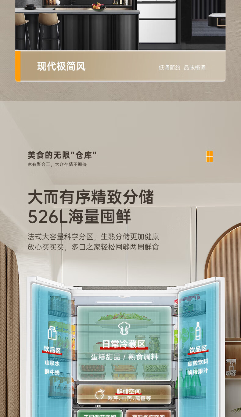 Rongsheng Refrigerator 526 liters dual-clean dual-system French multi-door four-door refrigerator household first-class energy efficiency air-cooled frost-free energy-saving large capacity BCD-526WD1MPA white dual system no odor + IDP active sterilization + air-cooled frost-free