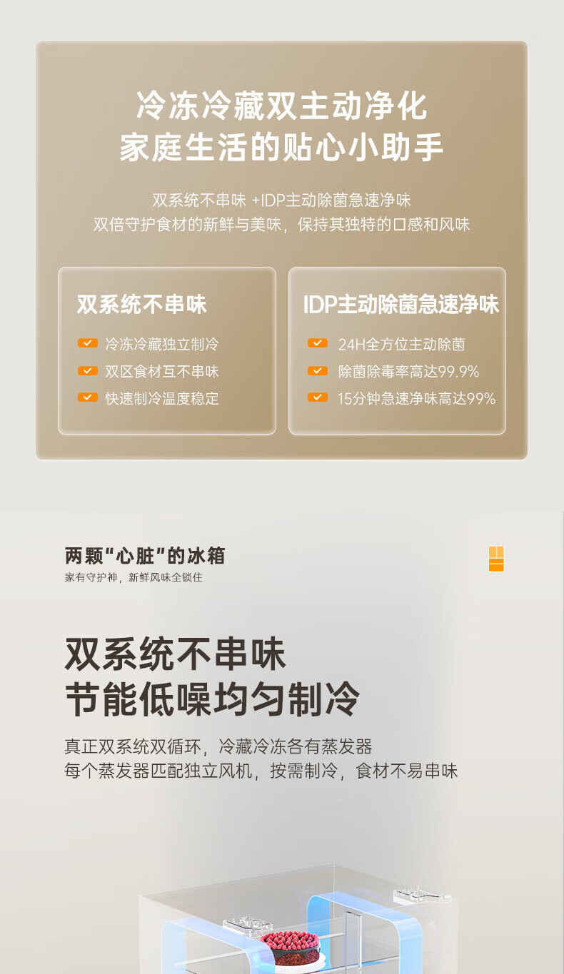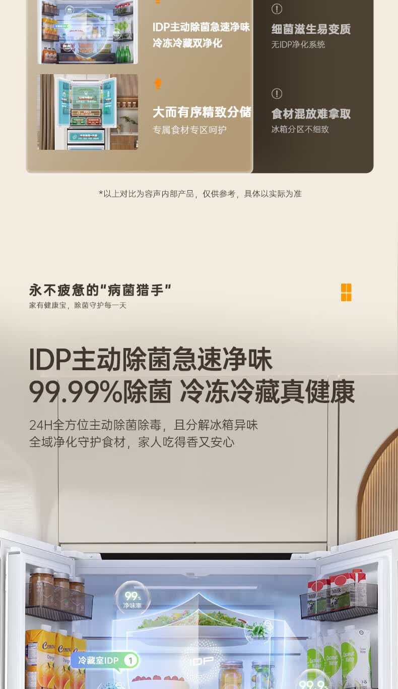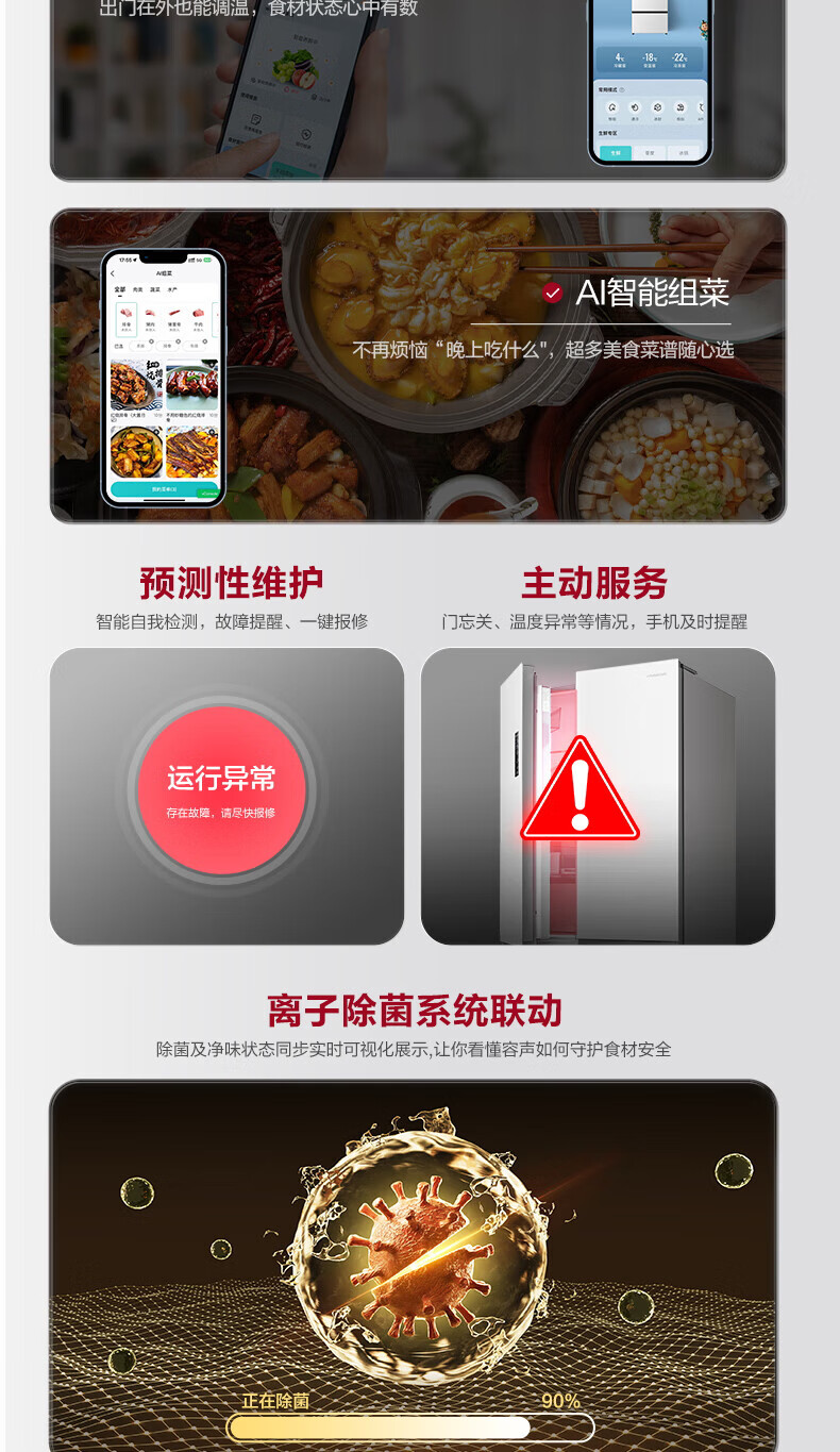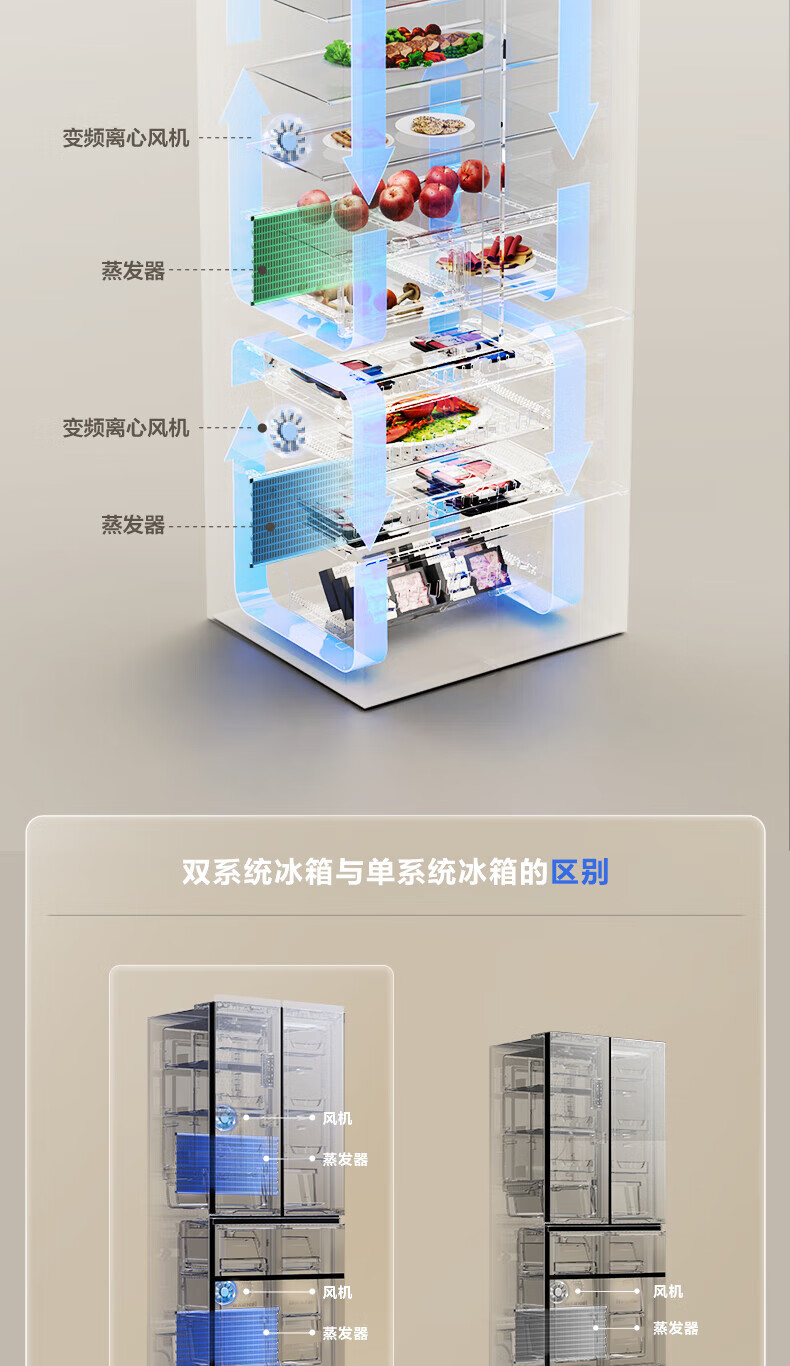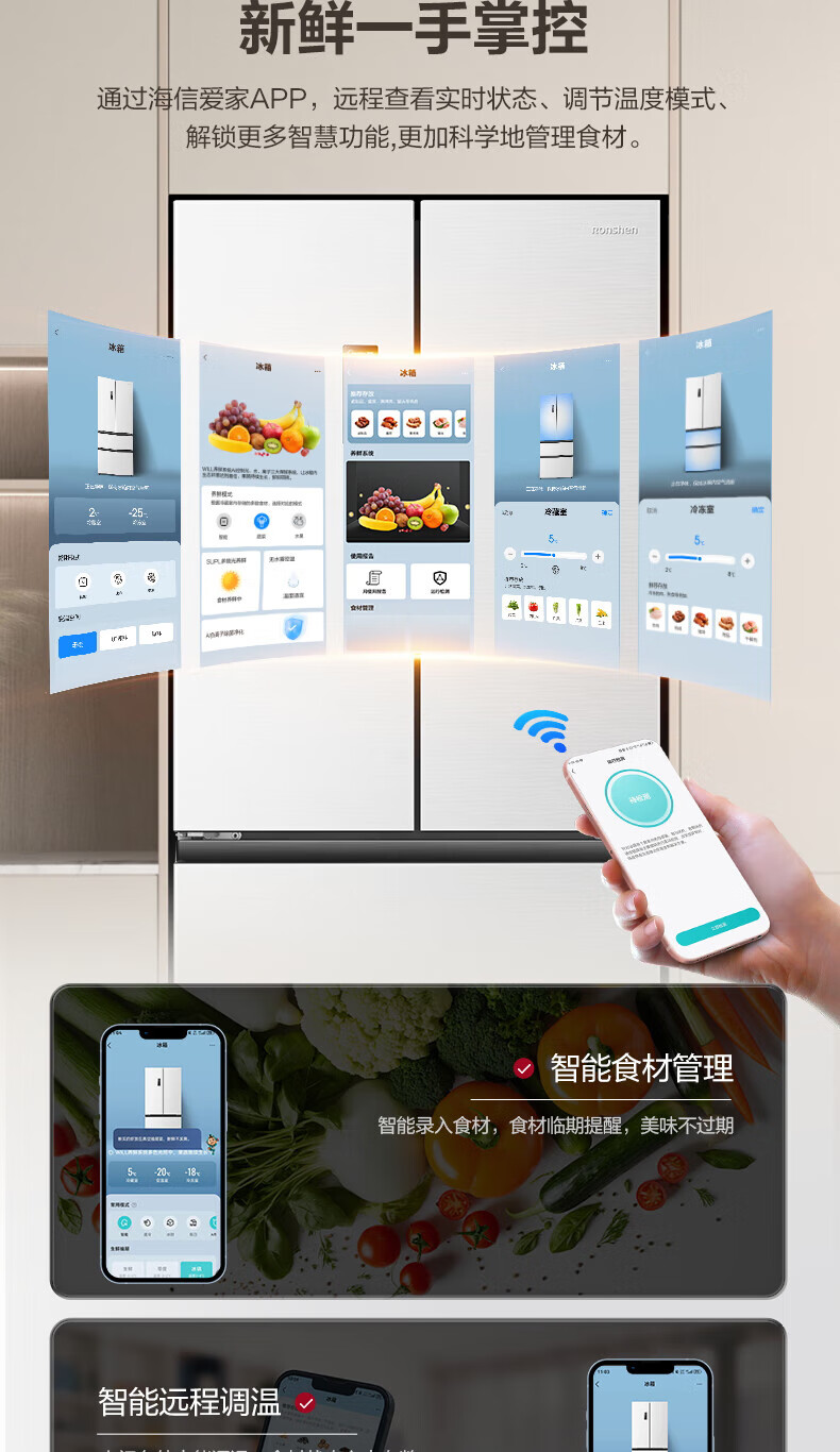 Rongsheng Refrigerator 526 liters dual-clean dual-system French multi-door four-door refrigerator household first-class energy efficiency air-cooled frost-free energy-saving large capacity BCD-526WD1MPA white dual system no odor + IDP active sterilization + air-cooled frost-free