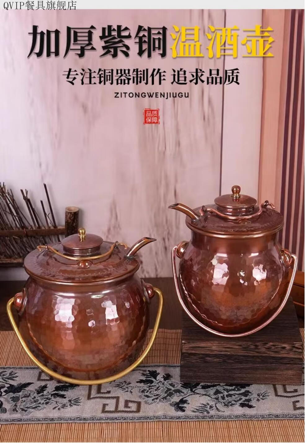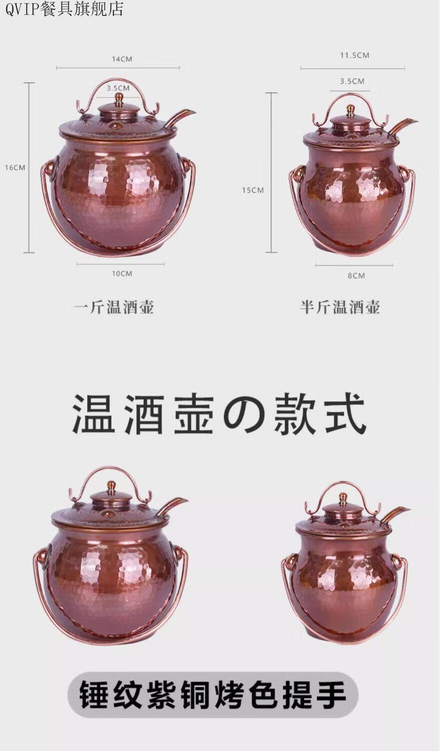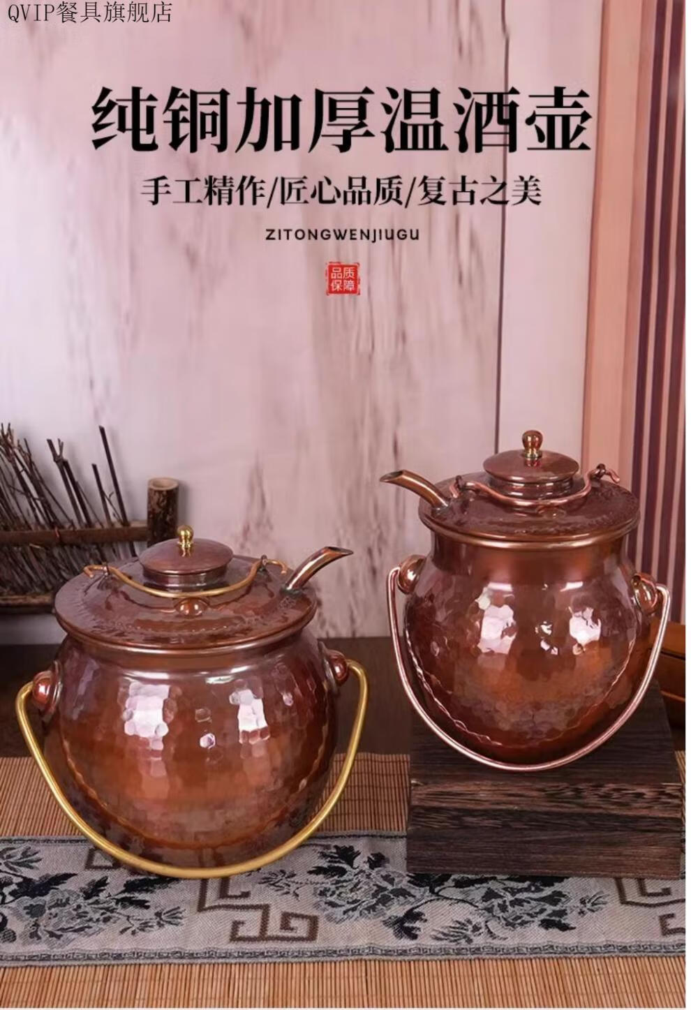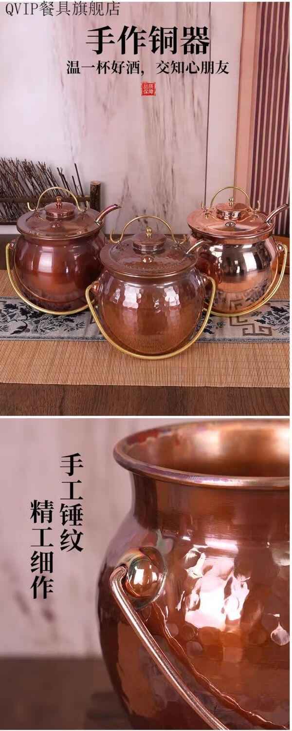 QVIP Pure Copper Warming Wine Kettle Chinese Style Antique Chinese Style Household Handmade Red Copper Winter Hot Wine Thickening 1 Jin Jin is equal to 0.5 kg Wine Warmer Hammered Color 1 Jin Jin is equal to 0.5 kg Packed Copper Handle