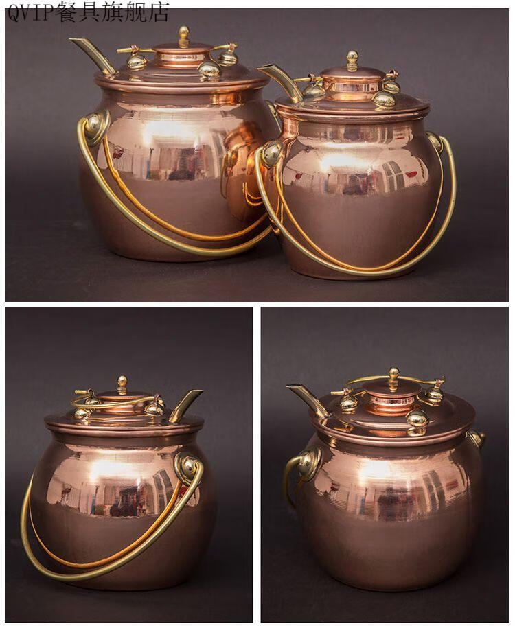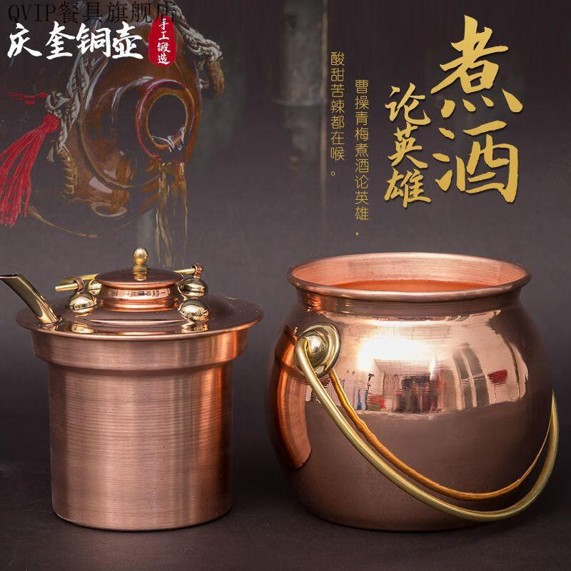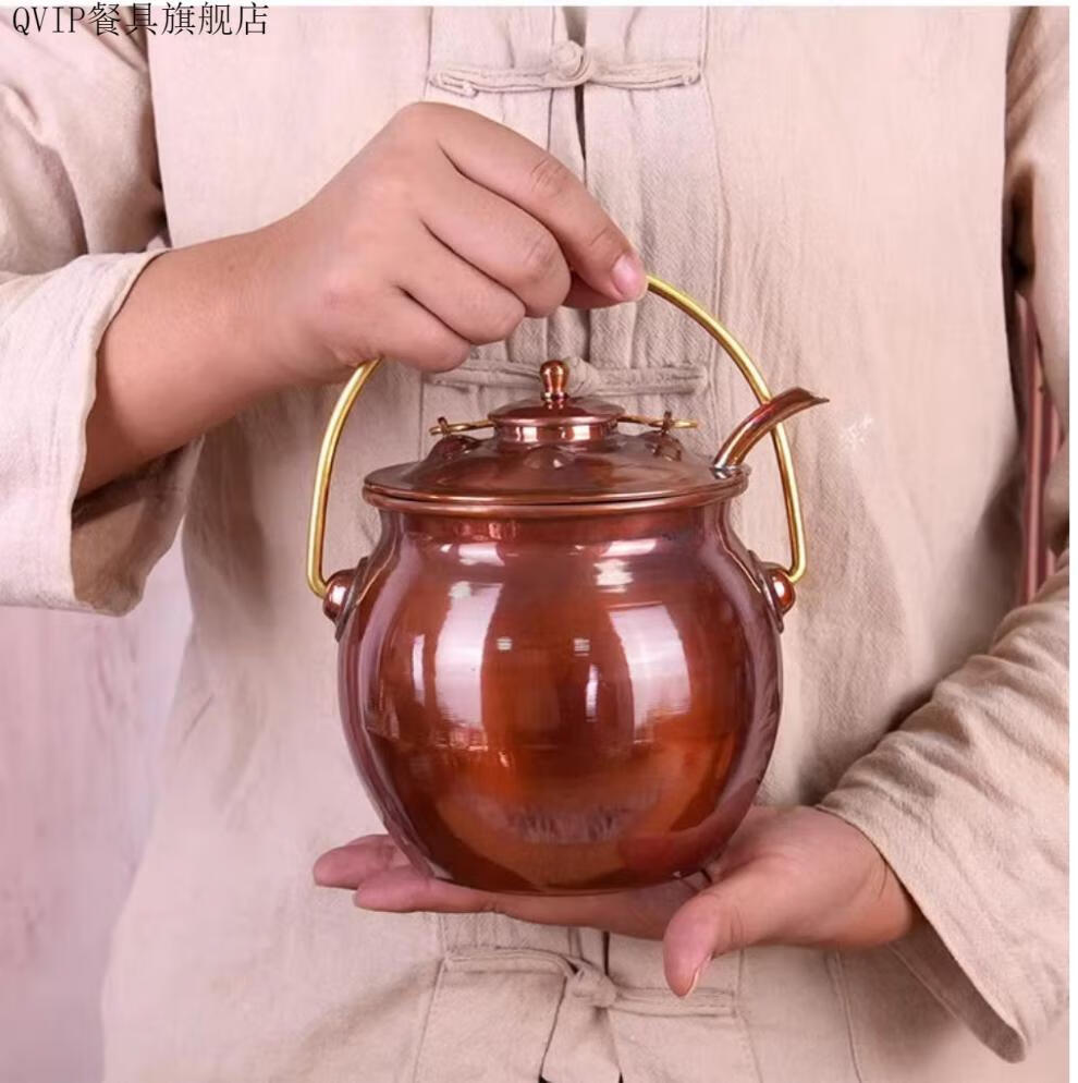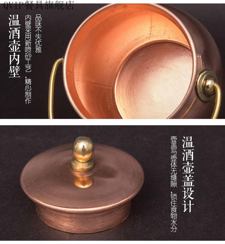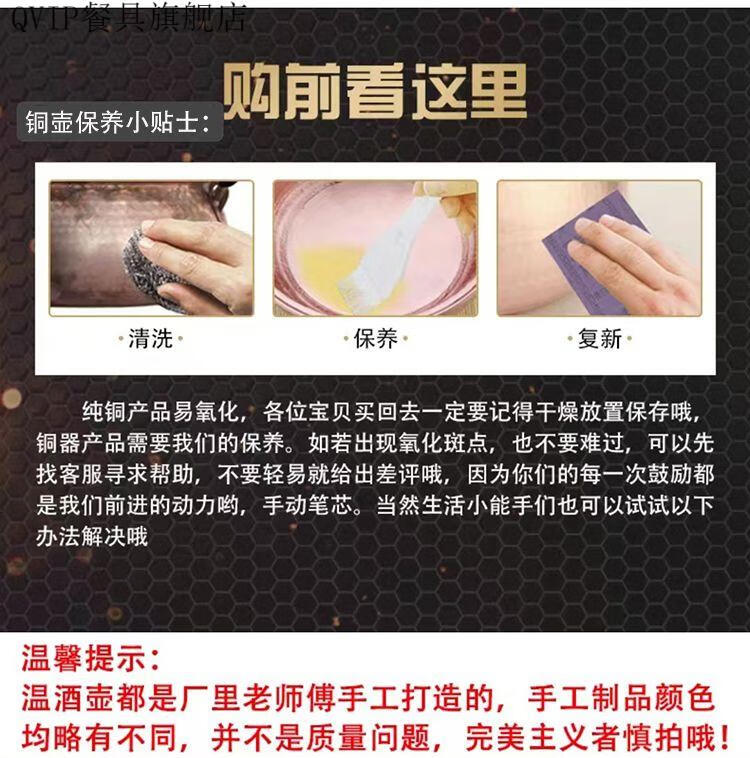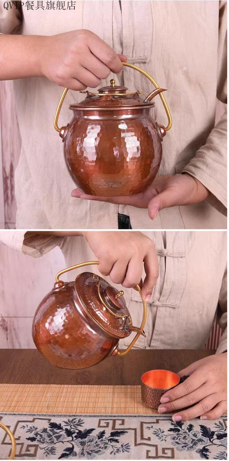 QVIP Pure Copper Warming Wine Kettle Chinese Style Antique Chinese Style Household Handmade Red Copper Winter Hot Wine Thickening 1 Jin Jin is equal to 0.5 kg Wine Warmer Hammered Color 1 Jin Jin is equal to 0.5 kg Packed Copper Handle