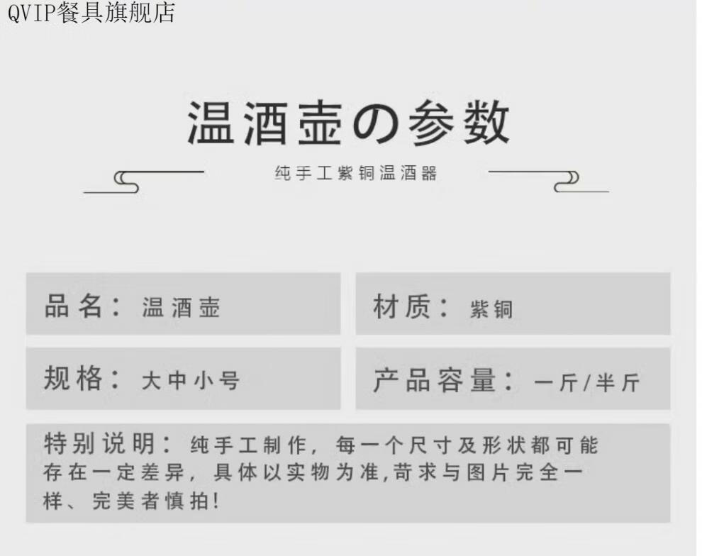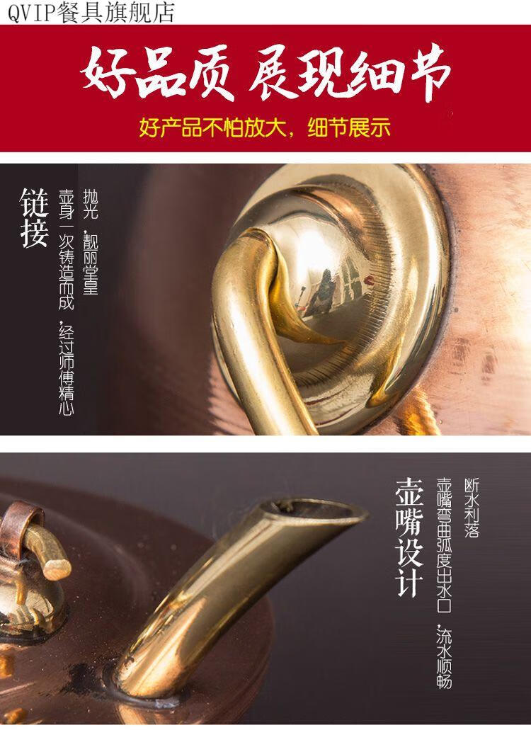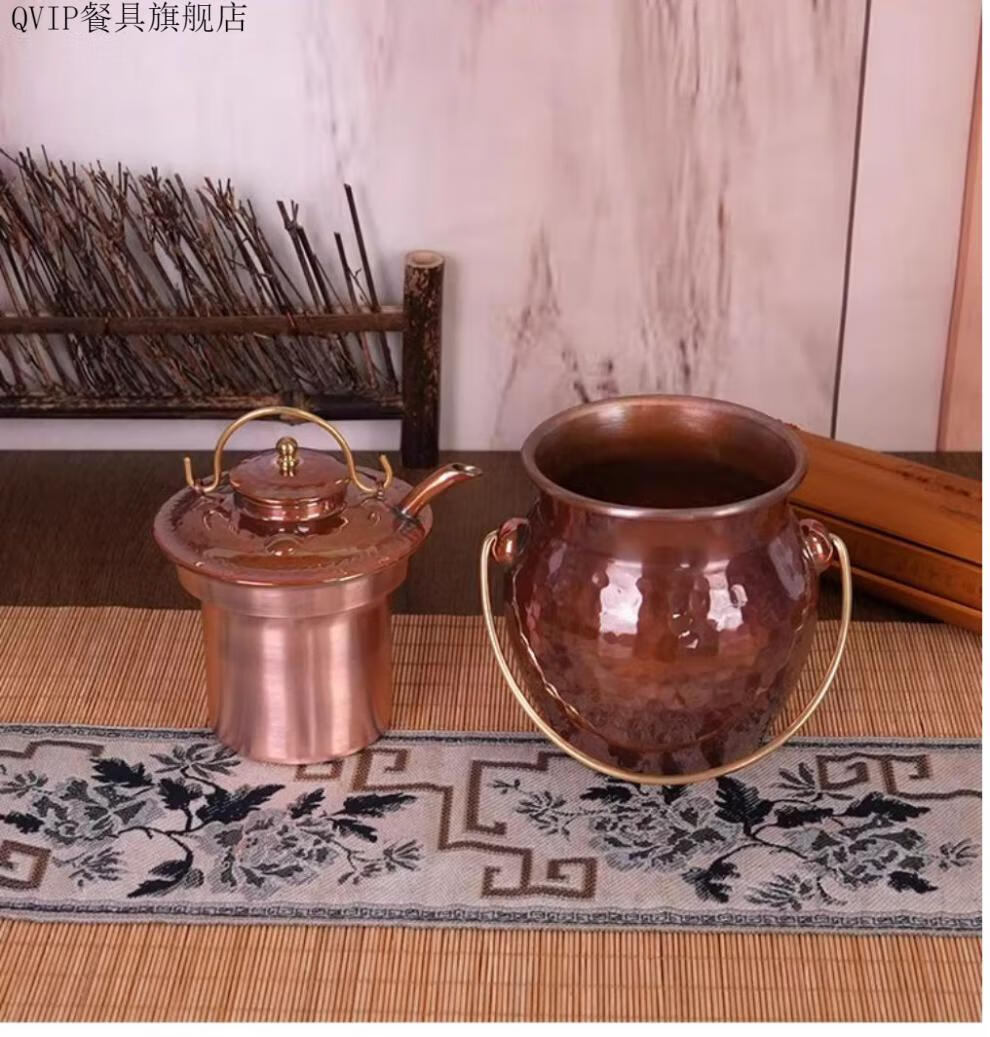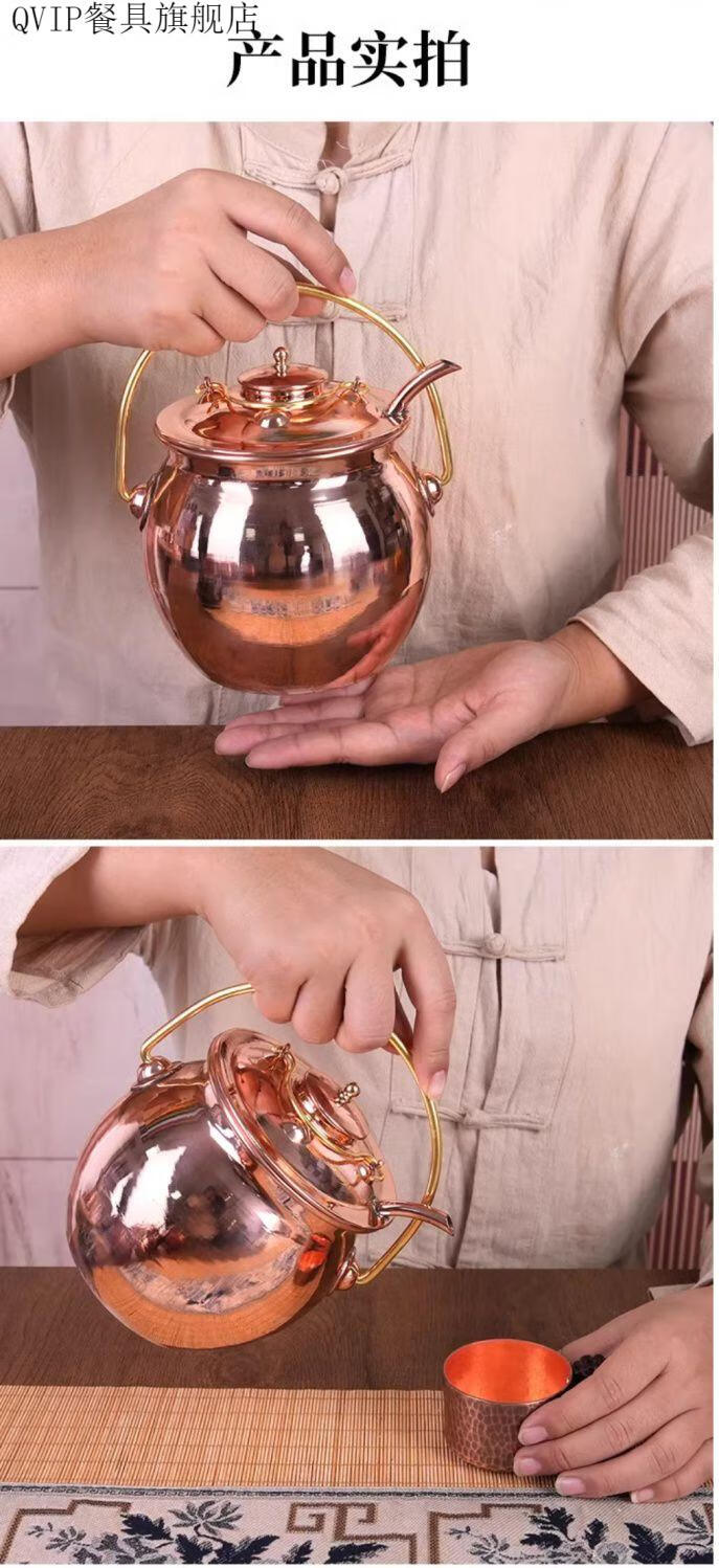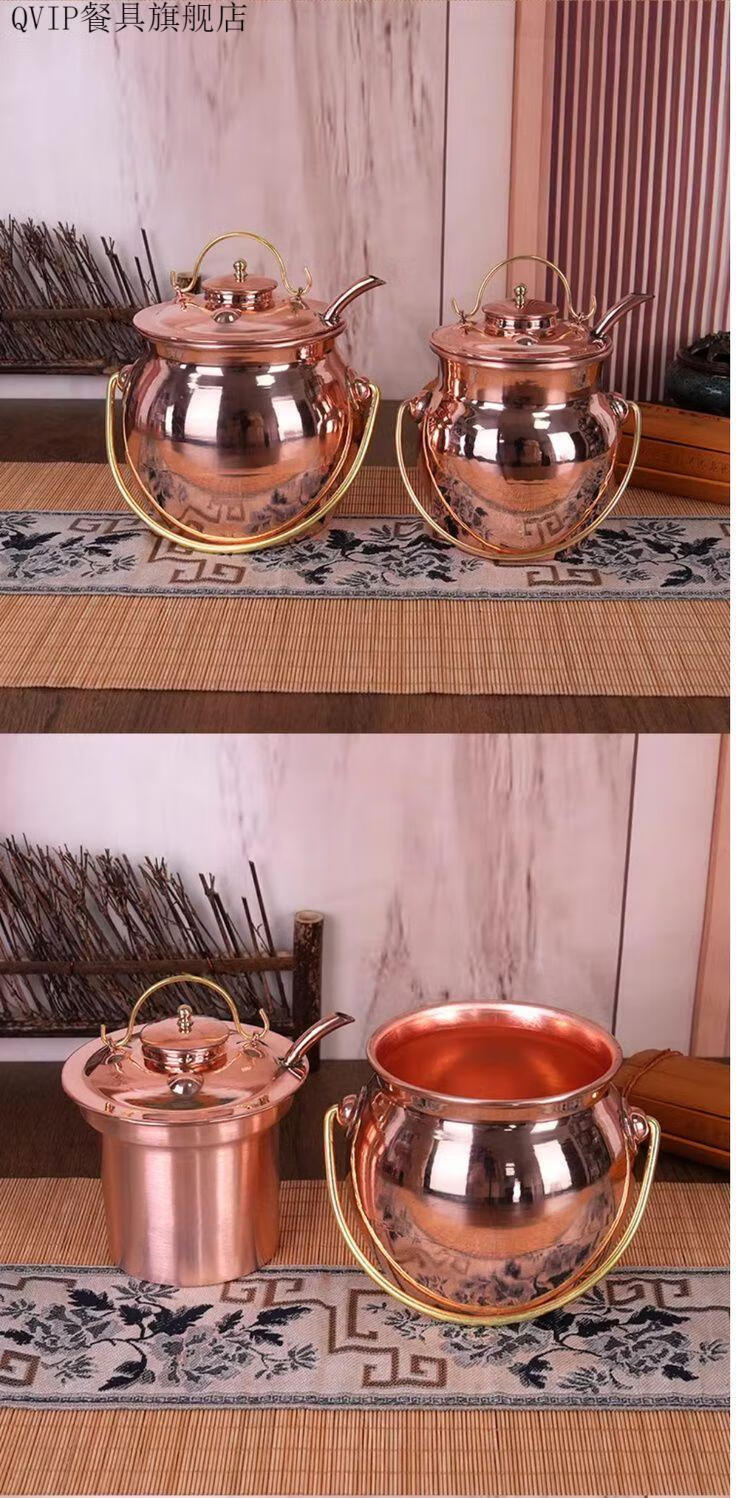 QVIP Pure Copper Warming Wine Kettle Chinese Style Antique Chinese Style Household Handmade Red Copper Winter Hot Wine Thickening 1 Jin Jin is equal to 0.5 kg Wine Warmer Hammered Color 1 Jin Jin is equal to 0.5 kg Packed Copper Handle