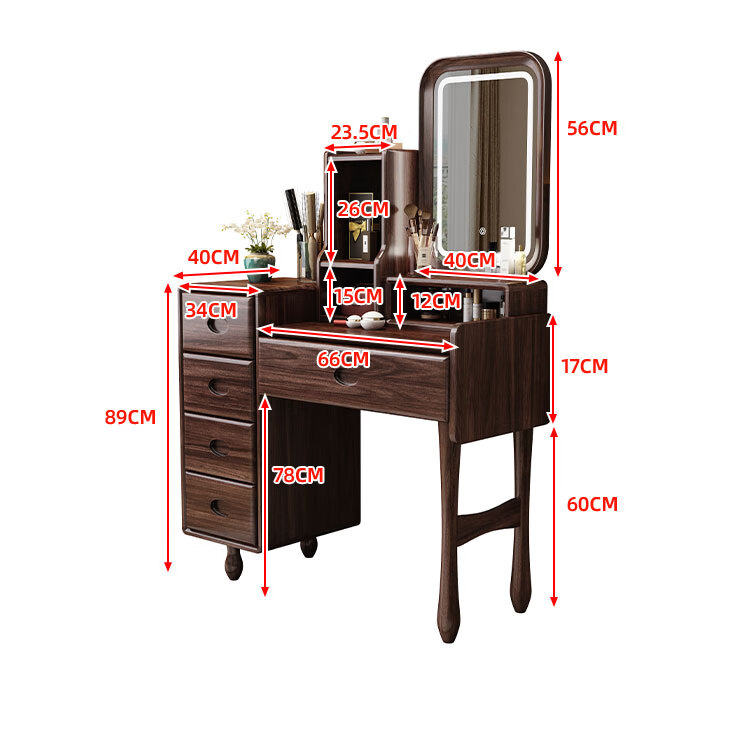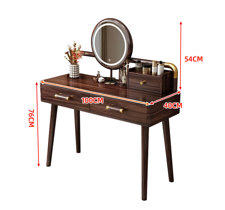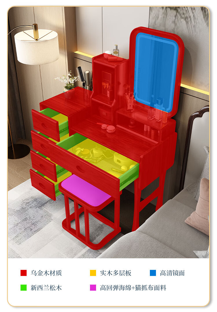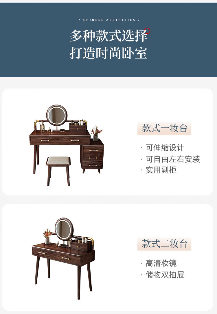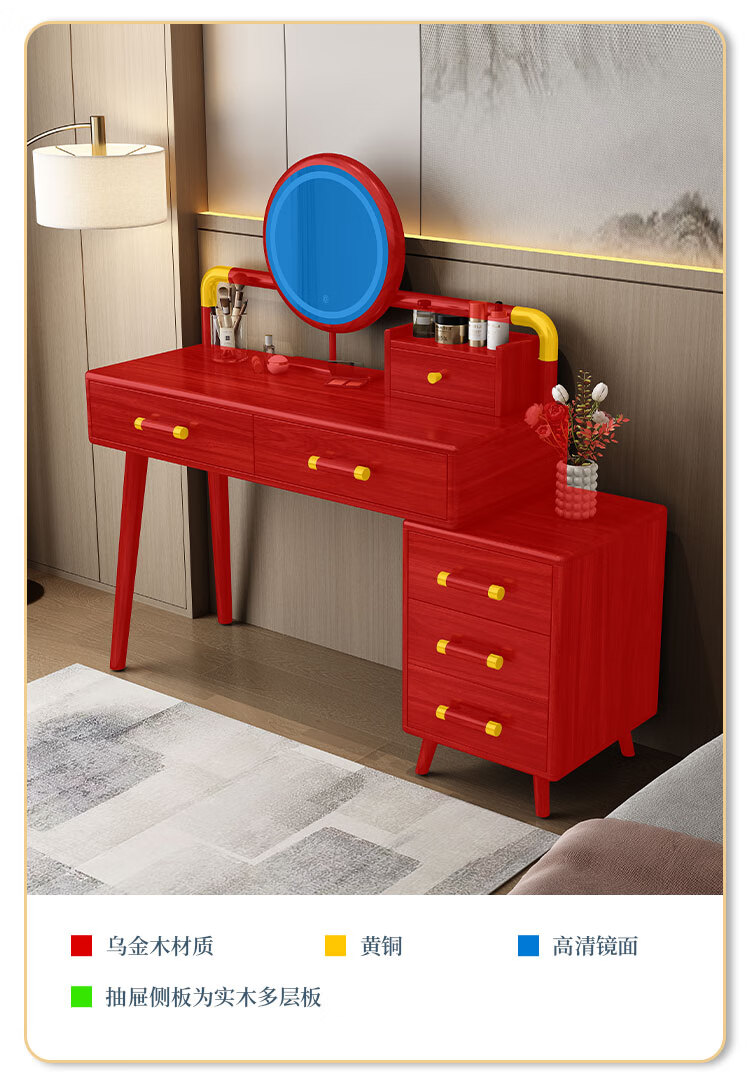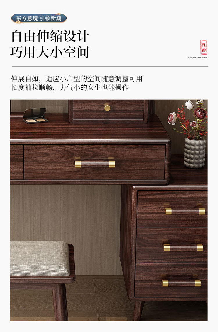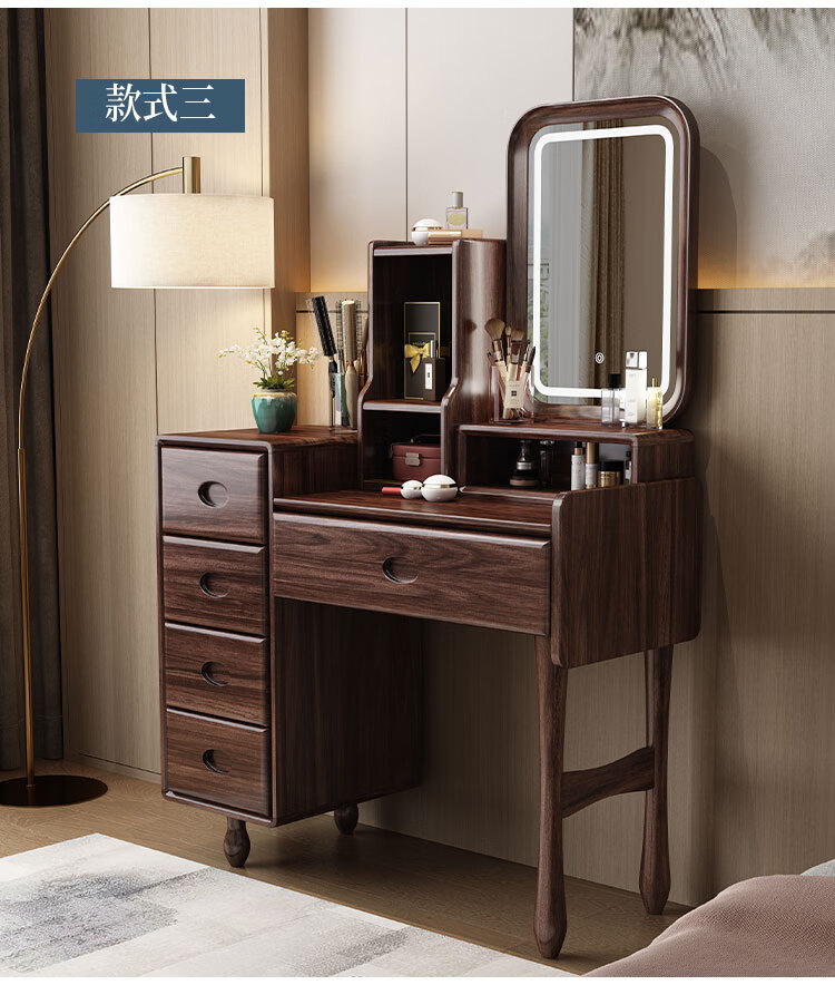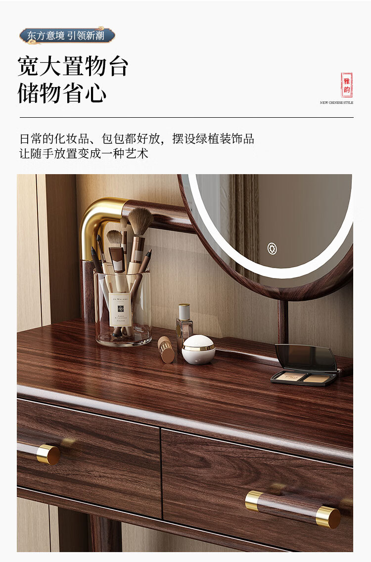 MIKEMIJIA Gujia New Chinese Dressing Bedroom Black Gold Wood Dressing Table Complete with Mirror Cabinet Storage Dressing Table 310# Dressing Table + Makeup Mirror + Makeup Stool + Storage Box Semi-Assembled (Just Install the Feet and Mirror Frame) x Black Gold Wood