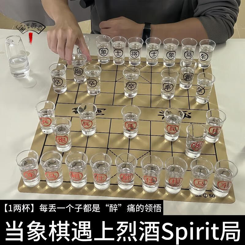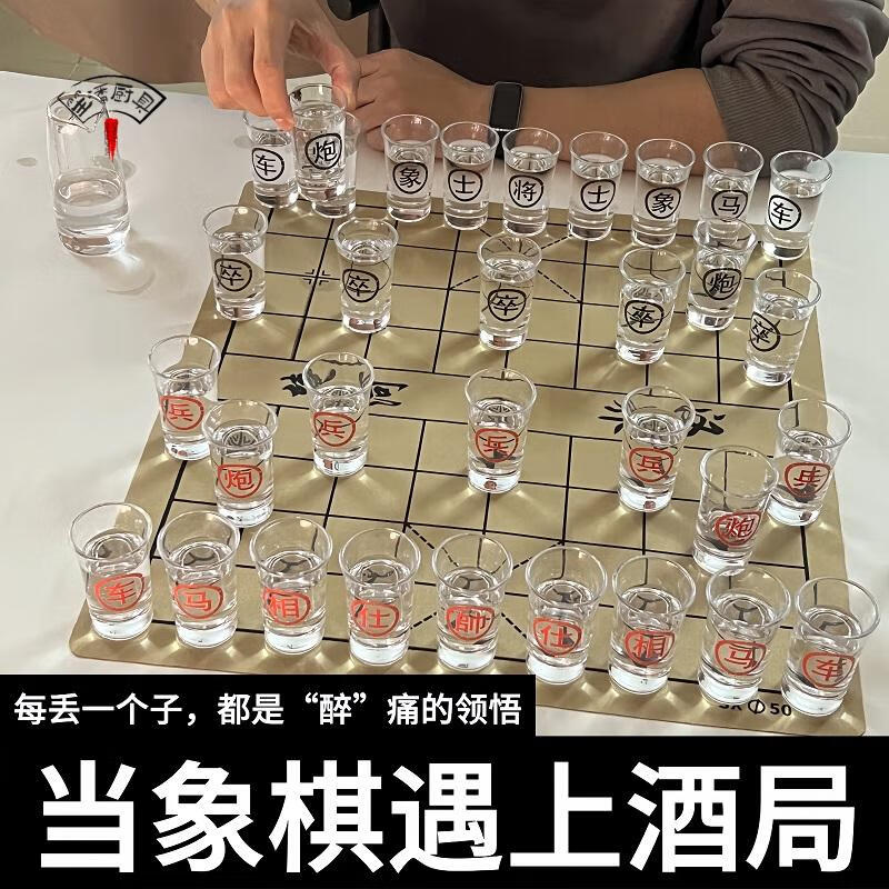 Miaopule 2026 new glass wine cup chess board Chinese white wine KTV home party game props drinking small 50 Chinese chess cup white wine game set