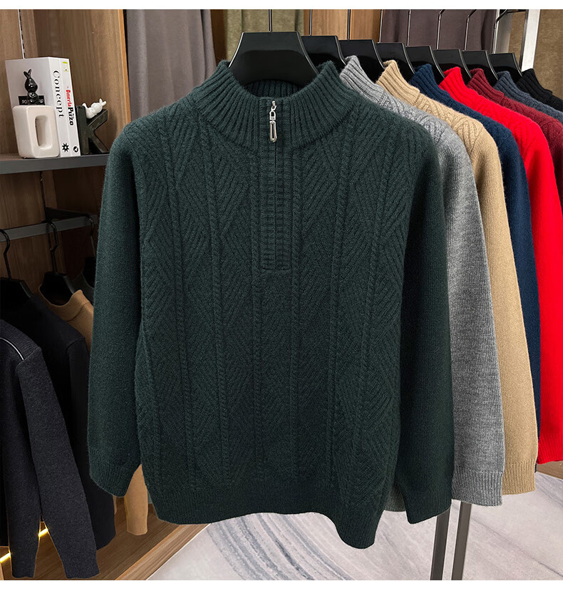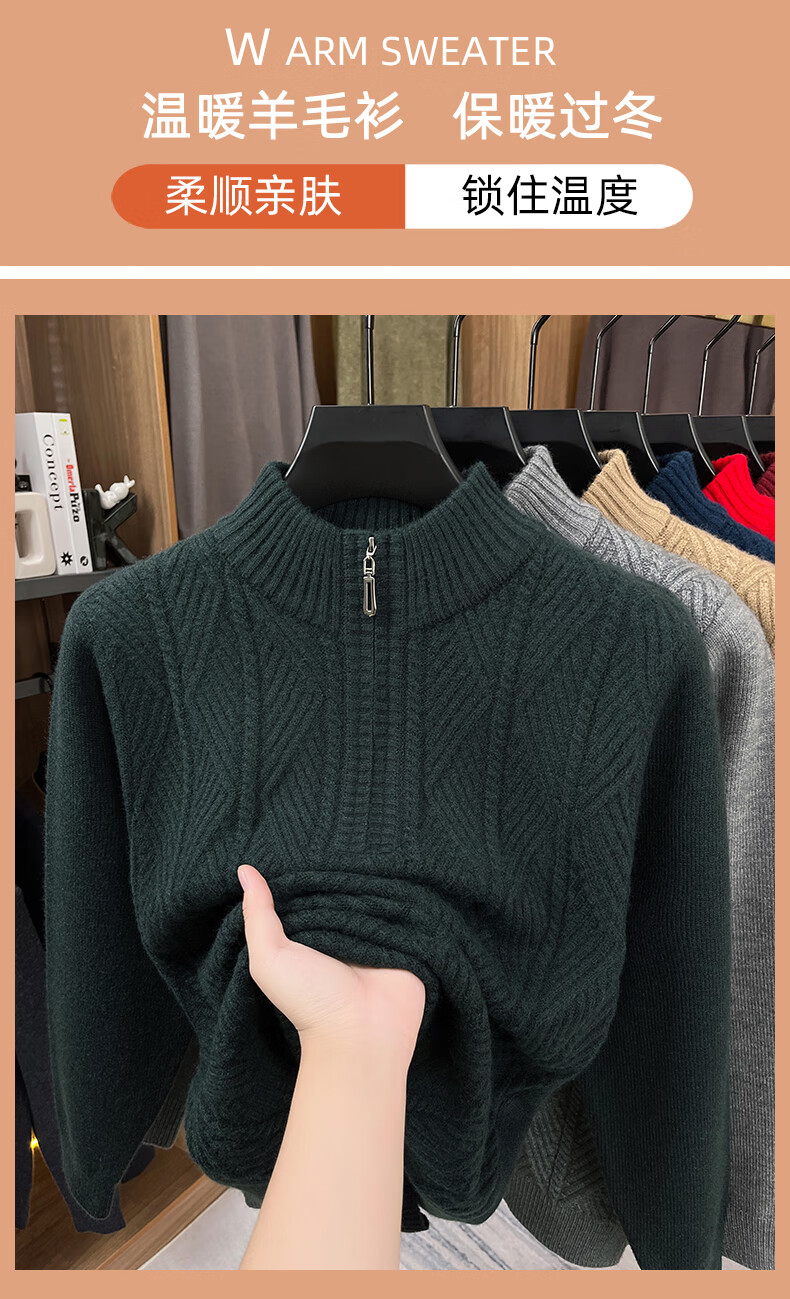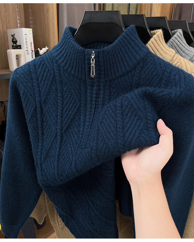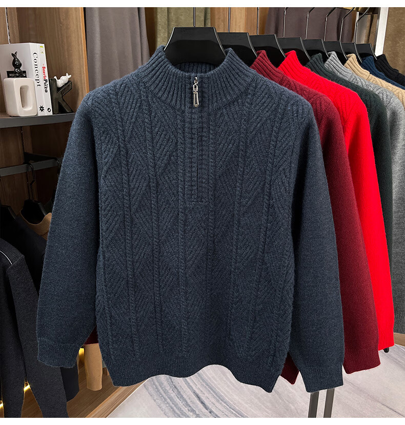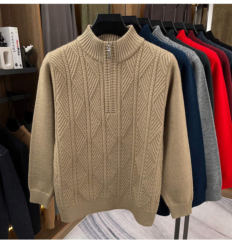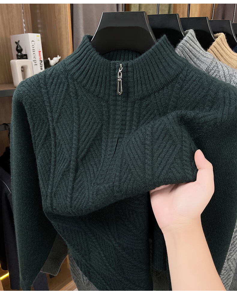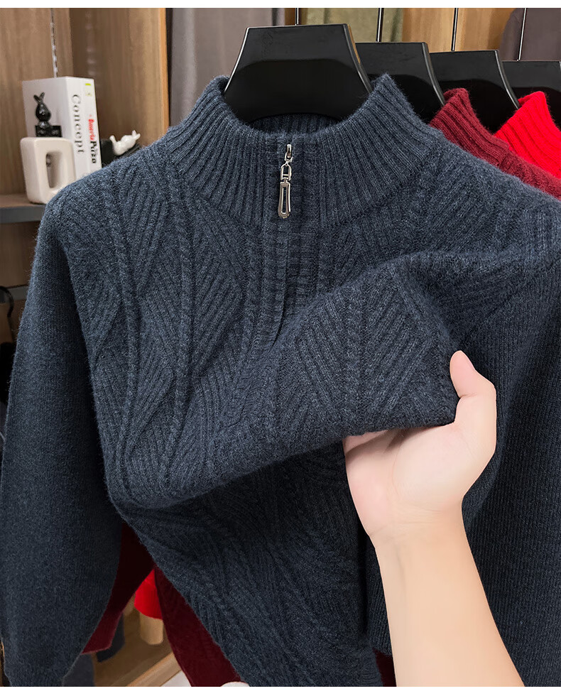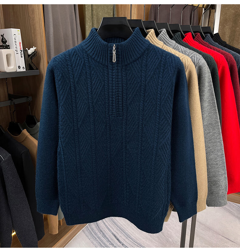 Hengyuanxiang high-end thickened pure wool sweater men's middle-aged and elderly zipper collar sweater winter knitted bottoming shirt Molan XS 160/80A