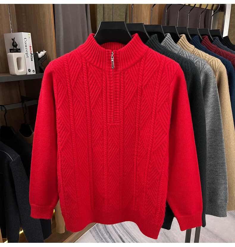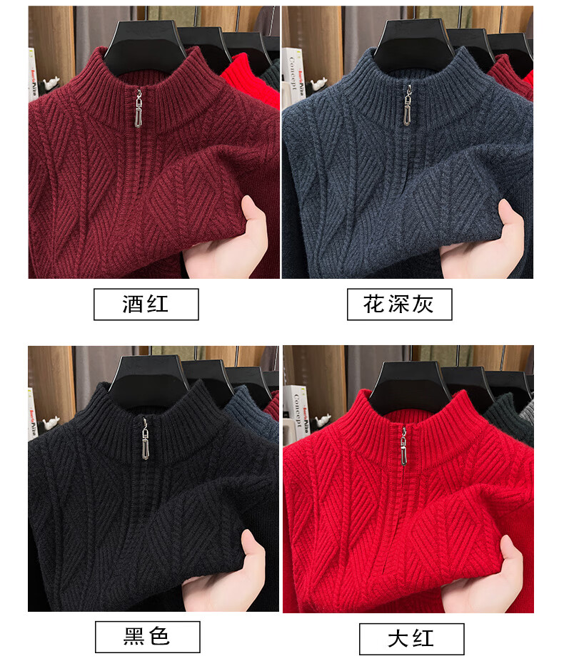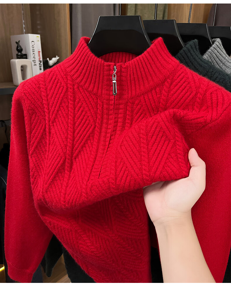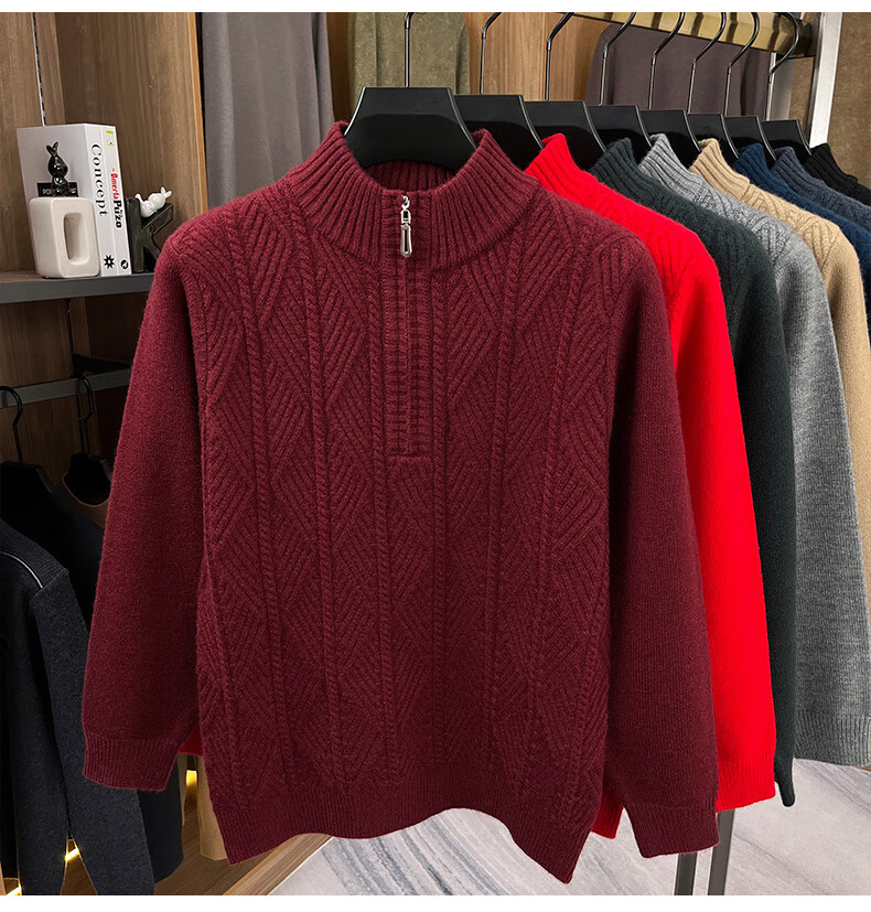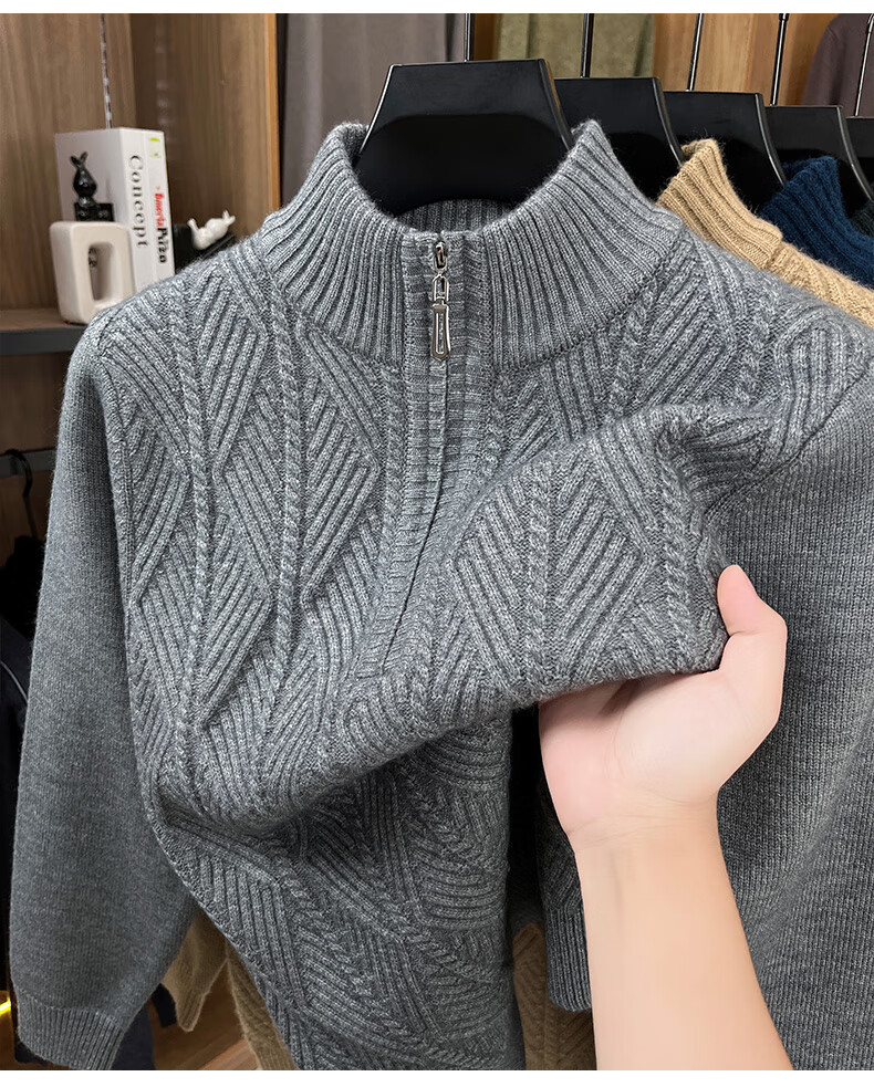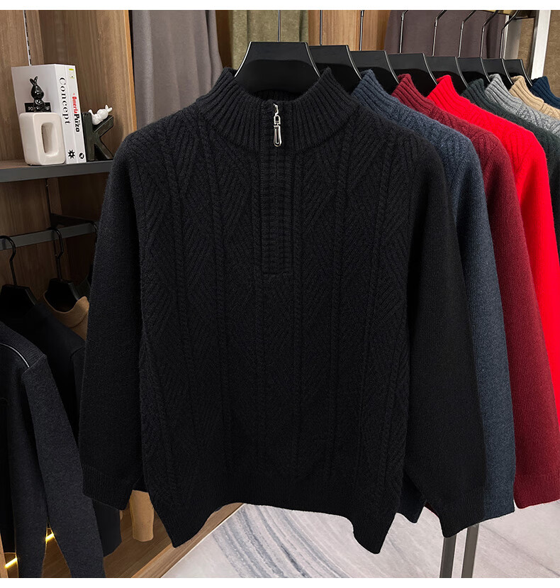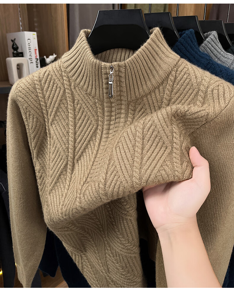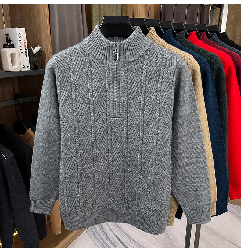 Hengyuanxiang high-end thickened pure wool sweater men's middle-aged and elderly zipper collar sweater winter knitted bottoming shirt Molan XS 160/80A