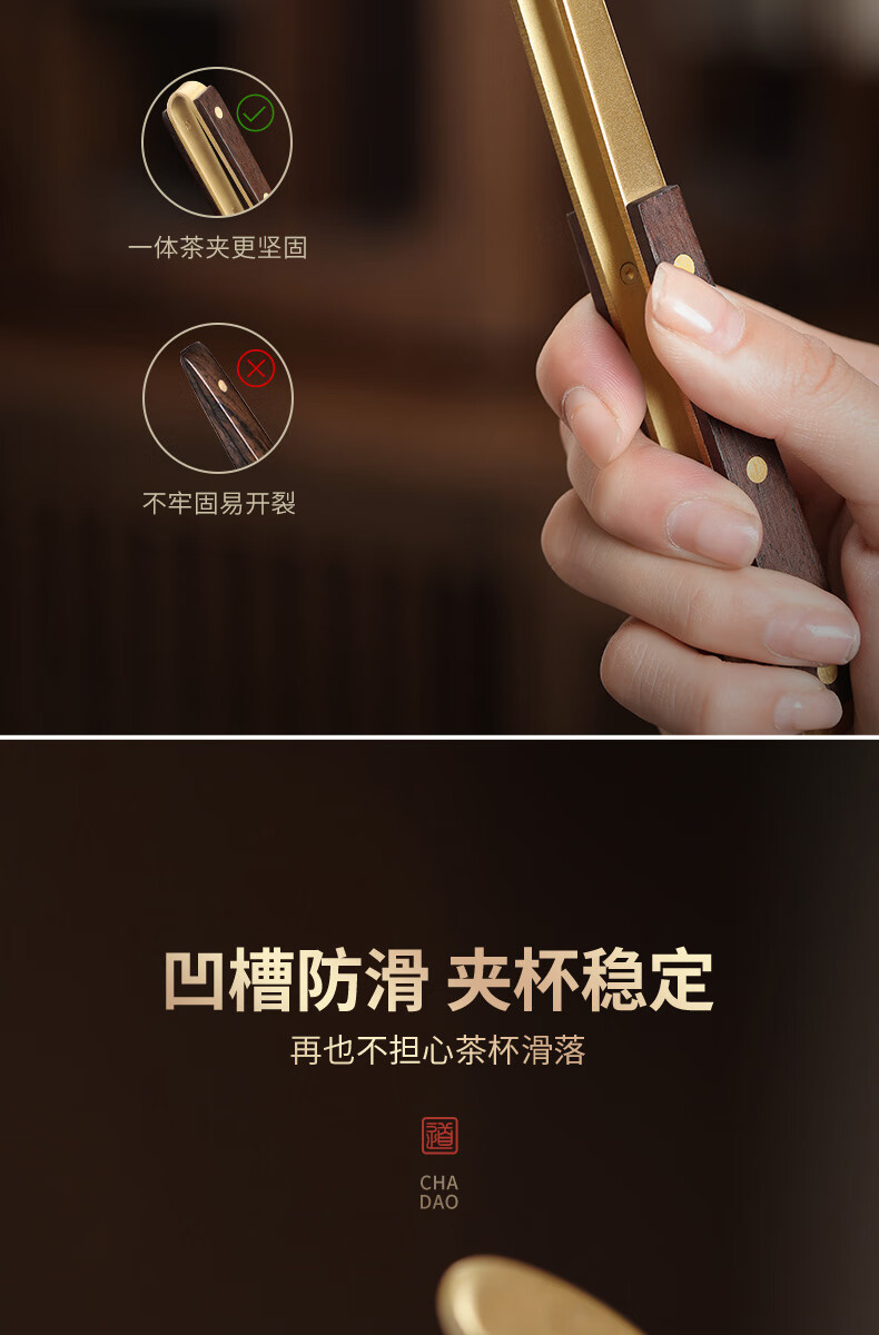 OIMG German tea clip pure copper tea leaf clip tea tweezers tea set accessories set tea making tools non-slip pure titanium (rose type) thick copper tea clip