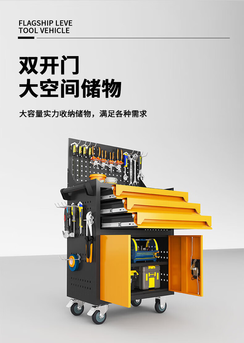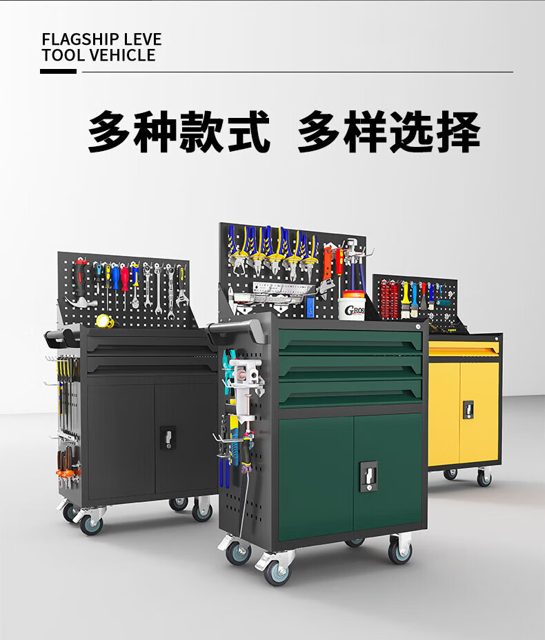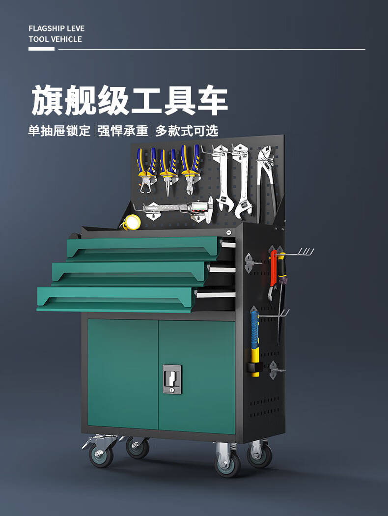 He Jiagong Auto Repair Tool Trolley Workshop Tool Cabinet Multifunctional Tool Box Trolley Repair Hardware Parts Thickened Trolley Graphite Gray Three-Pull Tool Trolley + Hanging Plate