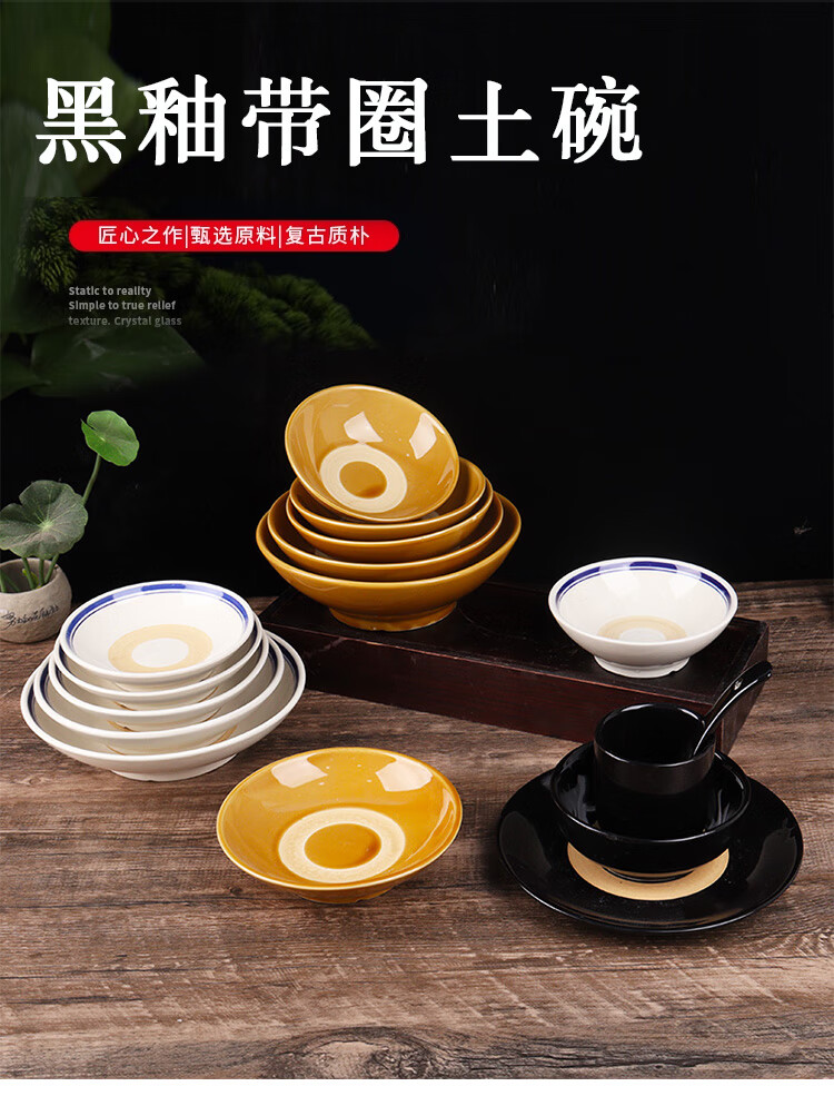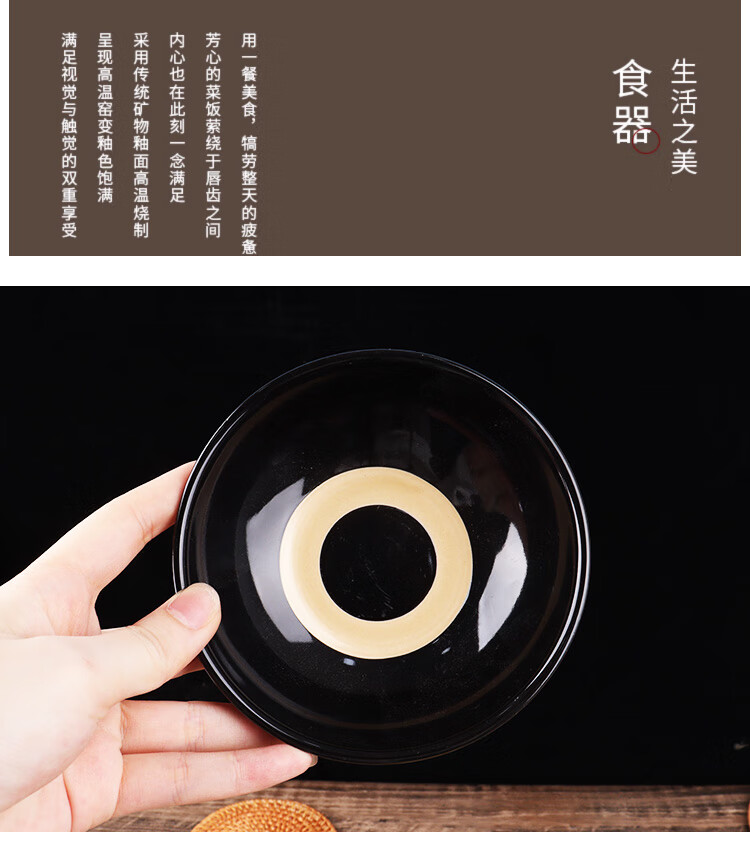 White wine cup, ancient style, retro, nostalgic ceramic small black bowl, old-fashioned drinking bowl, bottle set, black ring 12.5CM shallow bowl