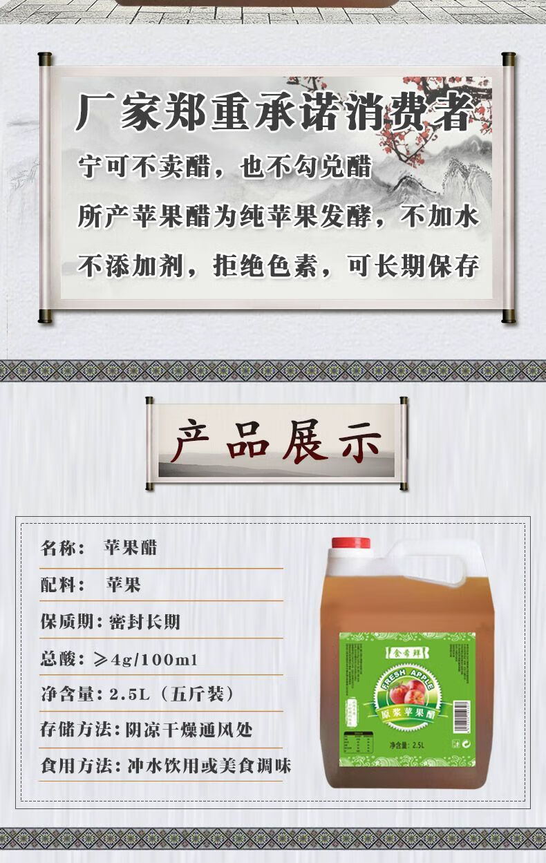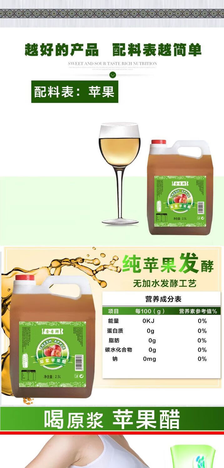 Apple cider vinegar sugar-free pure apple cider vinegar puree concentrated commercial wholesale seasoning for inner court use Shanxi pure apple fermented puree 1000ml*4 bottles