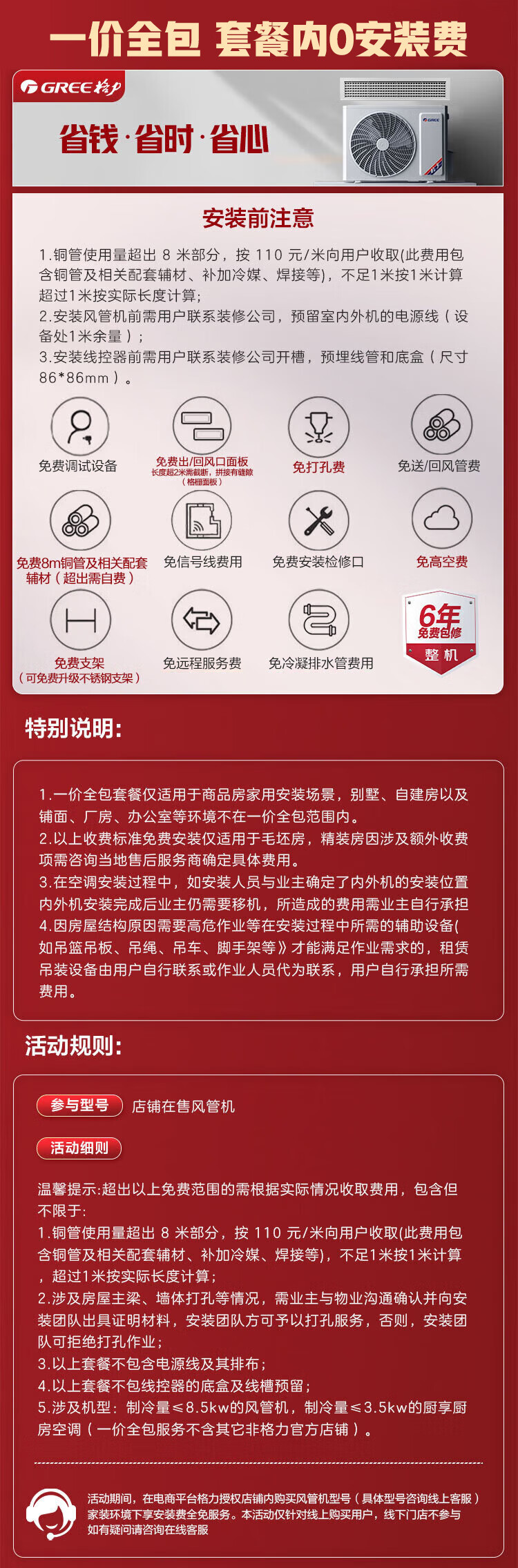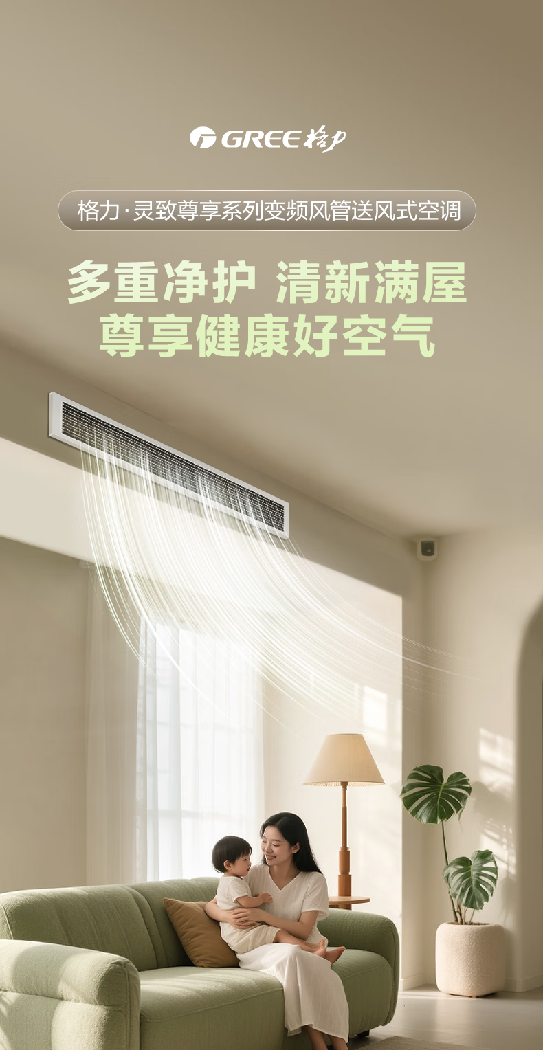 Gree (GREE) central air conditioning duct machine one to one 3 hp small 4 hp Lingzhi Xunxiang household full DC frequency conversion power saving living room heating and cooling pure copper tube air conditioner purifies bacteria and removes formaldehyde first-level energy efficiency Lingzhi Exclusive 3 pcs purifies bacteria and removes aldehyde. Consult for more discounts