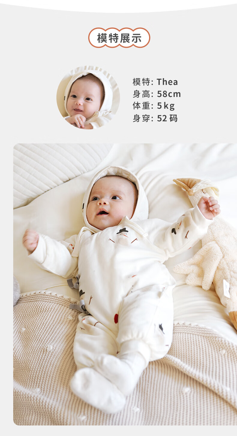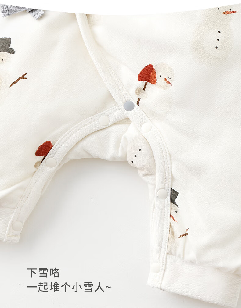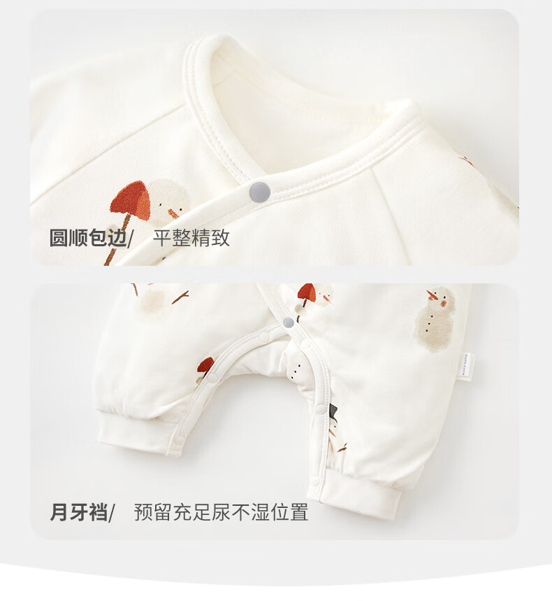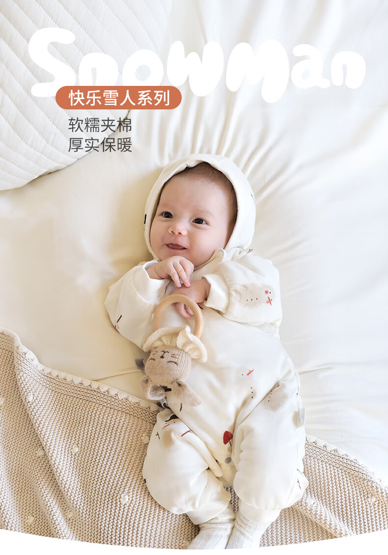 Koala nose, cute and cute, quilted and warm, baby autumn and winter cotton padded clothes, thickened lace-up sweatshirt, happy snowman, milk white 52cm