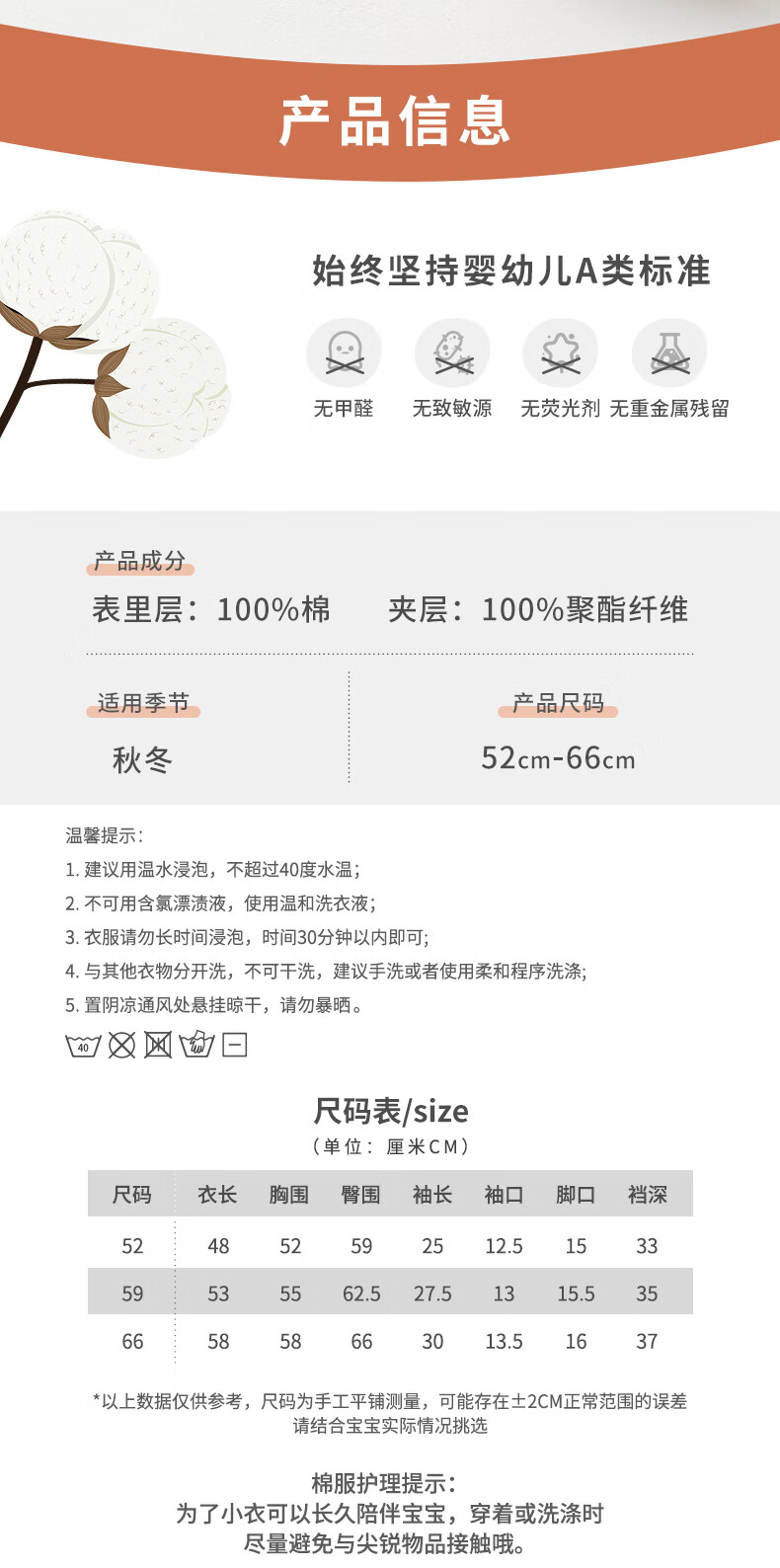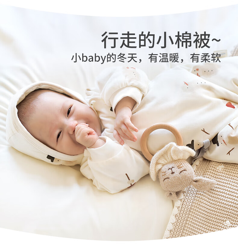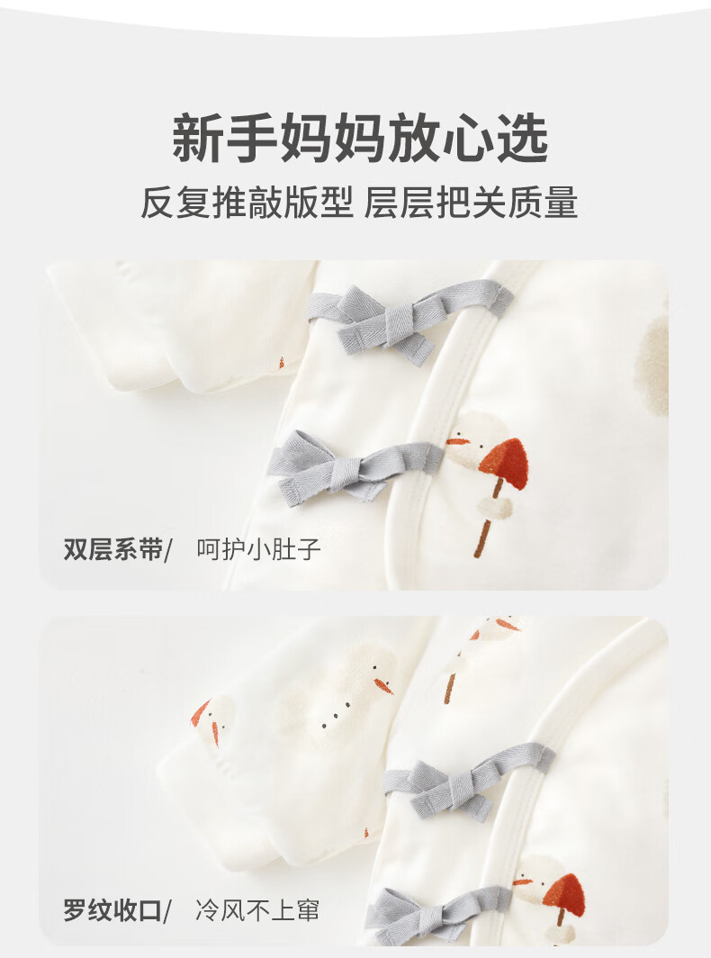 Koala nose, cute and cute, quilted and warm, baby autumn and winter cotton padded clothes, thickened lace-up sweatshirt, happy snowman, milk white 52cm