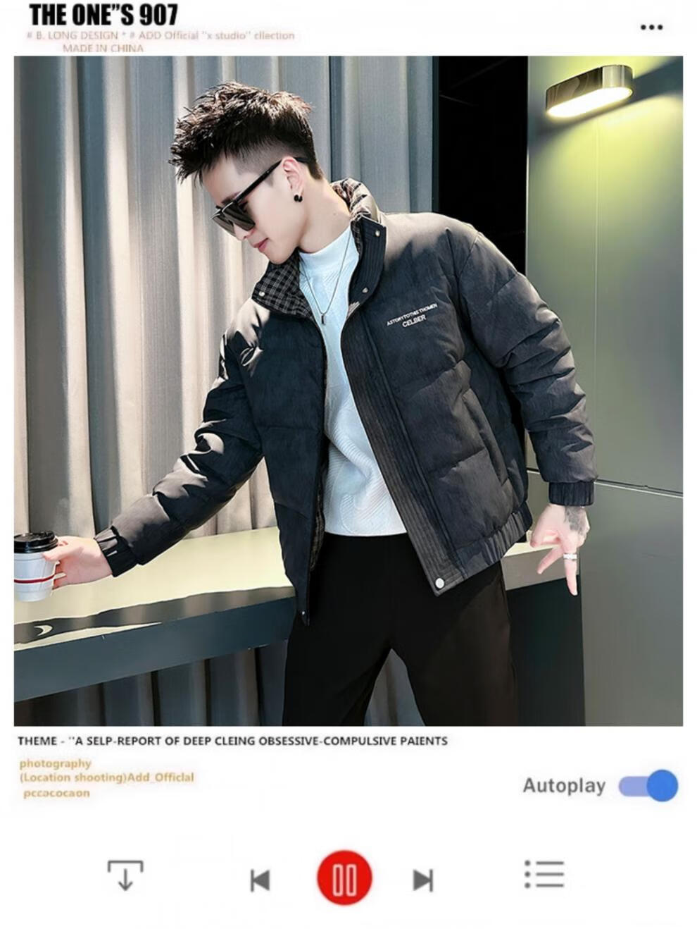 ROMON 2026 Winter High-end Cotton Coat Men's Slim-Fit Thickened Small Down Down Coat XS Small Size Warm Jacket Black S