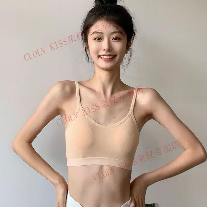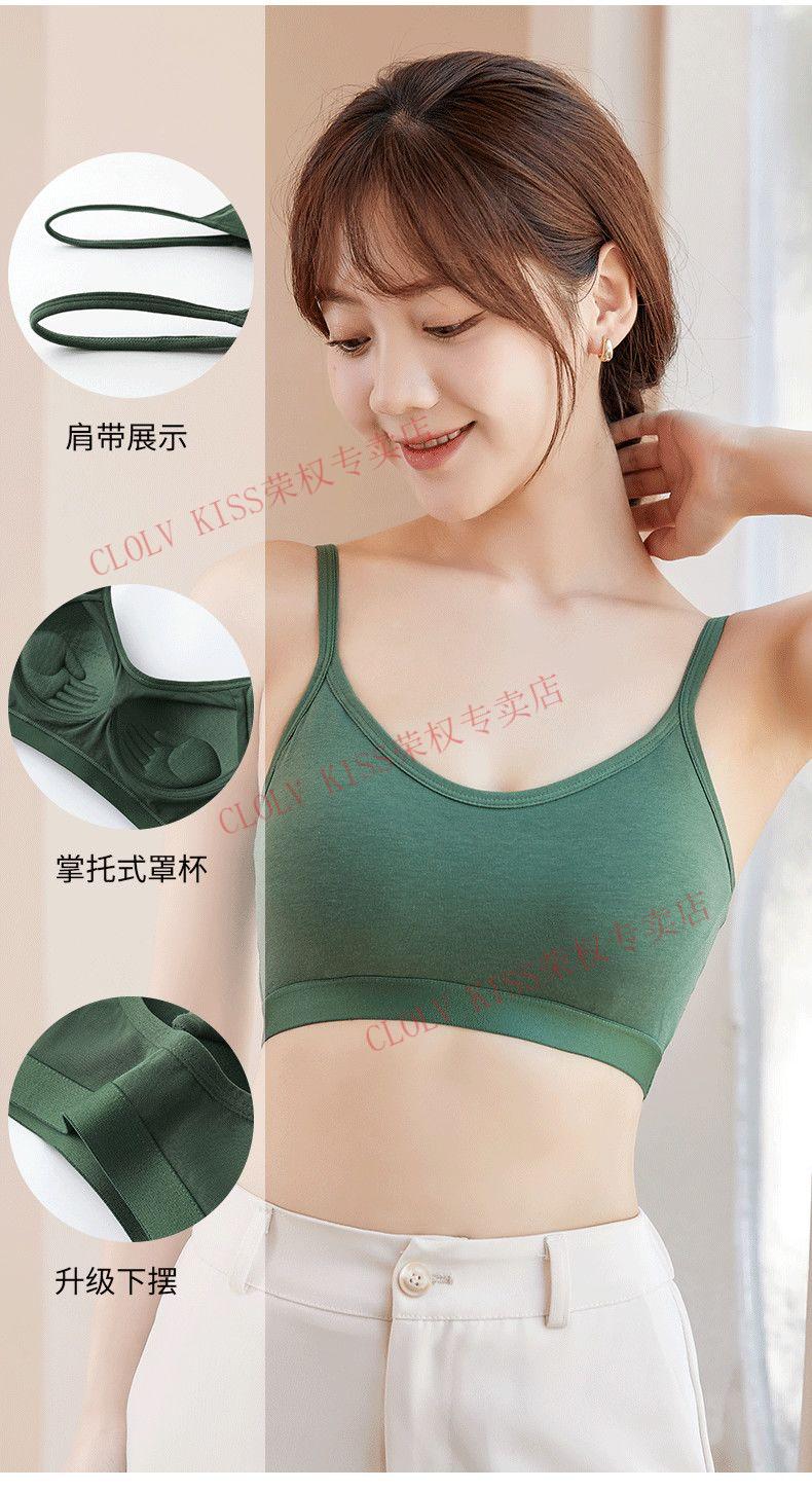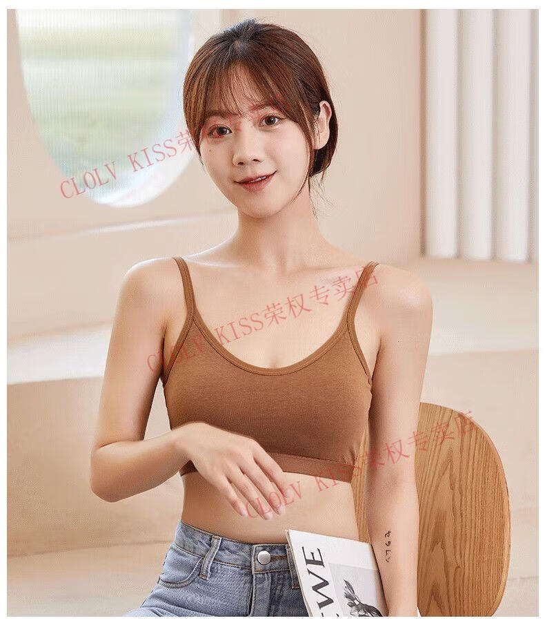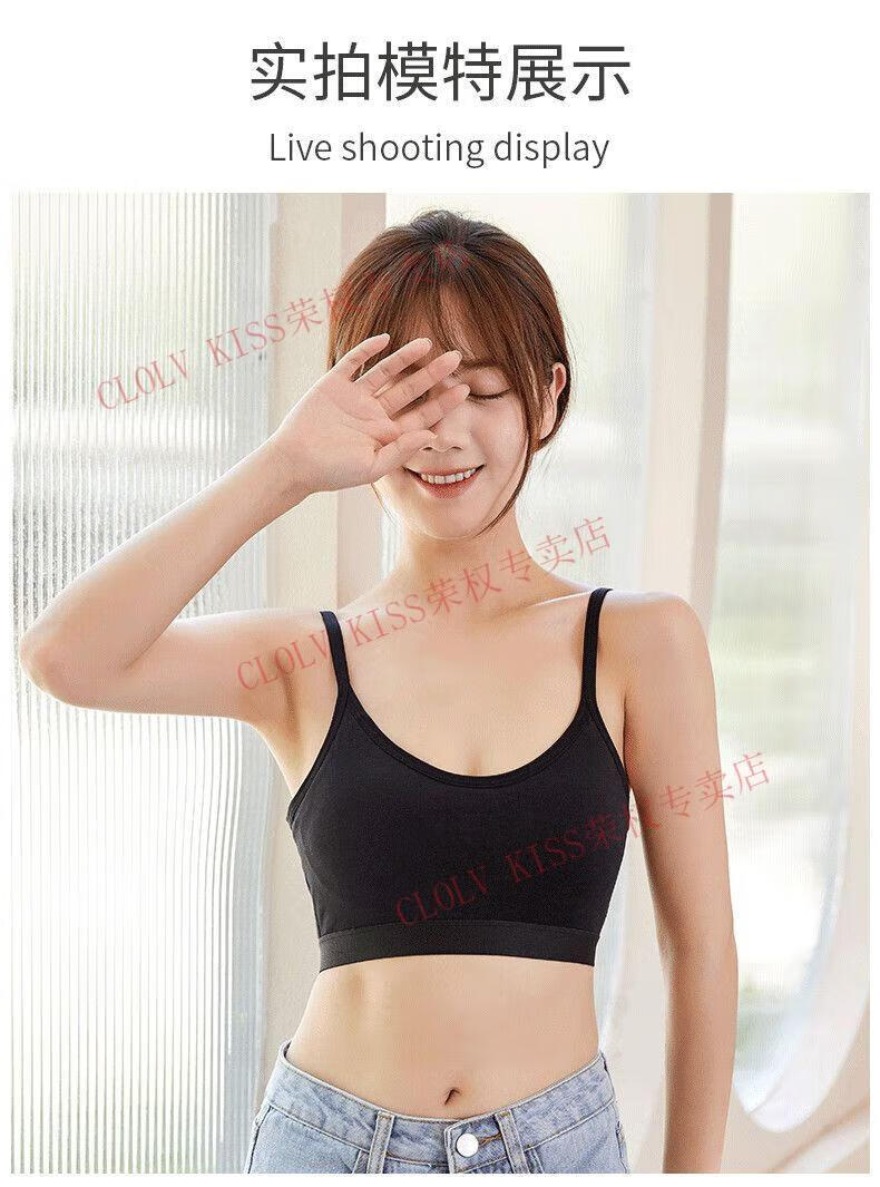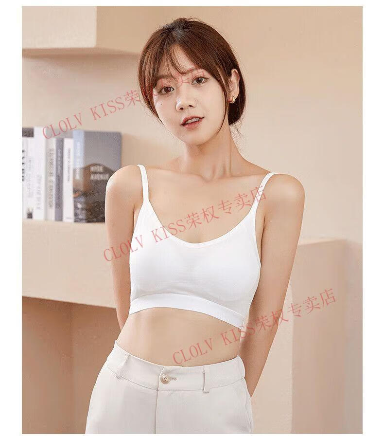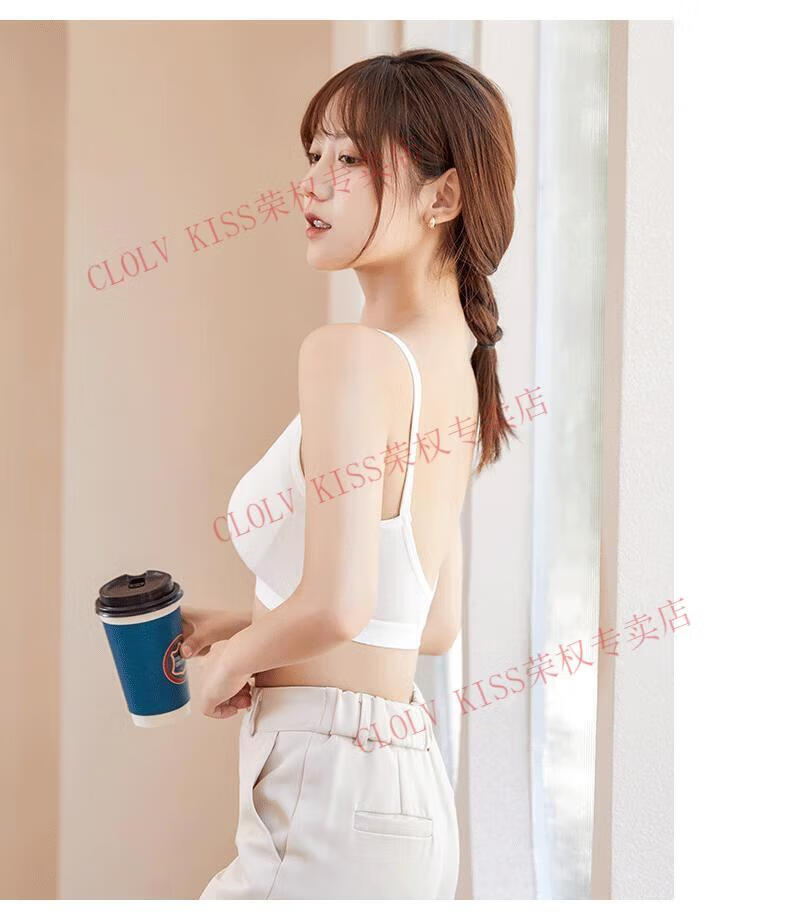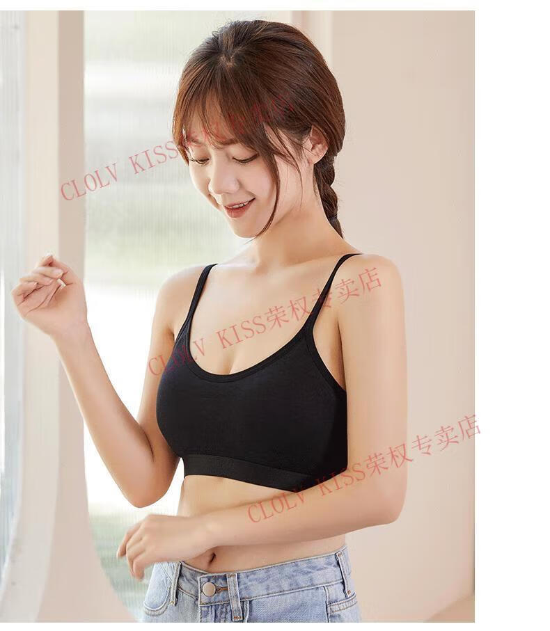 Clolv kiss sexy fixed cup camisole beauty vest underwear for women with small breasts and small breasts gathered to prevent sagging girl inner wear sweet tube top two pieces #black+grey S 75-90Jin Jin is equal to 0.5kg and the lower bust is about 65CM