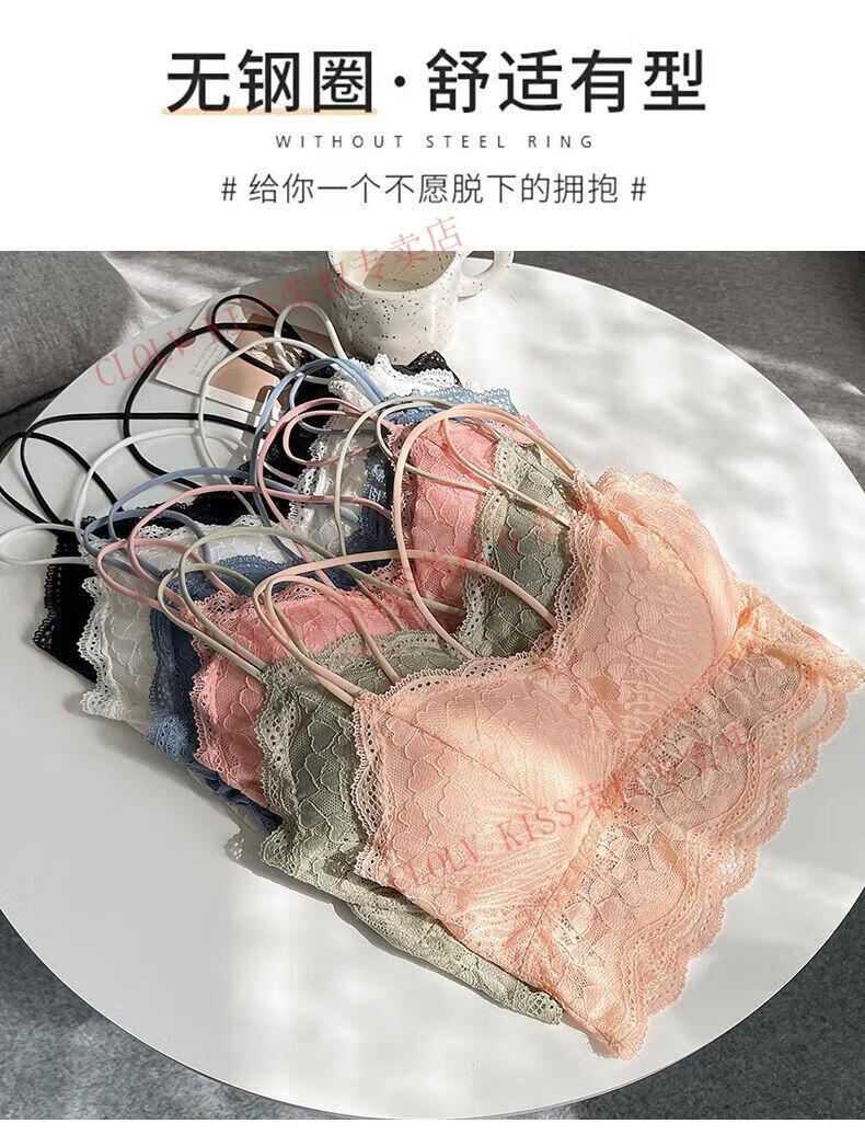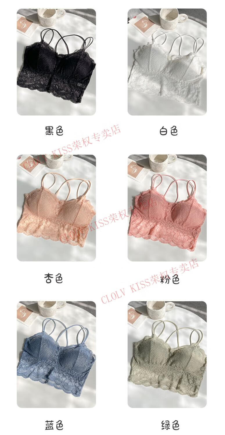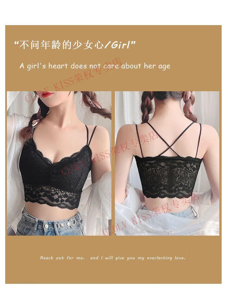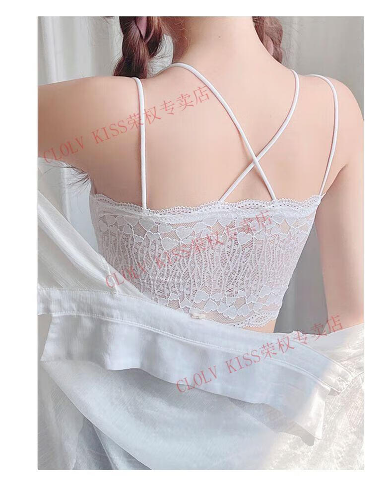 Clolv kissCK lace girl underwear beautiful back no rims tube top high school student camisole anti-exposure bra student chest wrap black + white 2 pieces M recommended 75-100Jin Jin equals 0.5 kg