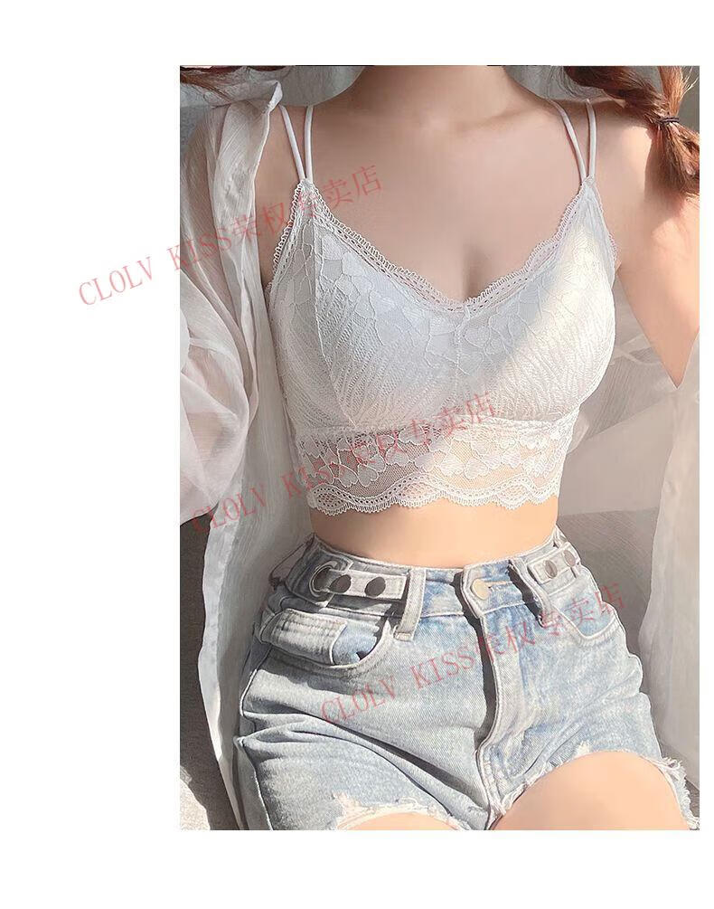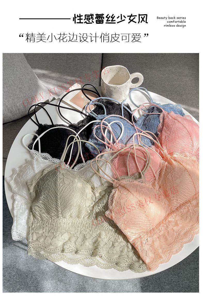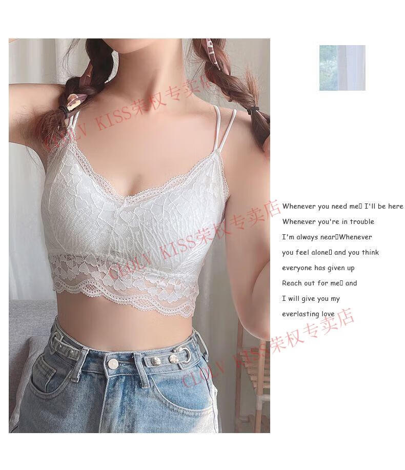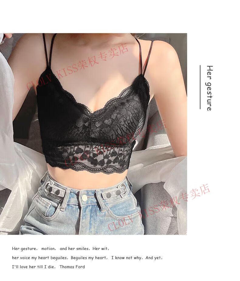Clolv kissCK lace girl underwear beautiful back no rims tube top high school student camisole anti-exposure bra student chest wrap black + white 2 pieces M recommended 75-100Jin Jin equals 0.5 kg
