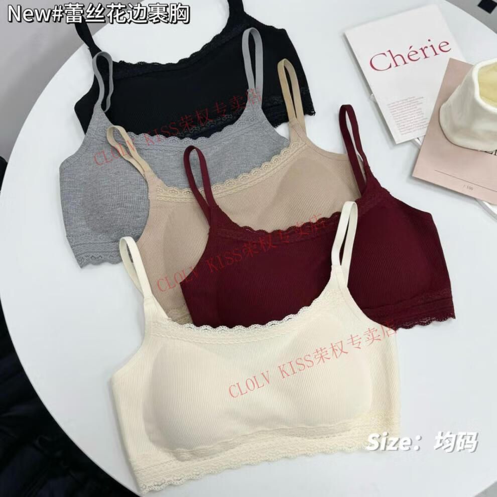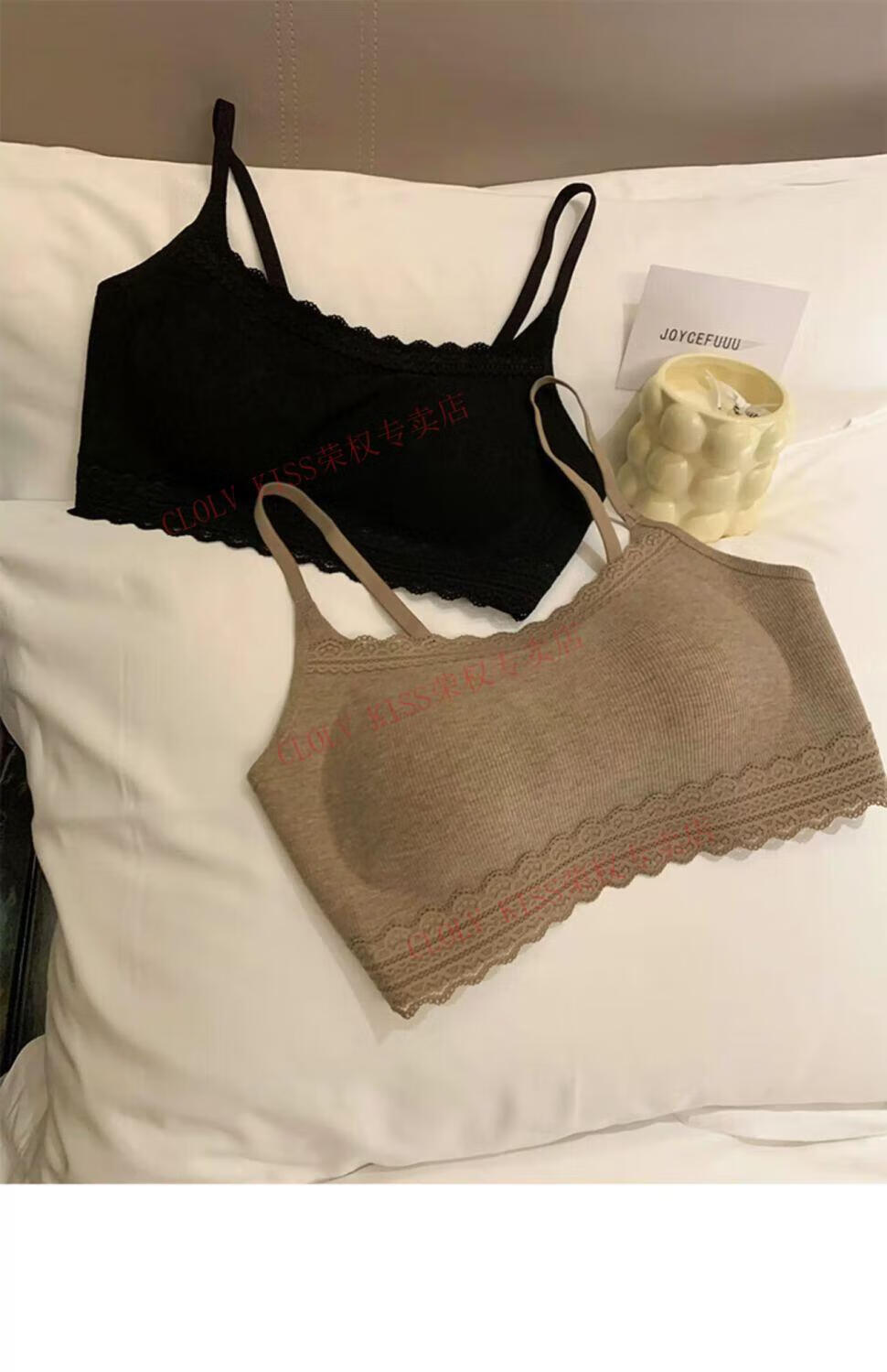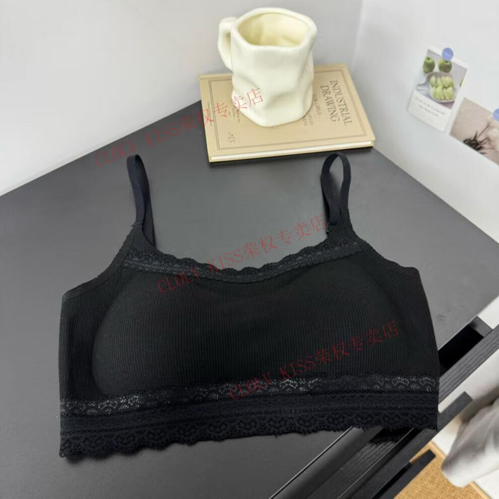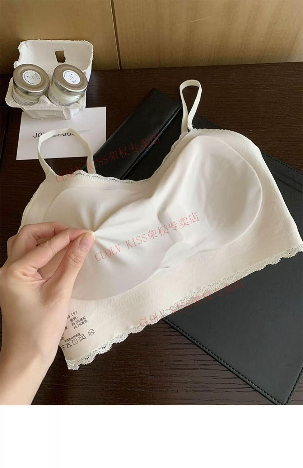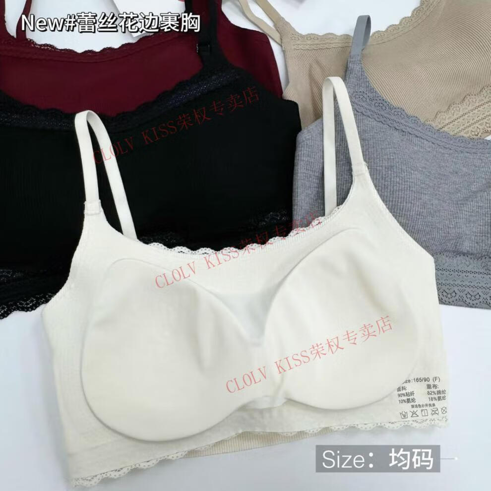 Clolv kissCK forest color lace underwear women's latex breathable fixed one-cup tube top women's push-up beautiful back camisole black + khaki quality version one size fits all 80-120Jin Jin equals 0.5 kg