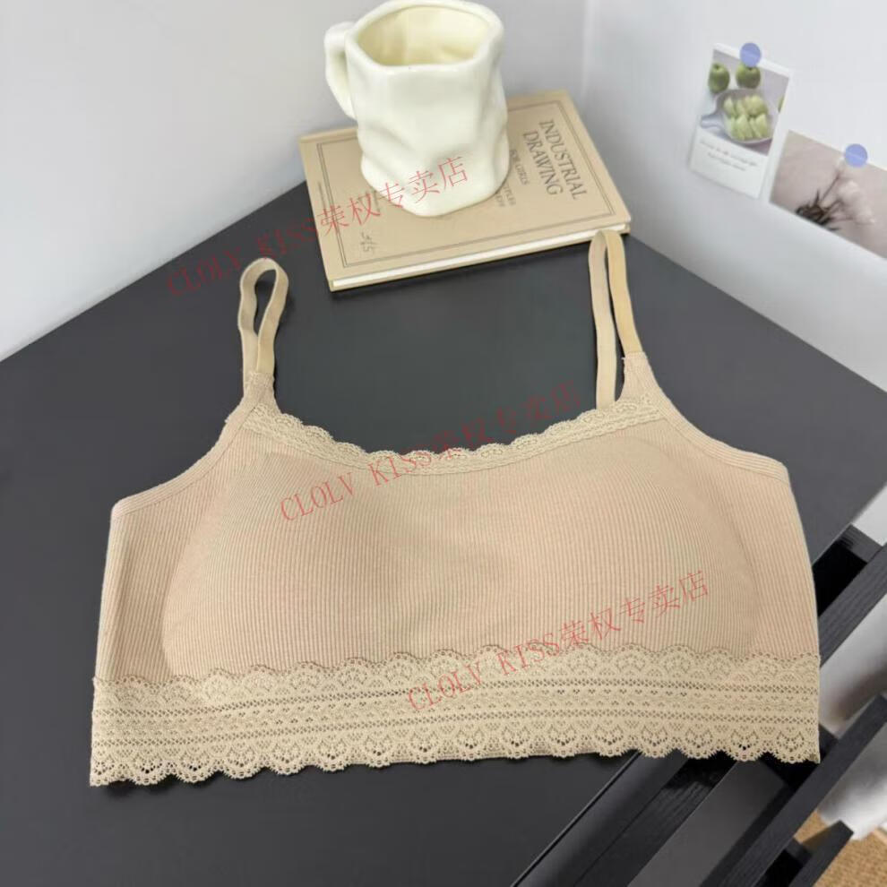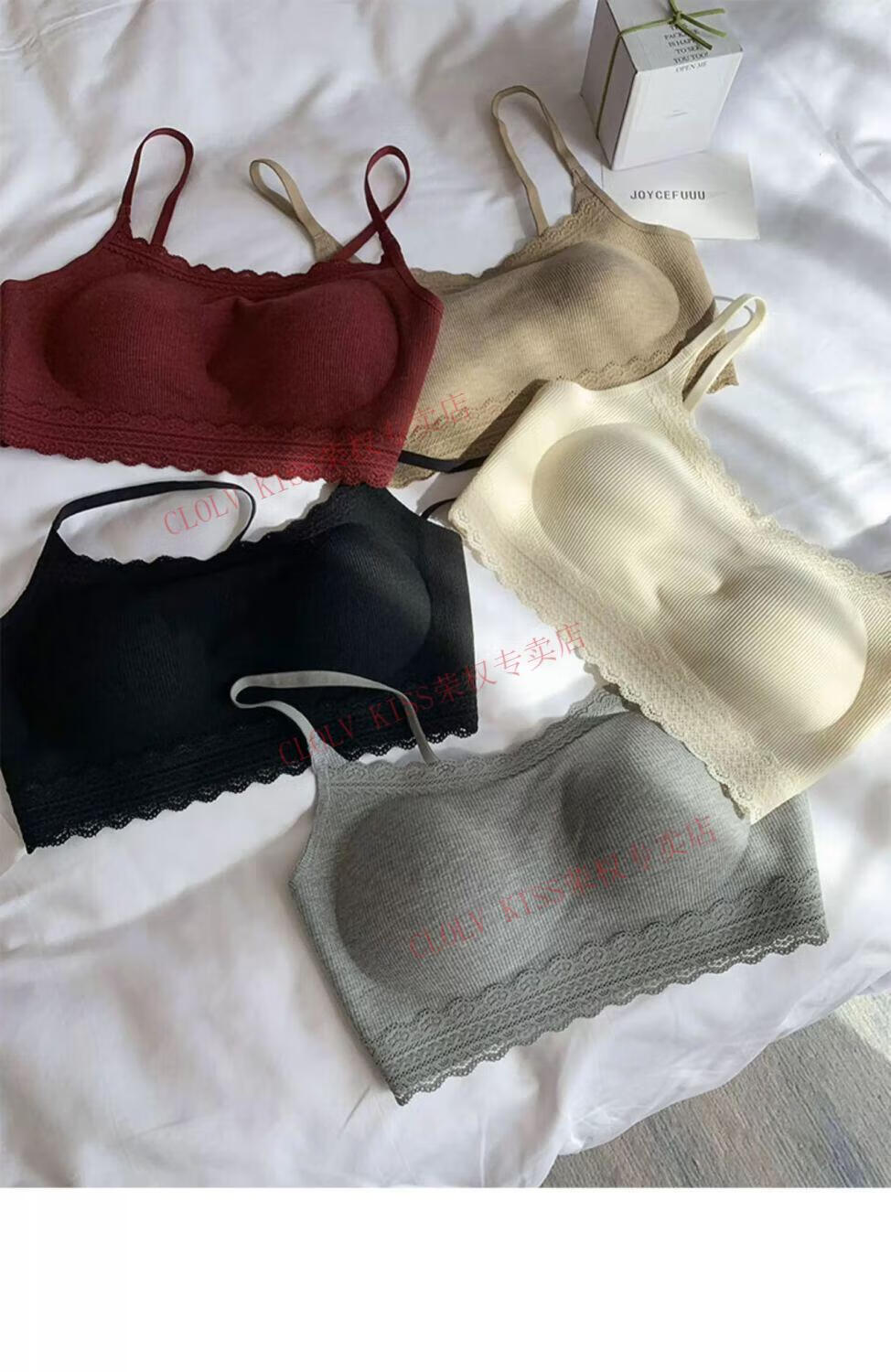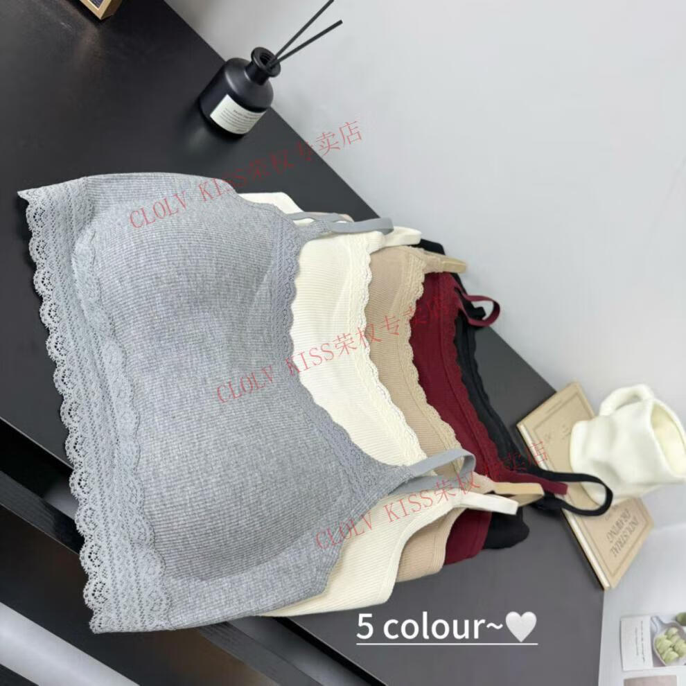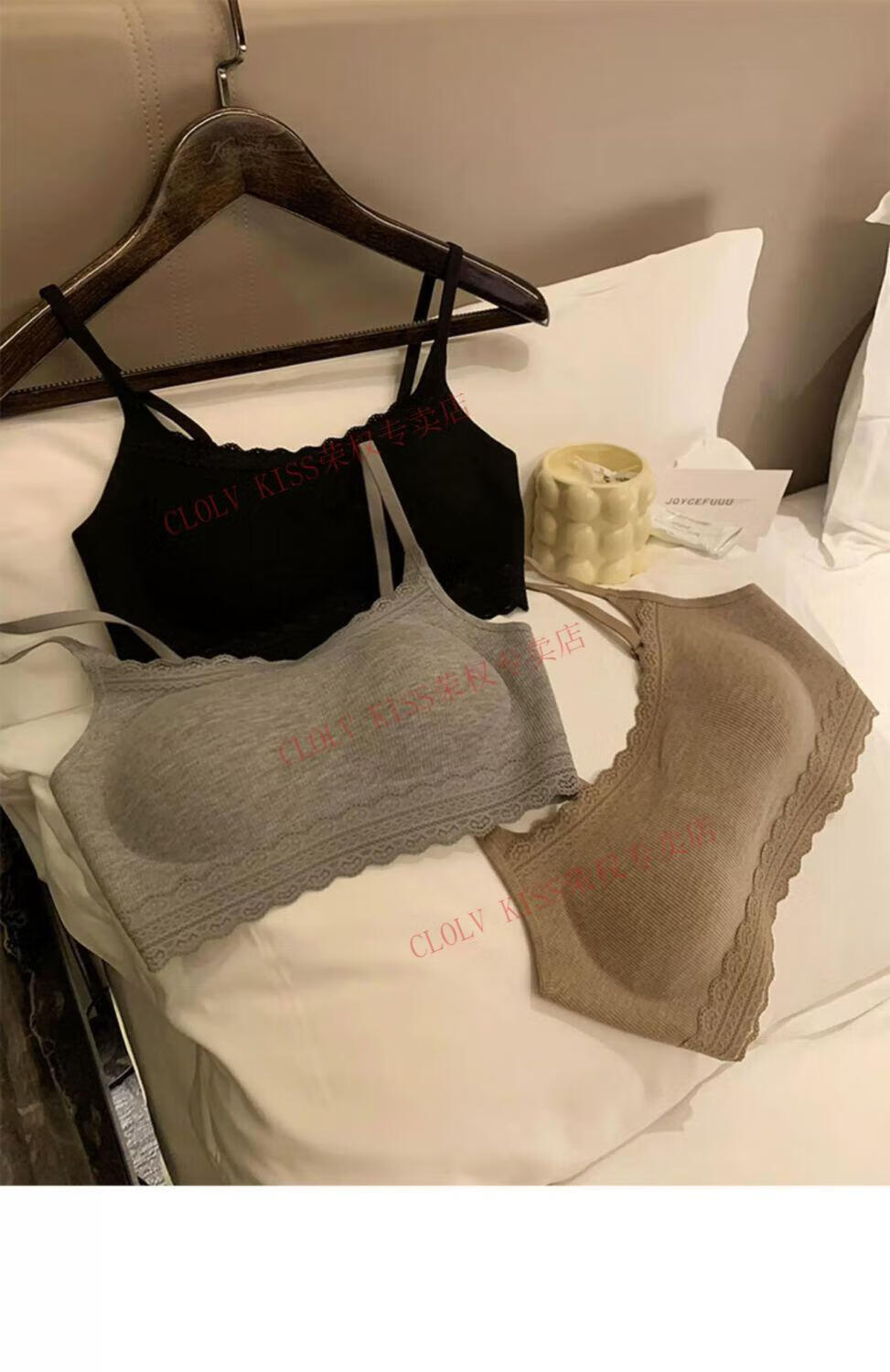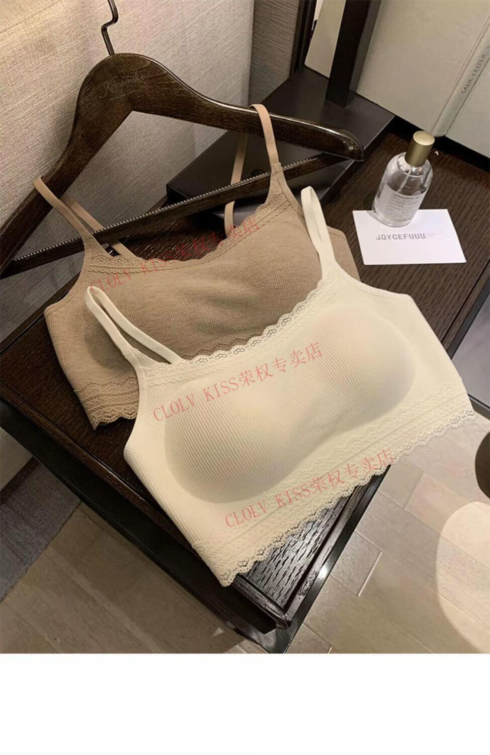 Clolv kissCK forest color lace underwear women's latex breathable fixed one-cup tube top women's push-up beautiful back camisole black + khaki quality version one size fits all 80-120Jin Jin equals 0.5 kg