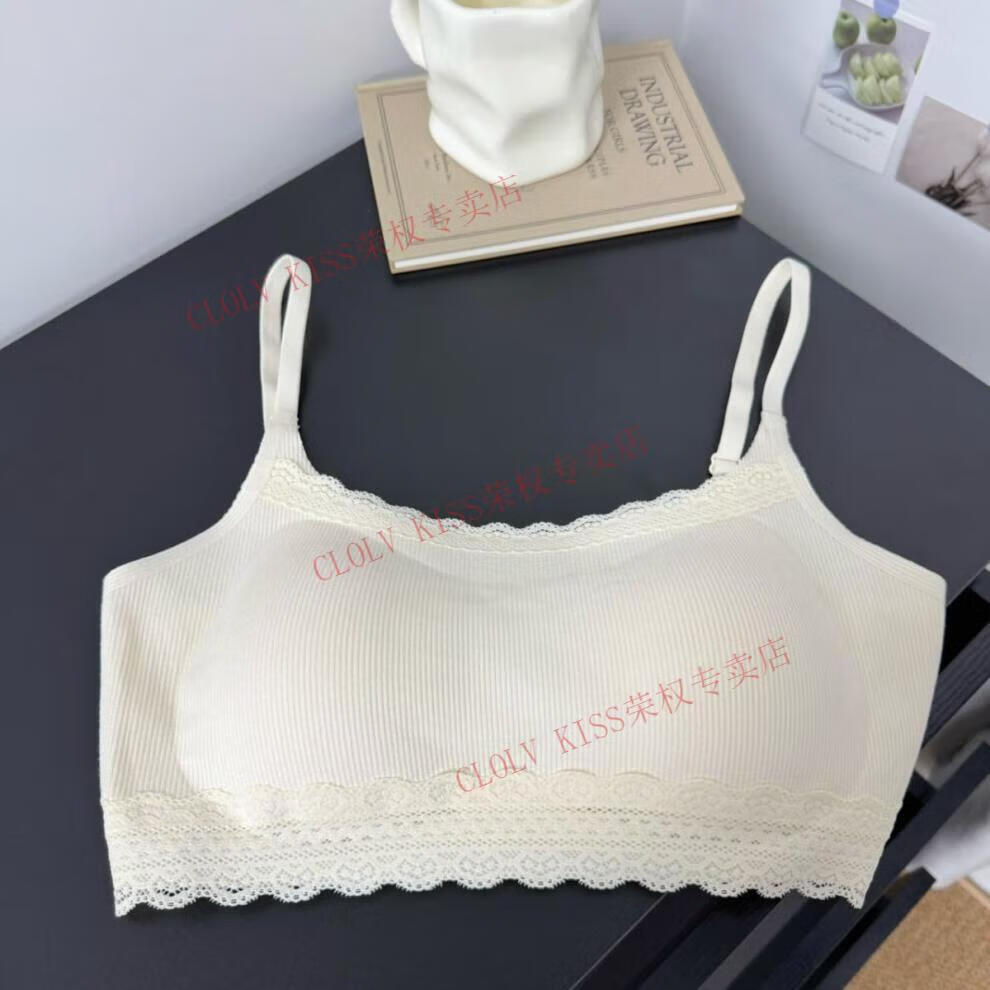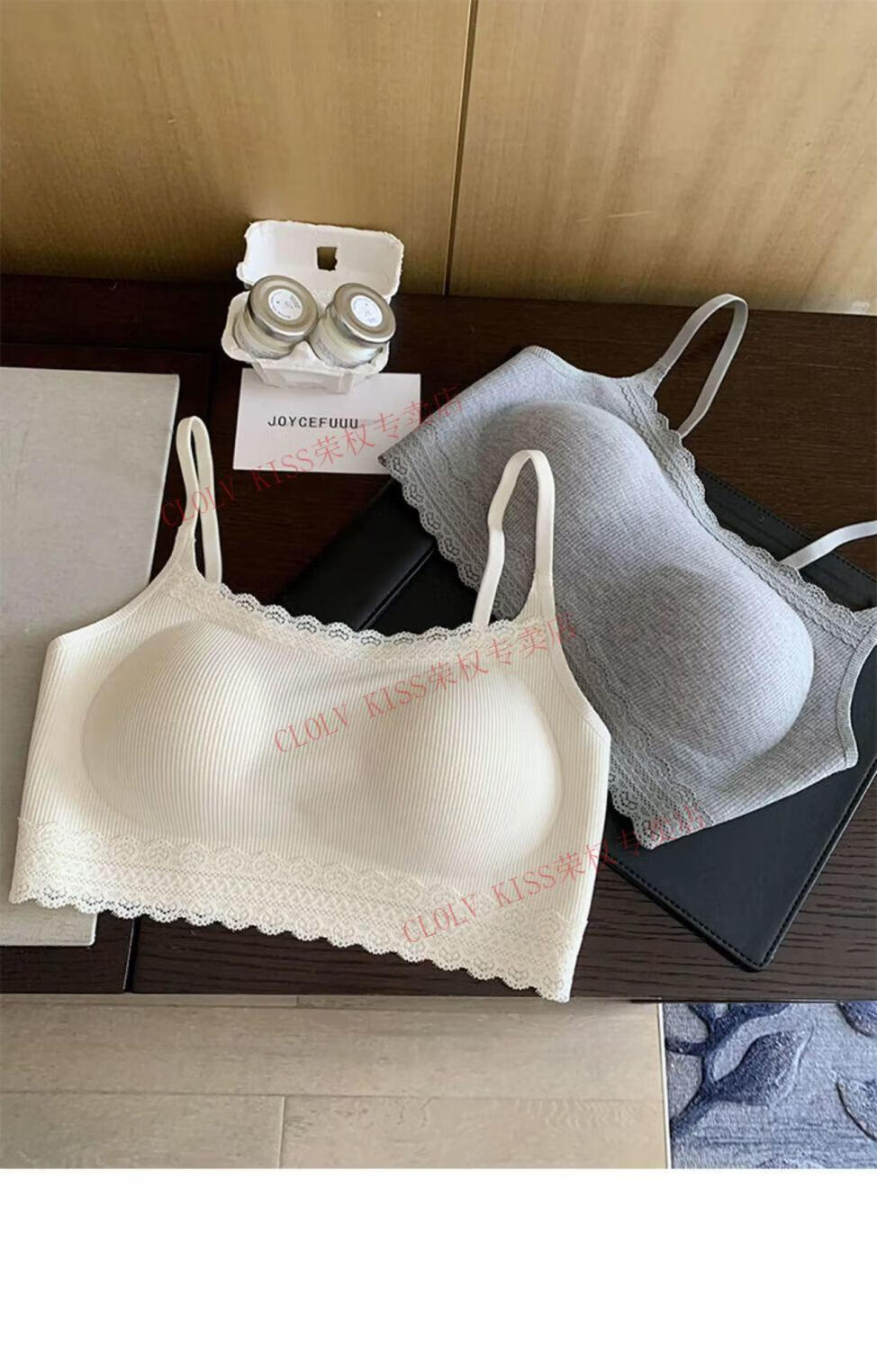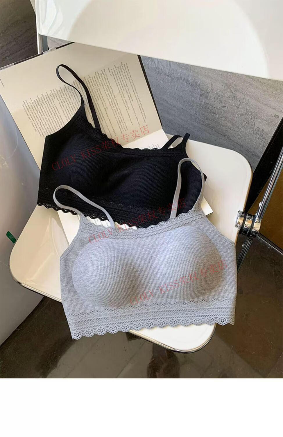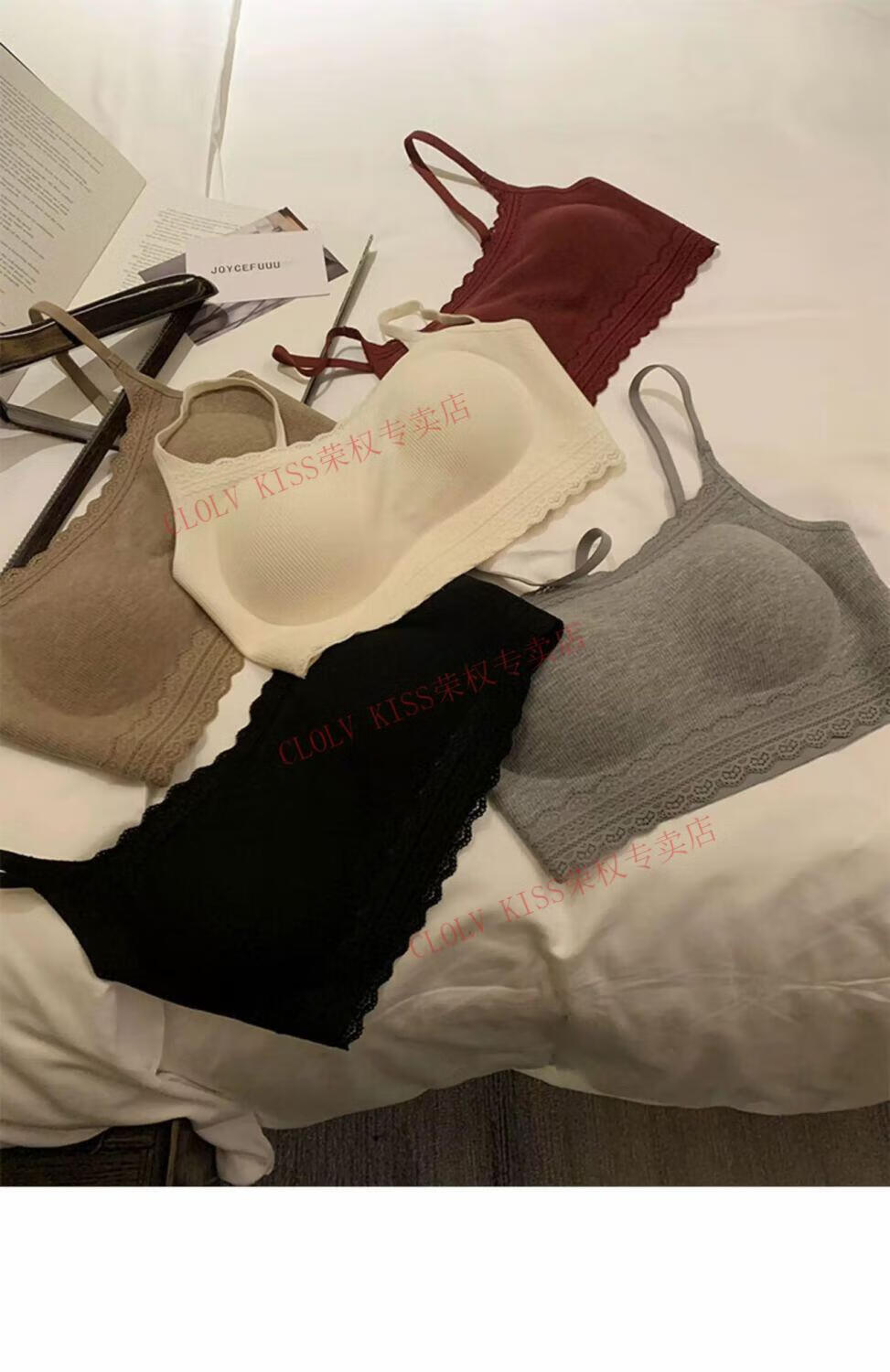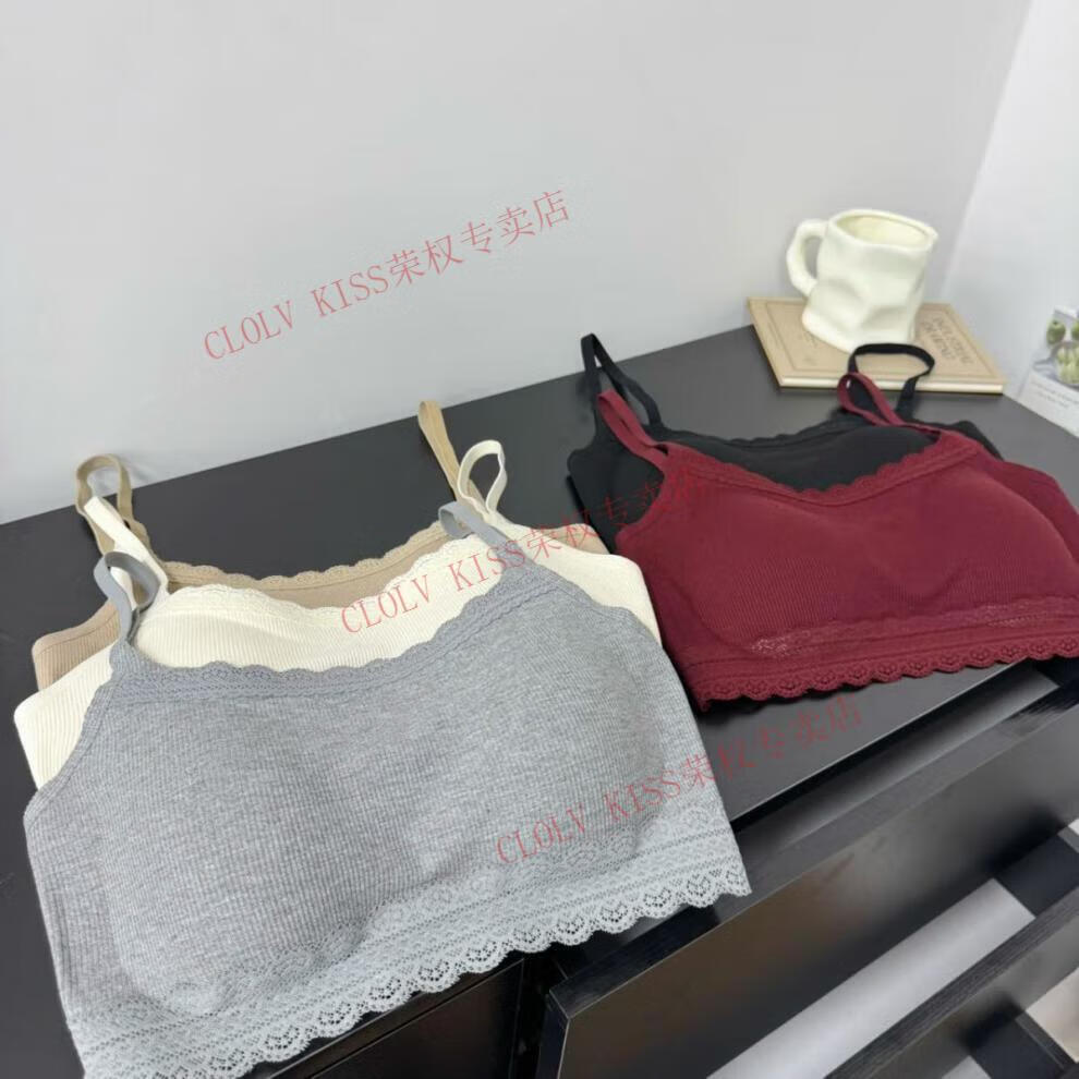 Clolv kissCK forest color lace underwear women's latex breathable fixed one-cup tube top women's push-up beautiful back camisole black + khaki quality version one size fits all 80-120Jin Jin equals 0.5 kg