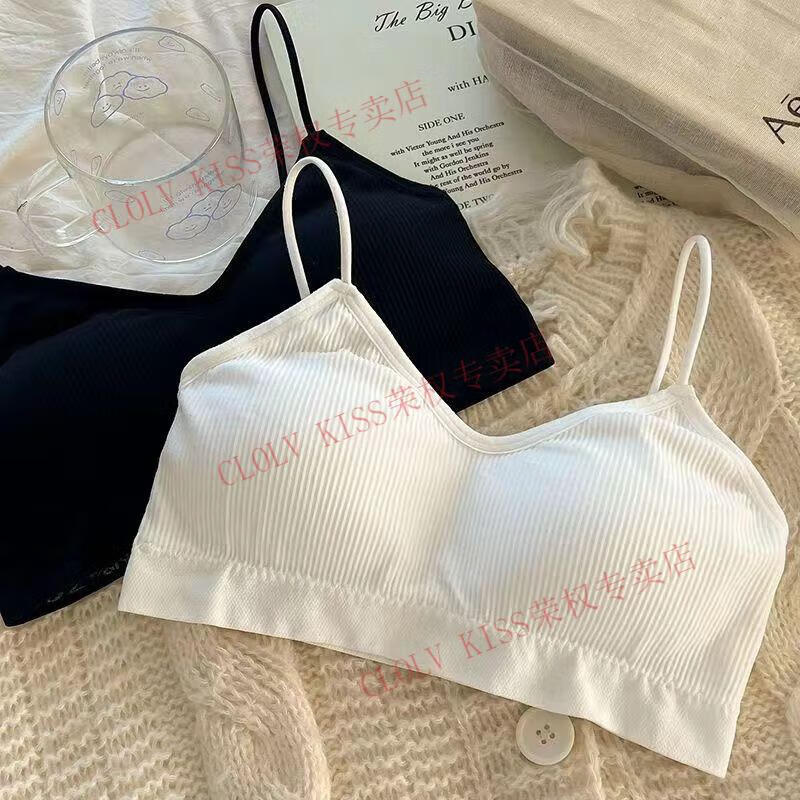 Clolv kissCK girl's beautiful back sports tube top without rims underwear camisole anti-exposure small breast push-up student bra three-piece black + white + gray S 70-90Jin Jin equals 0.5 kg