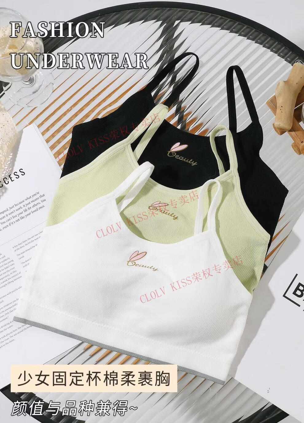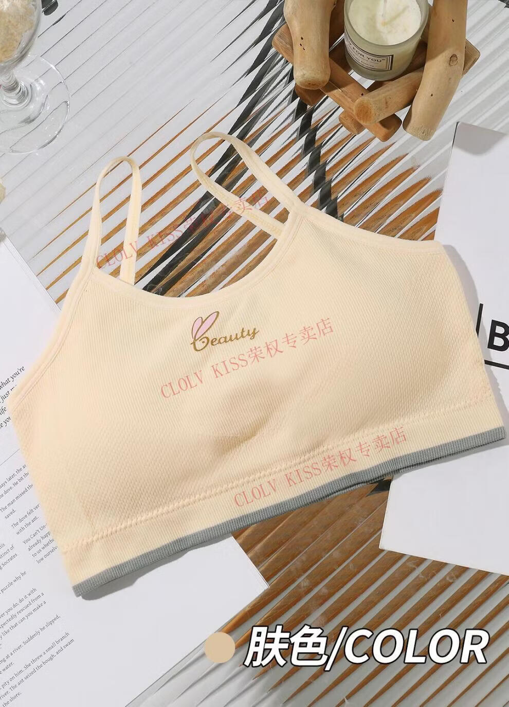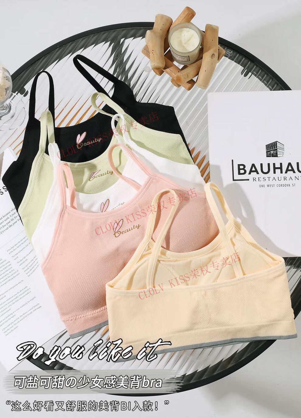 Clolv kiss developmental girl bra no rims camisole anti-bulge point showing small breasts all-in-one fixed coaster underwear for women skin color + pink S 60-80Jin Jin is equal to 0.5 kg