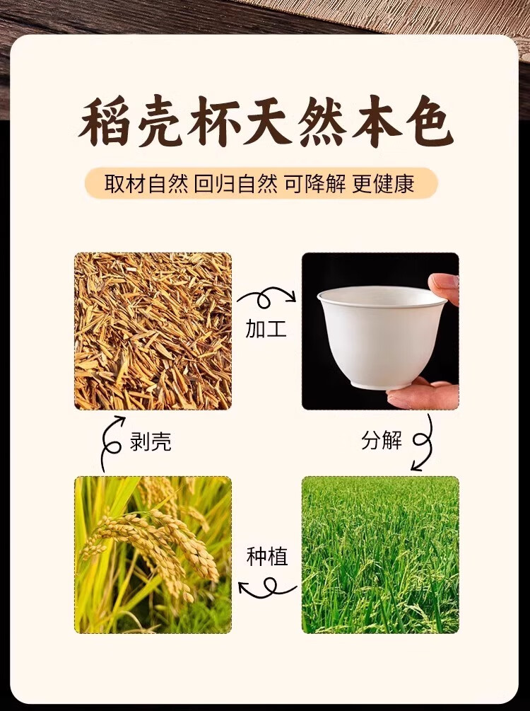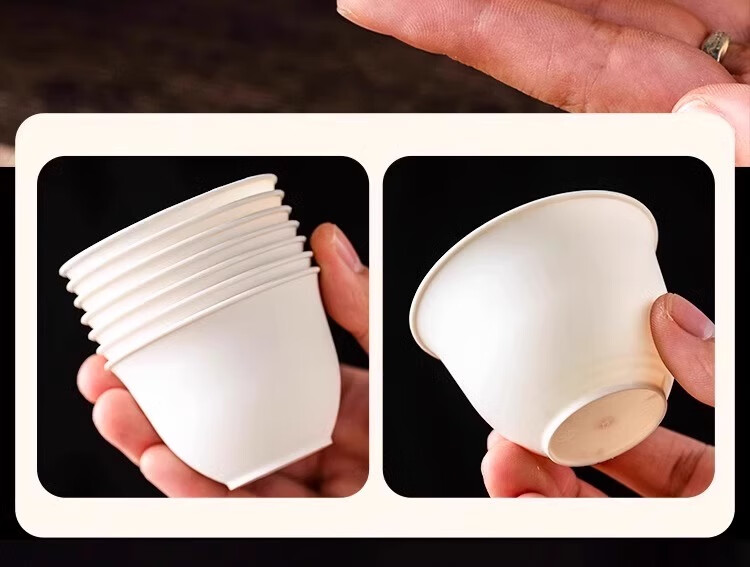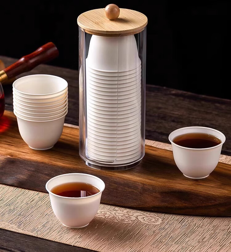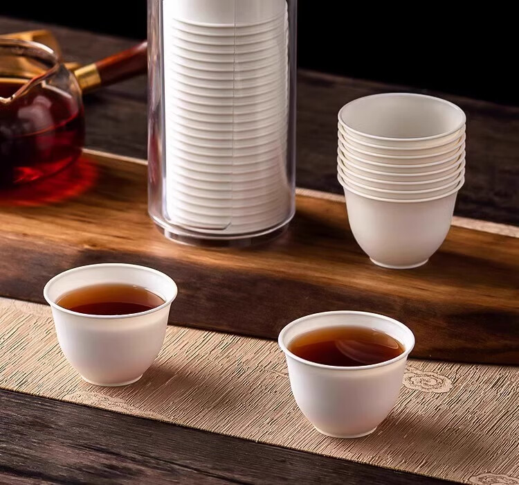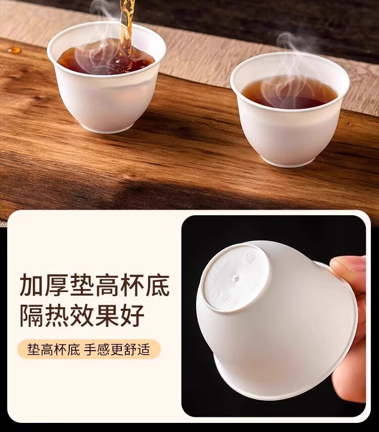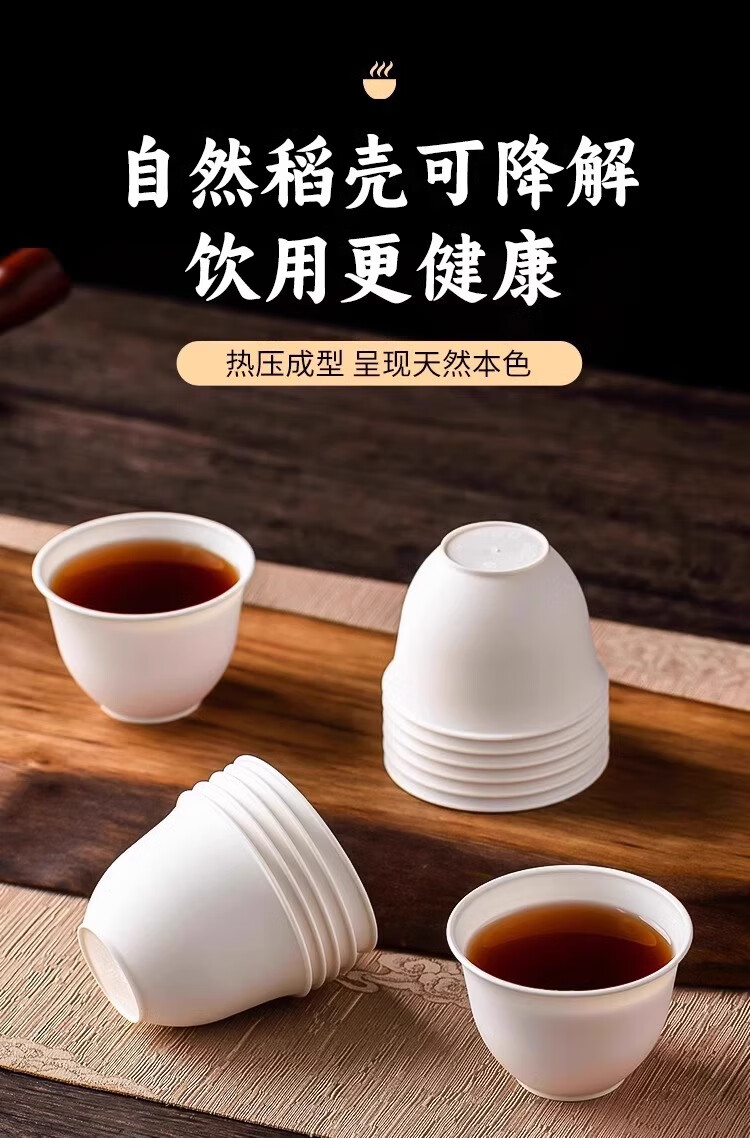 JCZS German brand disposable tea cup rice husk kung fu tea cup thickened high temperature resistant household travel tea cup portable rice fragrant cup 4 packs/200 pieces with dustproof cup holder