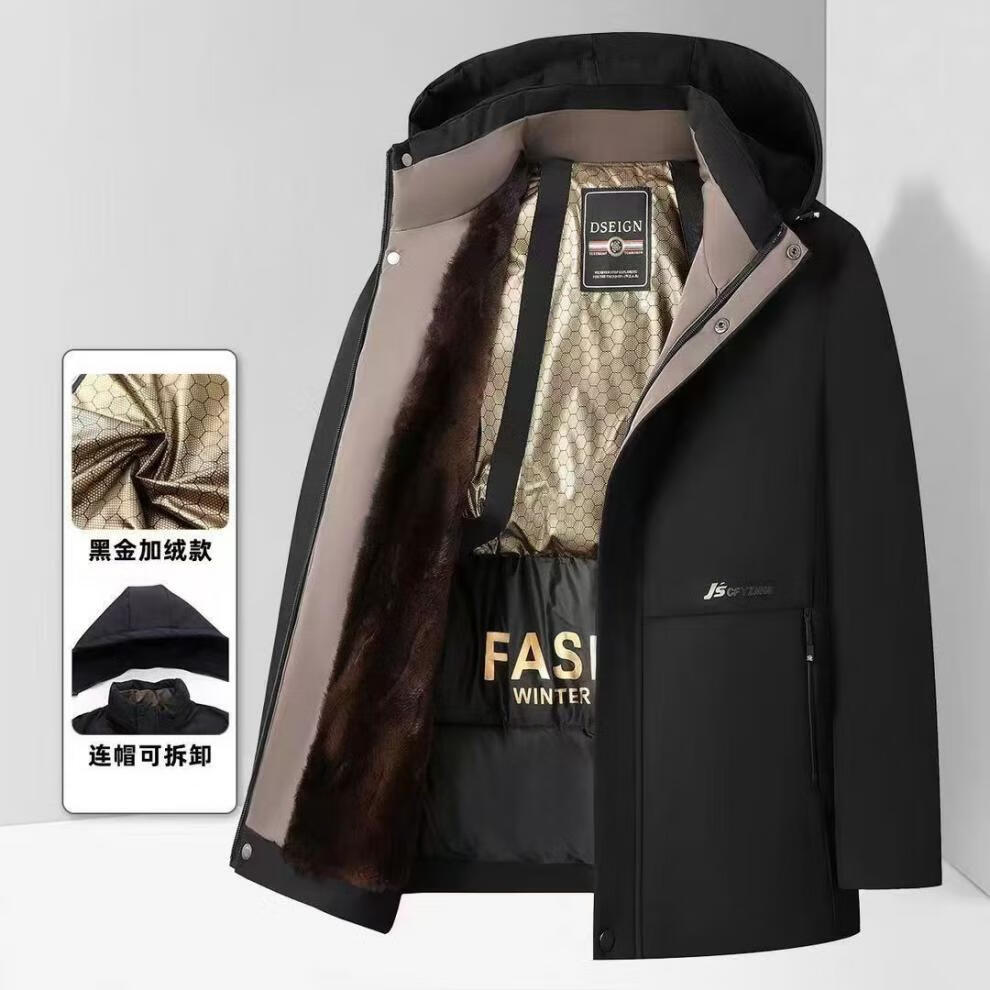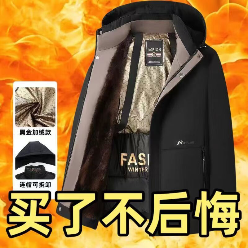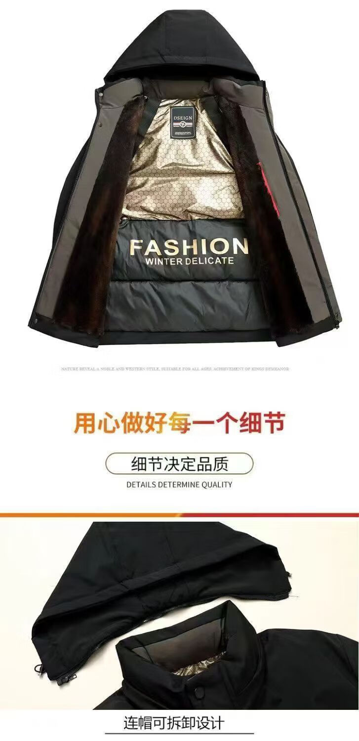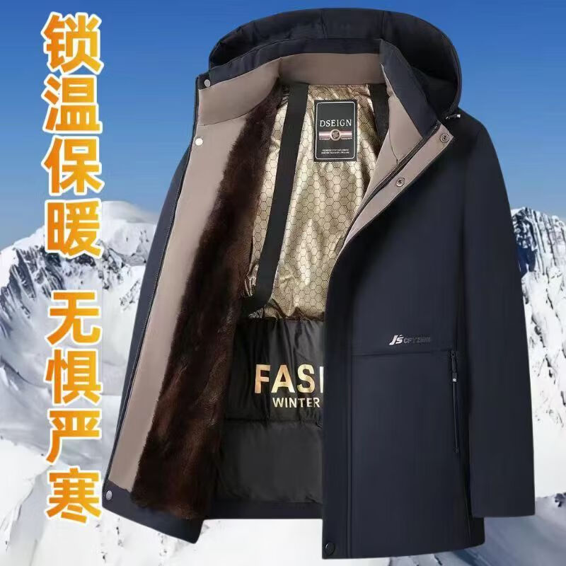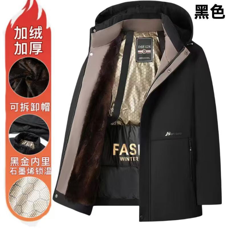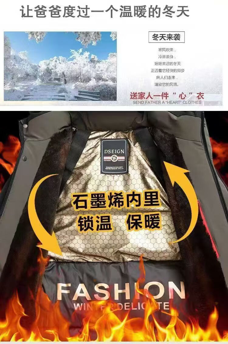 Pierre Cardin high-end men's cotton jacket winter velvet middle-aged and elderly business warm graphene pie jacket windproof and cold-proof clothing Navy blue XL suitable (120-140Jin Jin equals 0.5kg)