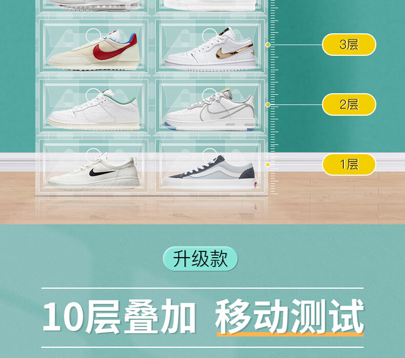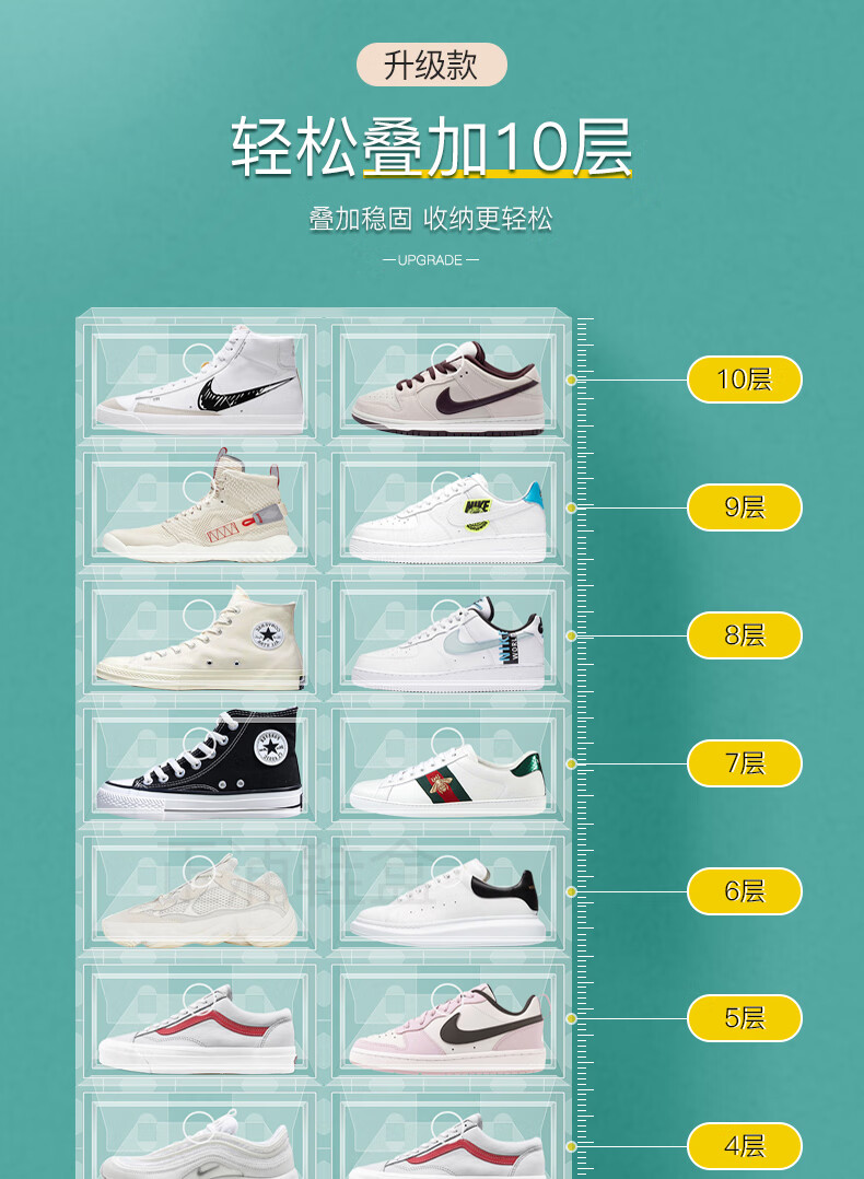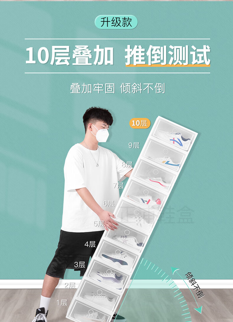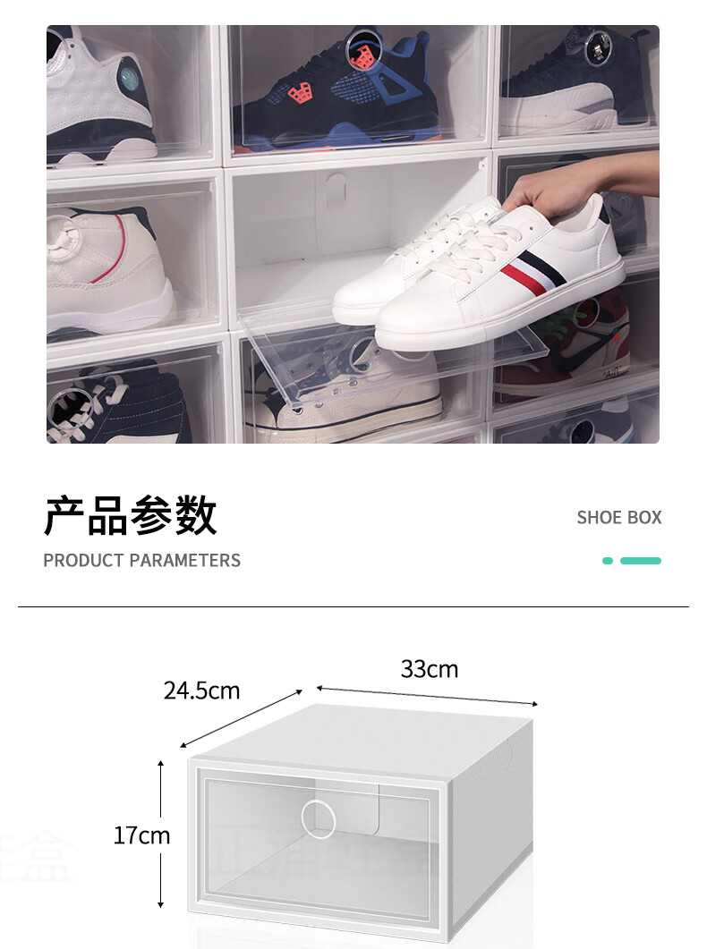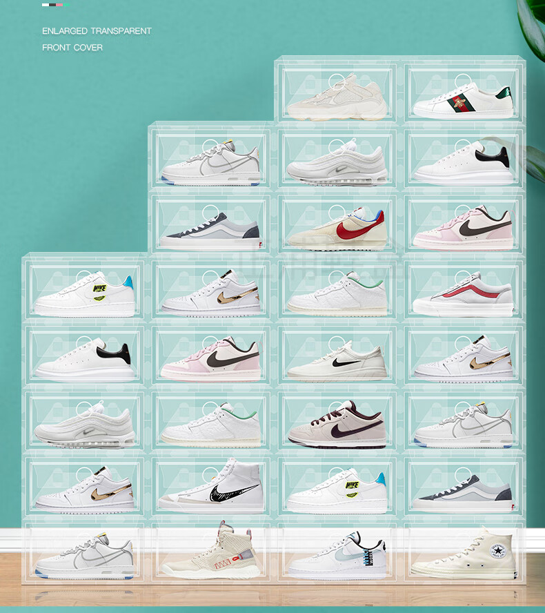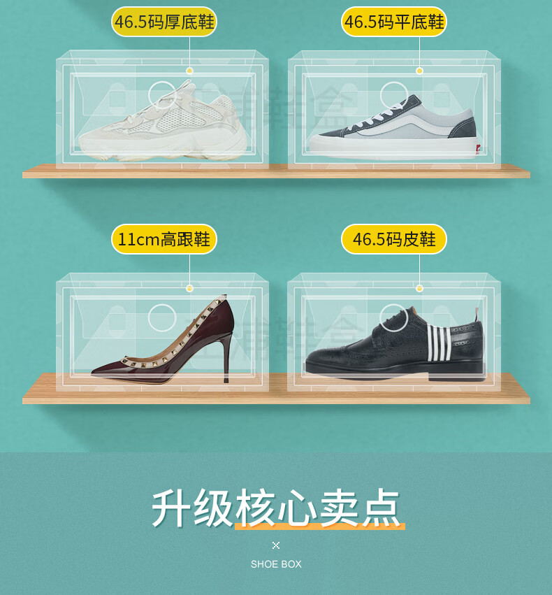Fat Donglai's same shoe storage artifact, transparent acrylic shoe box, sneaker box, plastic shoe cabinet, internet celebrity aj shoe box, 46.5 size high tube can be loaded, charcoal black 9 pieces, plus 9 more, total 1