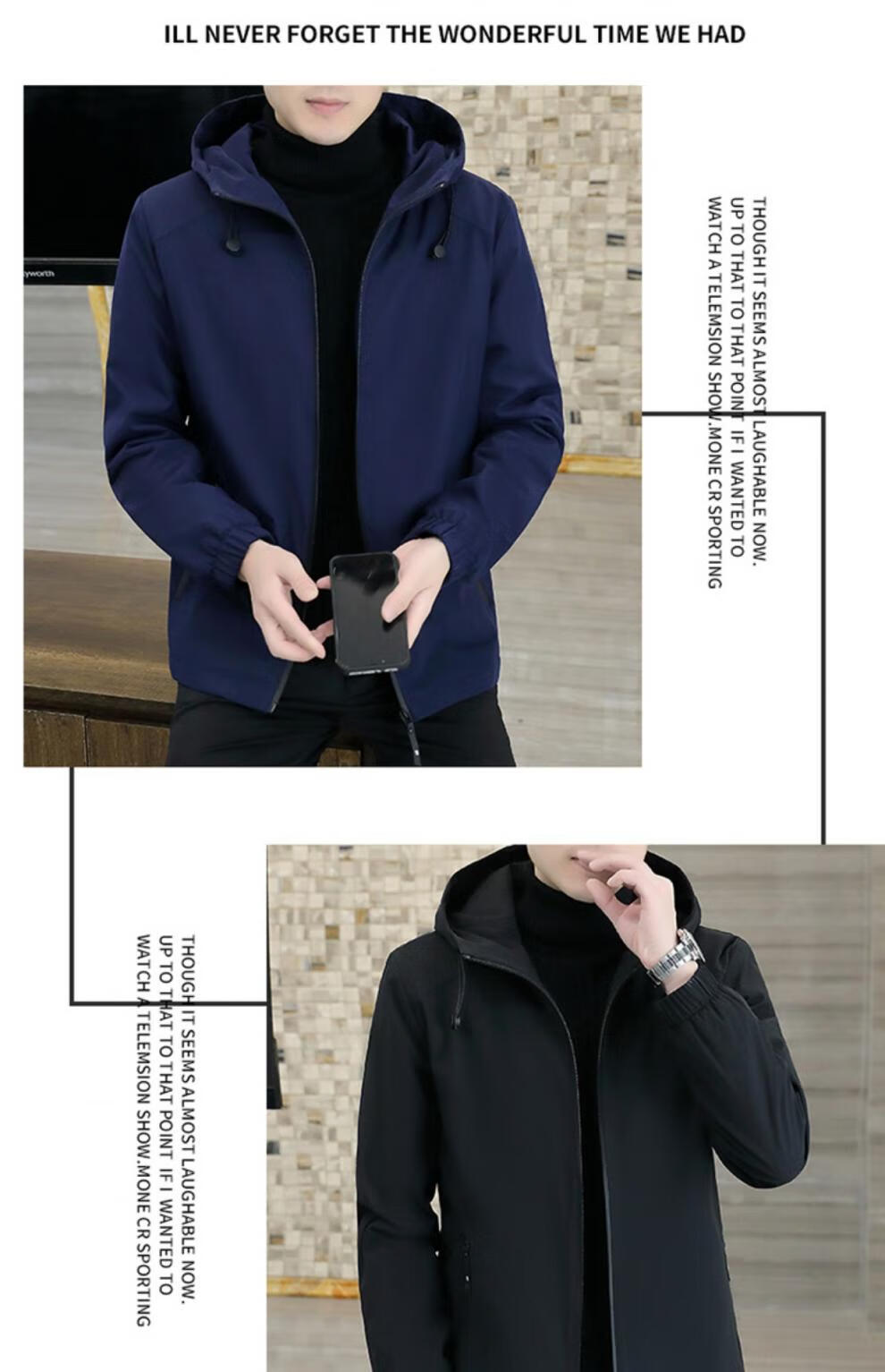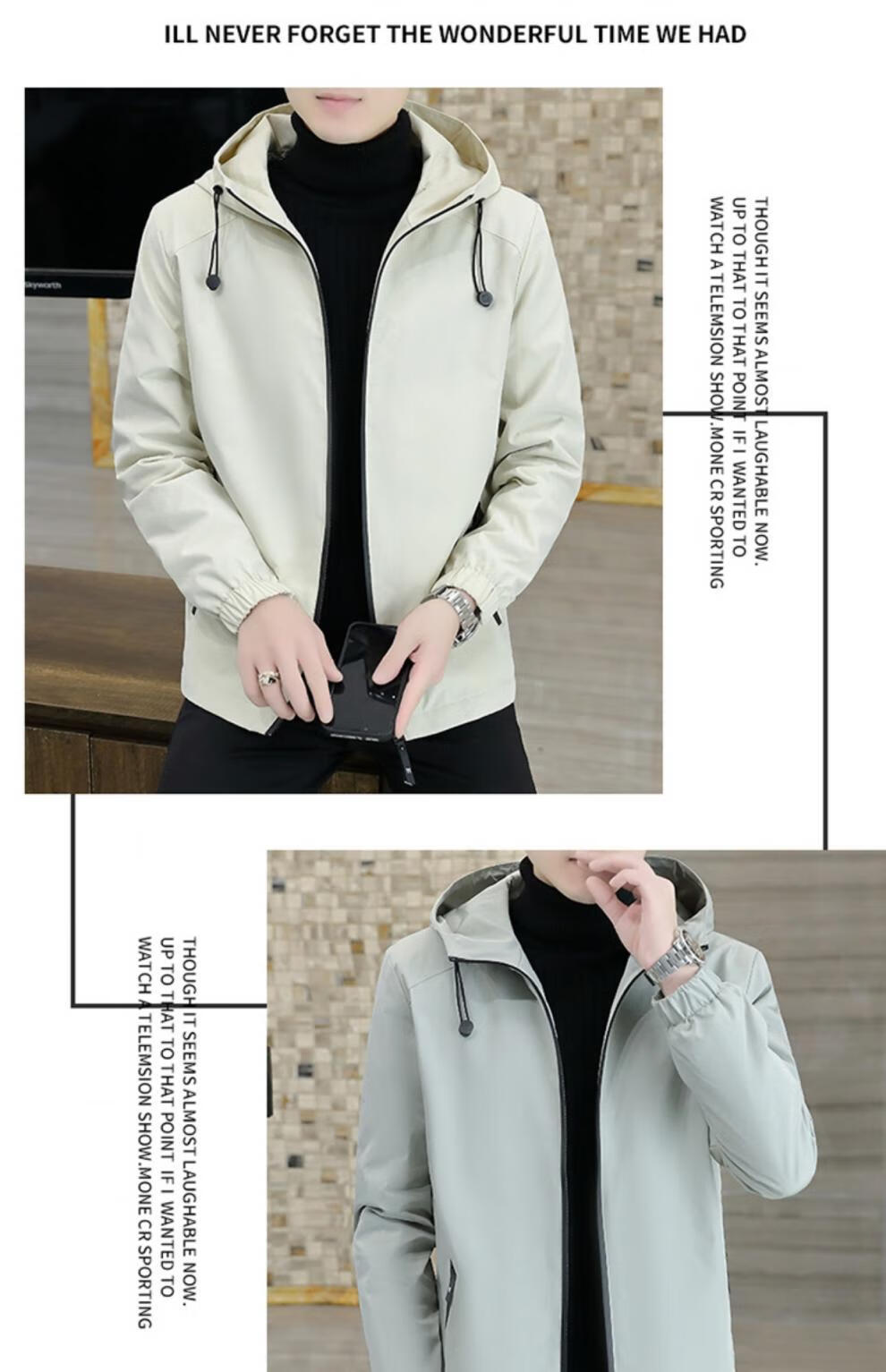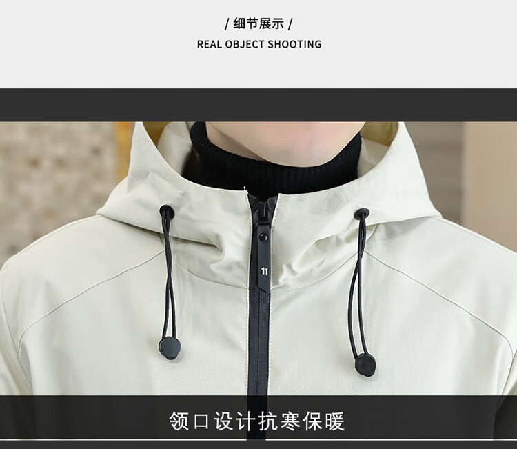Huanyi Hangzhou Итальянская французская ветровка Мужская осень-зима 2025 Новая мужская куртка Мужская зимняя модная бархатная куртка для мужских повседневных видов спорта 8121 Бежевый без бархата Тонкая секция 4XL 166-180Jin Jin равна 0,5 кг