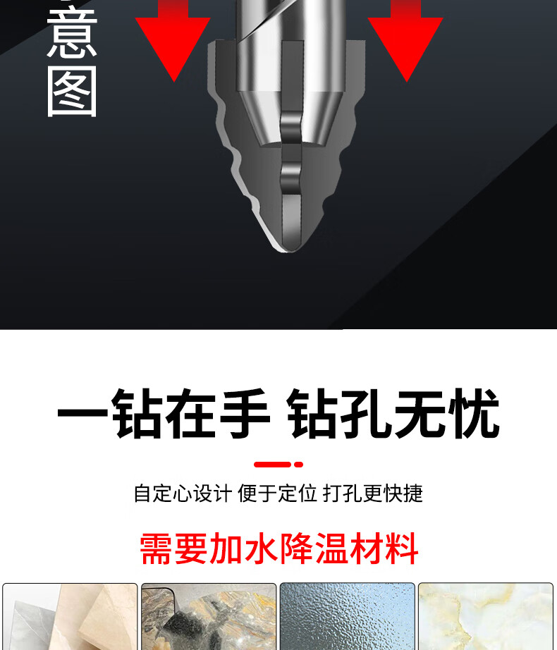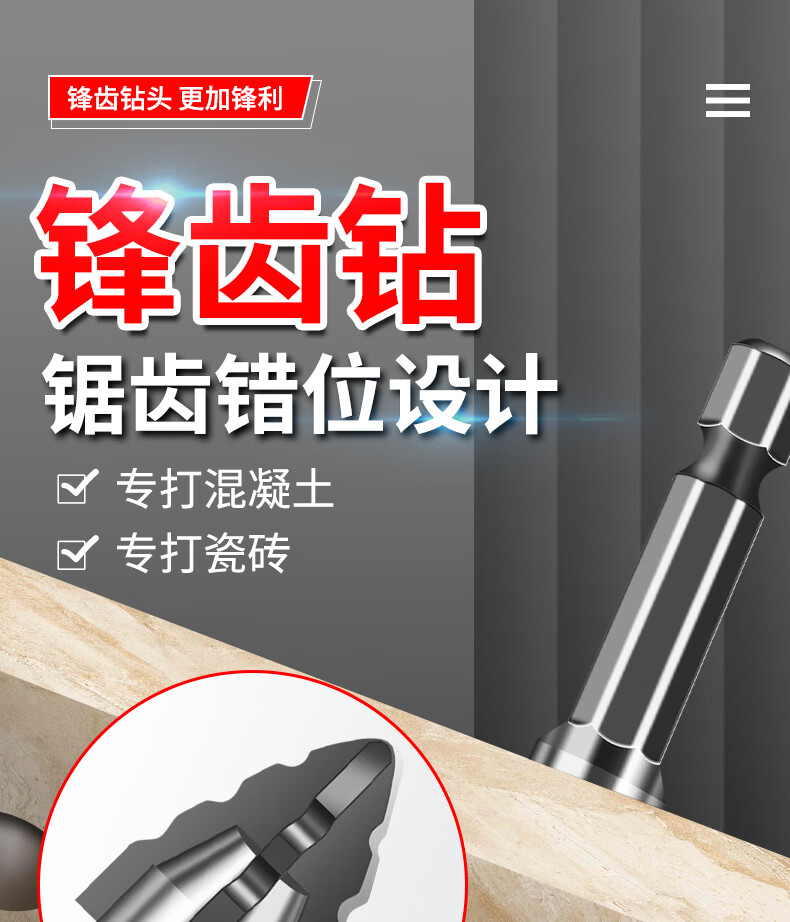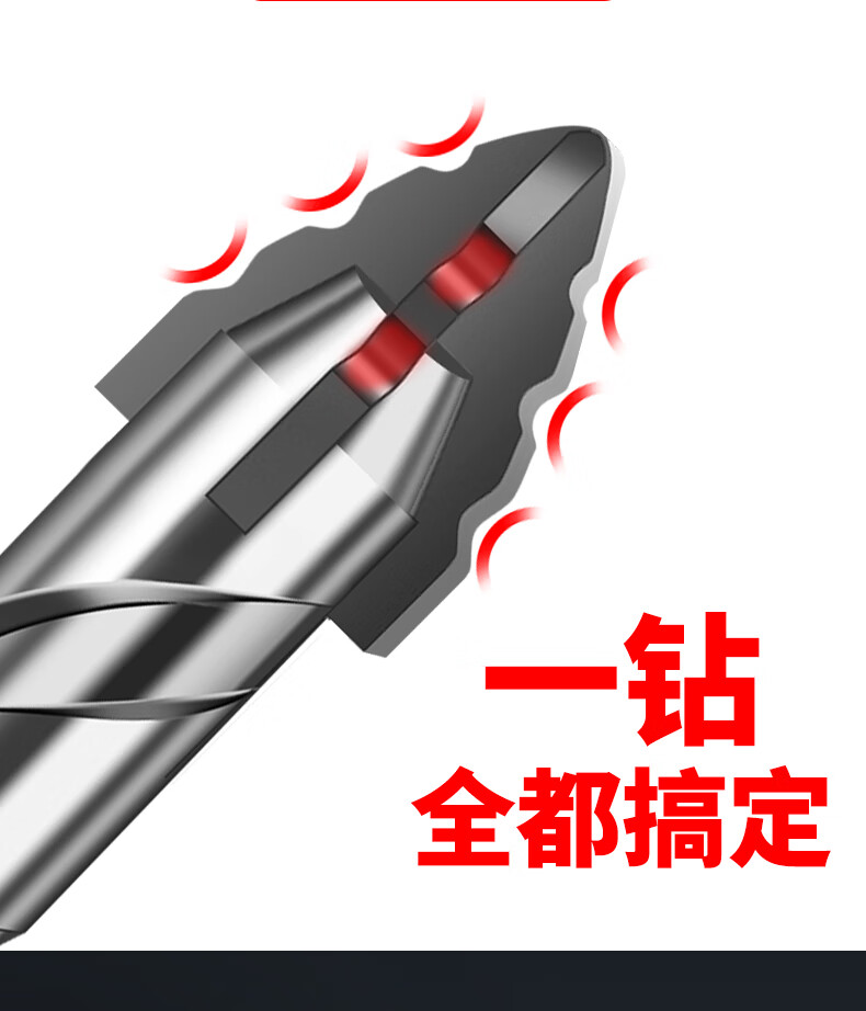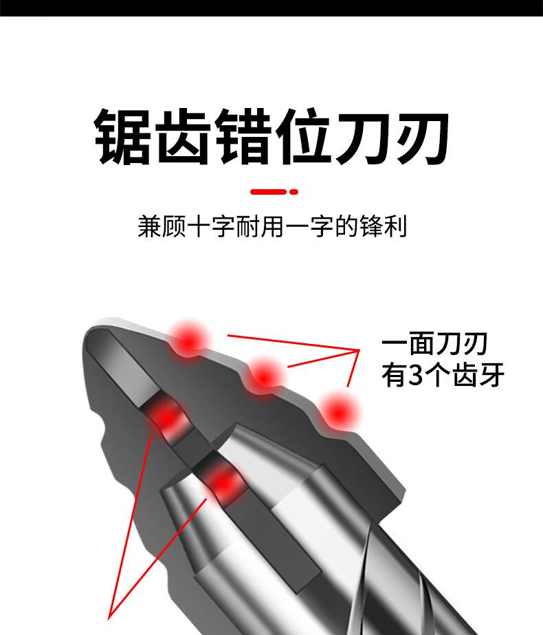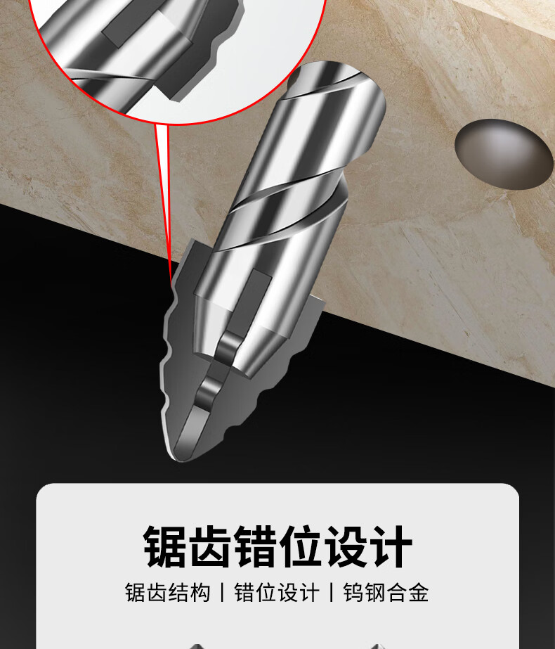 New sharp tooth drill offset serrated tungsten steel alloy triangle drill sharp and wear-resistant home decoration wet and dry drilling drill bit silver four-edged sharp tooth drill 6+6+8+8mm 1 each