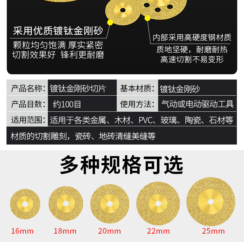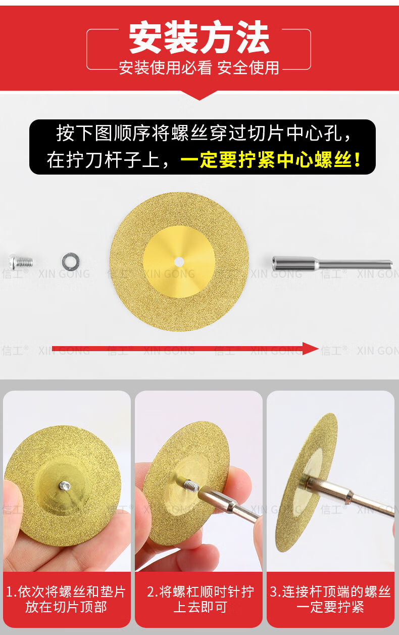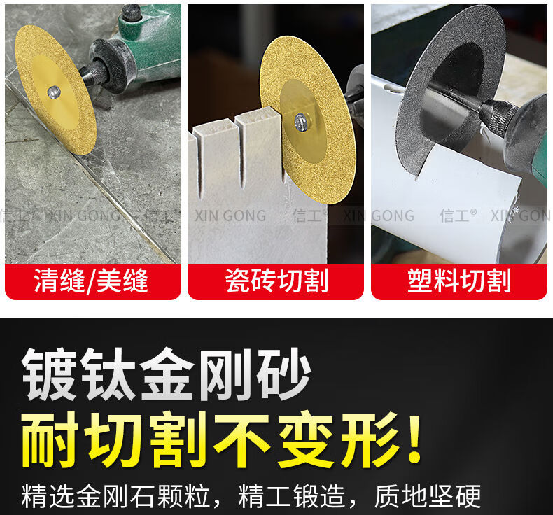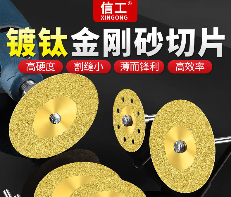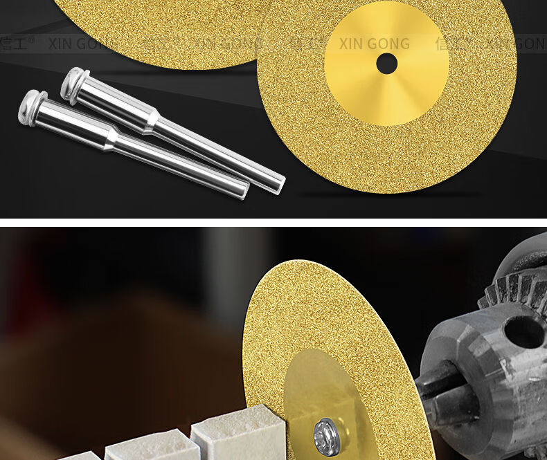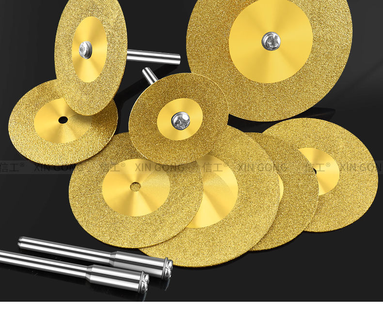 Dongcheng diamond small slice titanium-plated hardened ceramic tile glass ceramic jade cutting piece beautiful seam tool seam clearing polishing piece without hole 60mm (titanium-plated 2 pieces + silver 2 pieces) + 2 rods