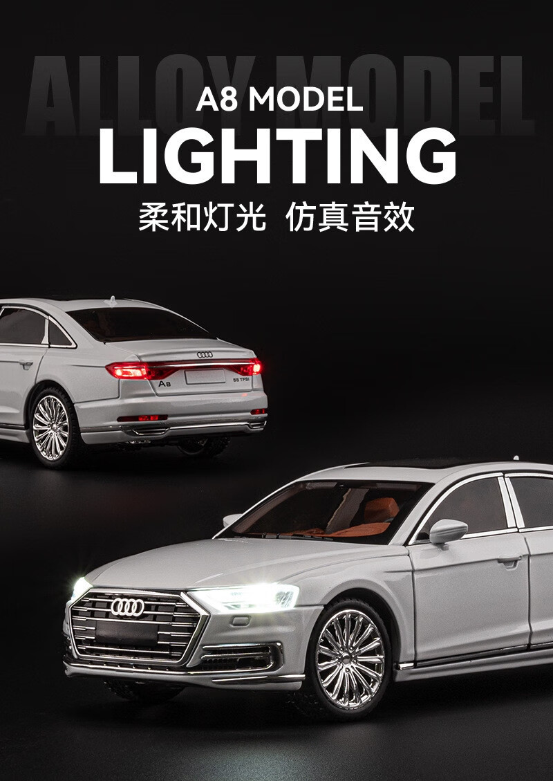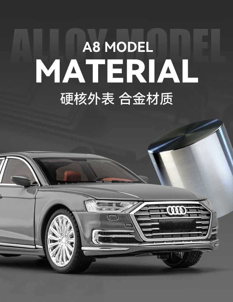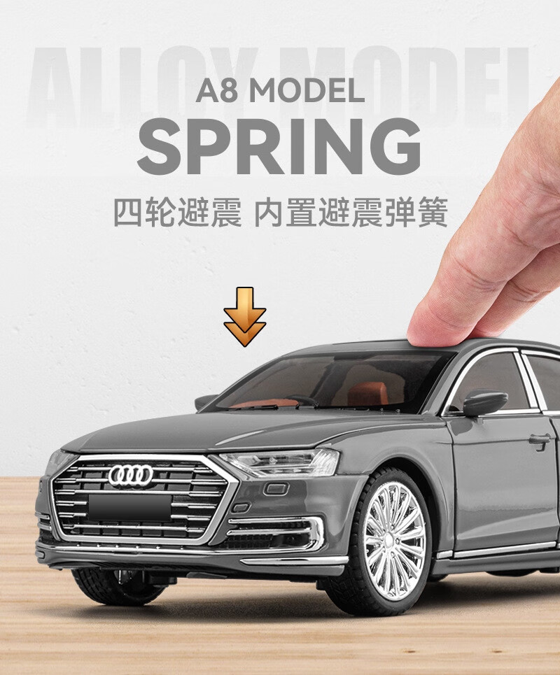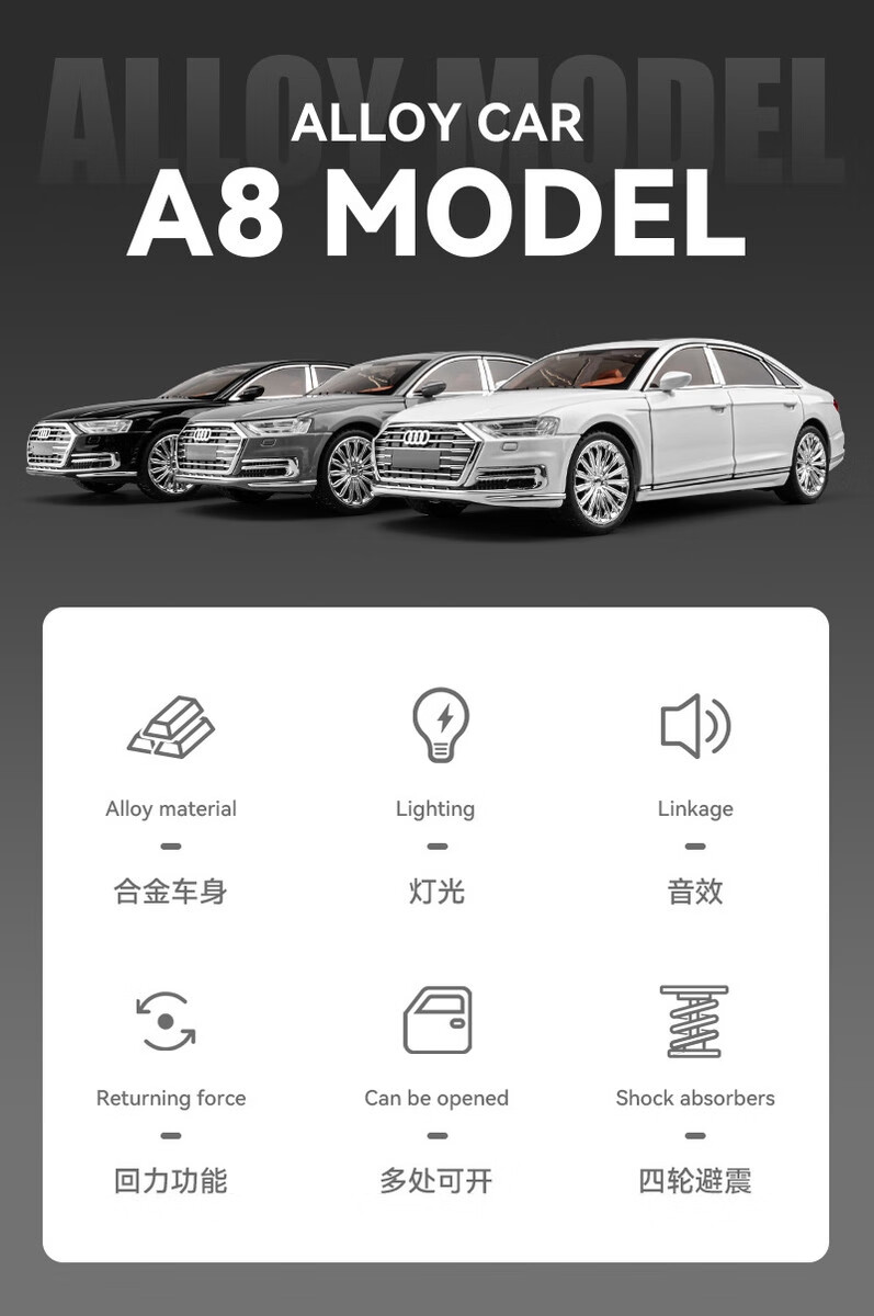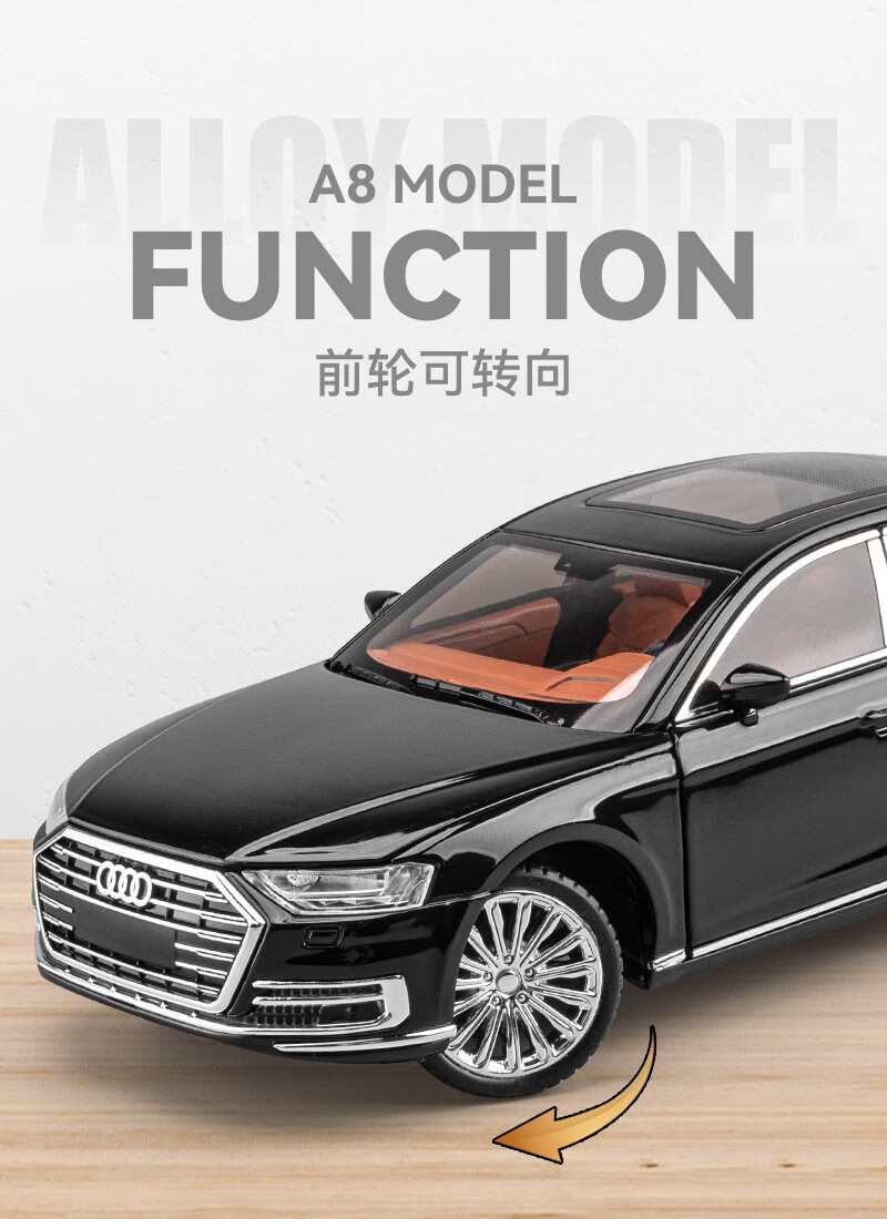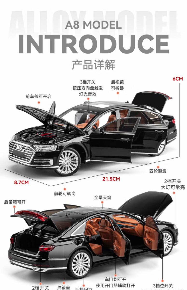 124 Large Audi 8 Sedan 6 Alloy Simulation Car Model Children's Gifts Boys Toy Collection Ornaments 14 Black Audi A7 Tail Wing Lift + Rearview Mirror Folding