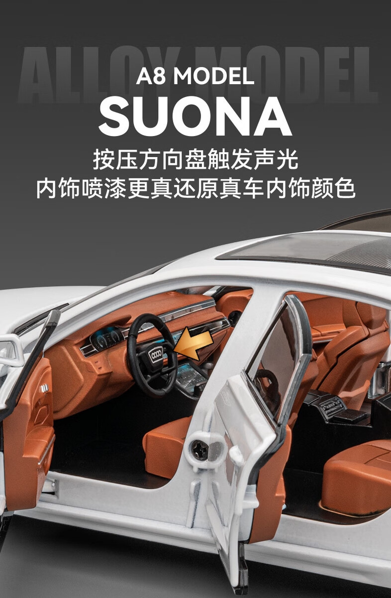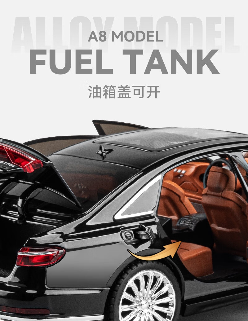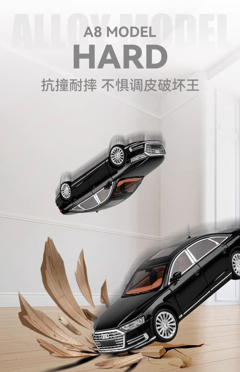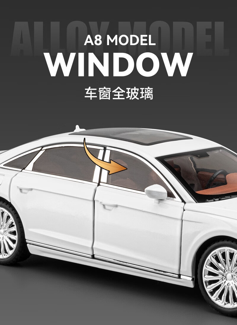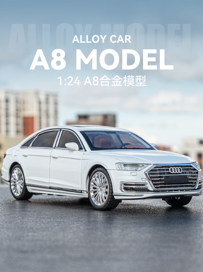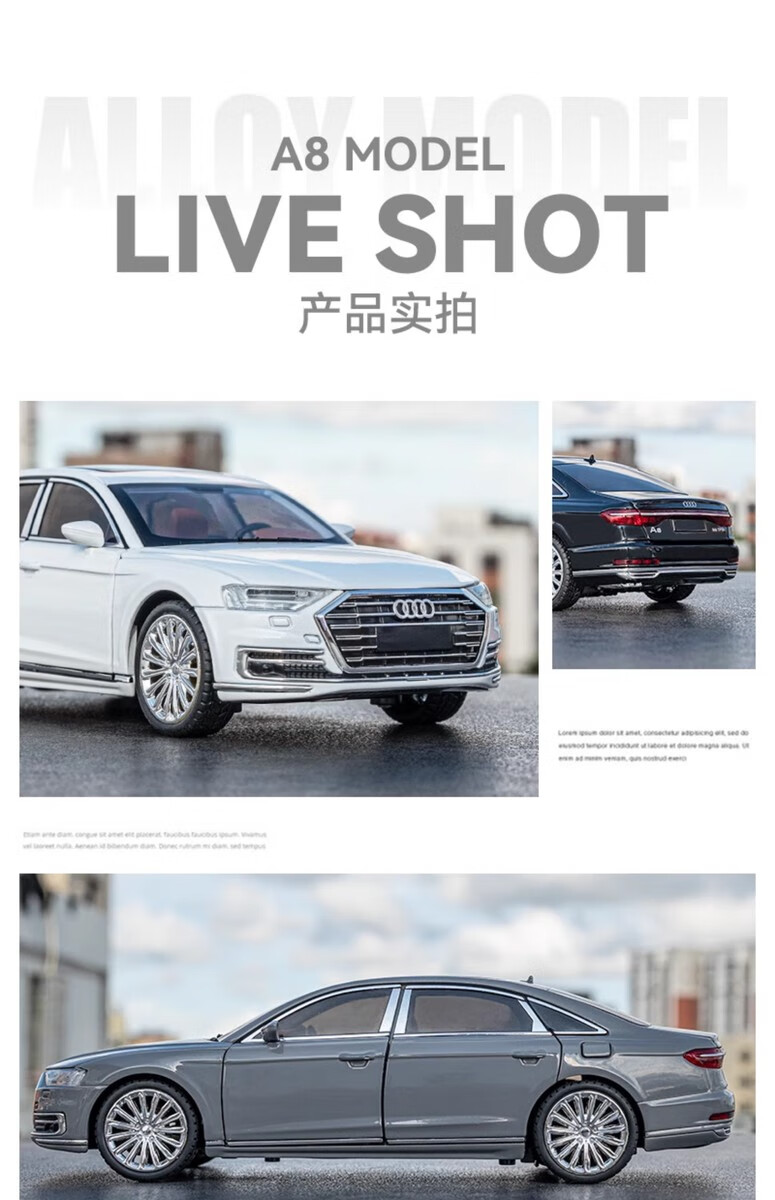124 Large Audi 8 Sedan 6 Alloy Simulation Car Model Children's Gifts Boys Toy Collection Ornaments 14 Black Audi A7 Tail Wing Lift + Rearview Mirror Folding