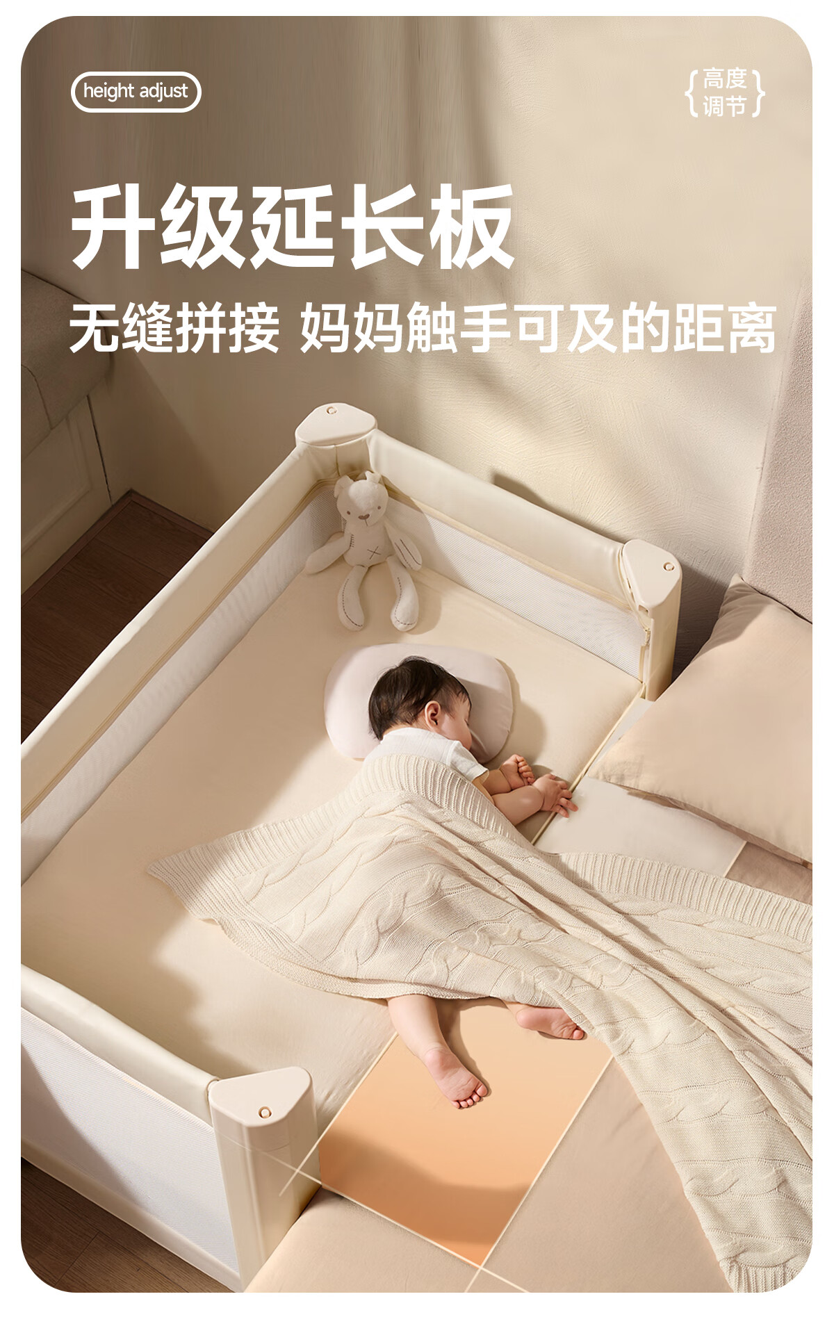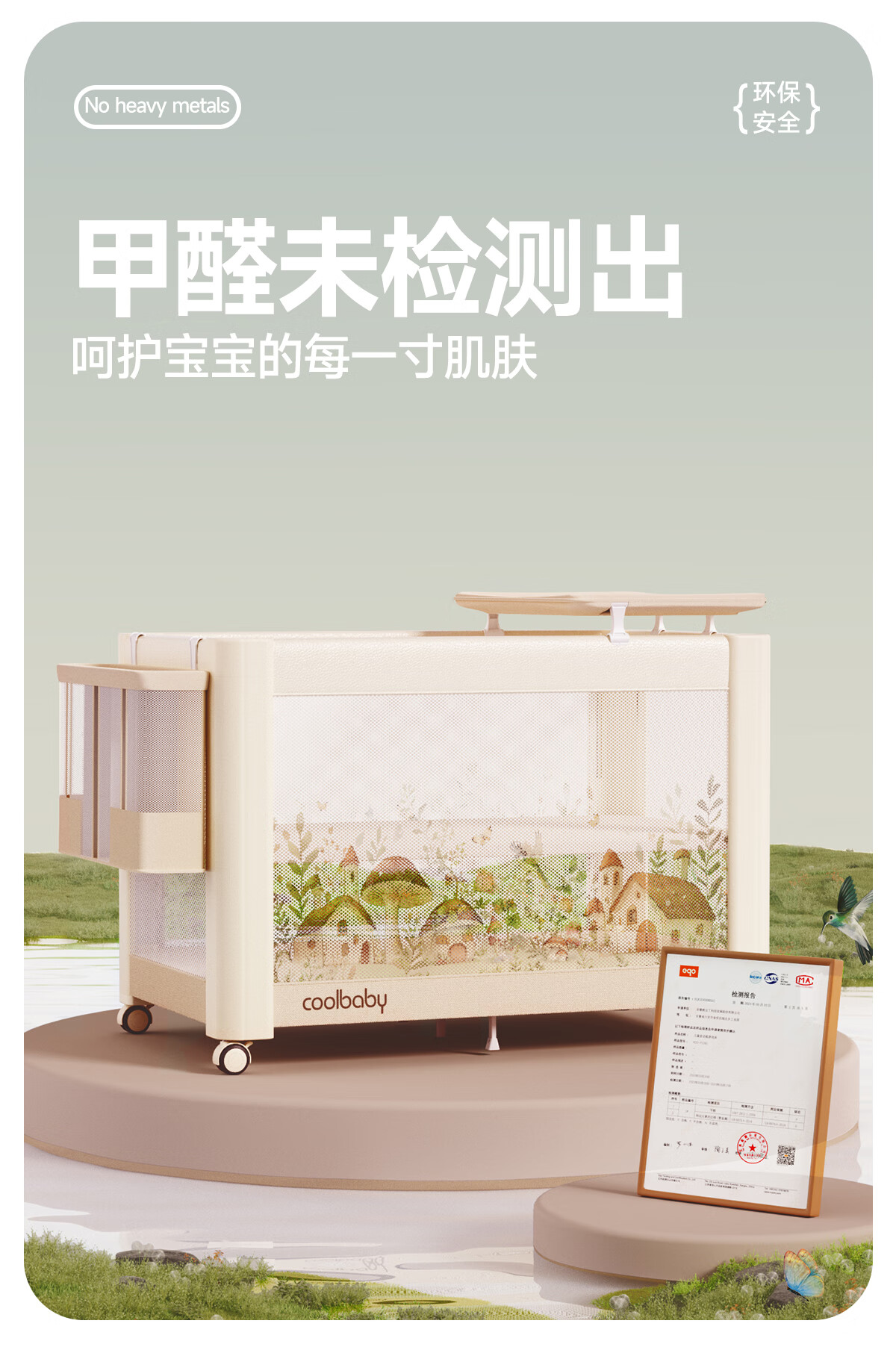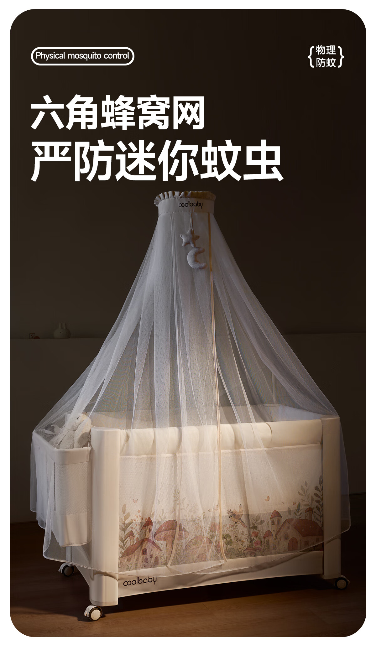 Coolbaby Mushroom House crib foldable newborn baby bed one-click opening and closing seamless splicing bed suitable for large bed lift Mushroom House