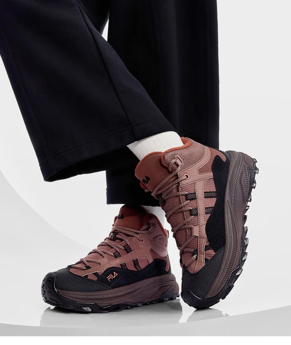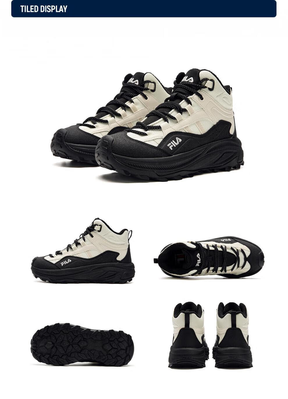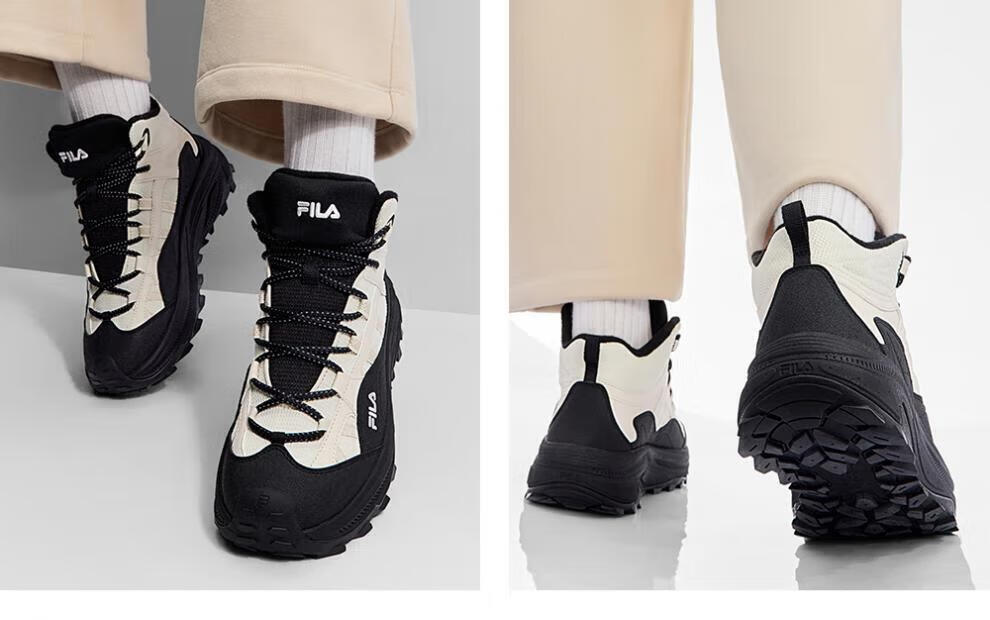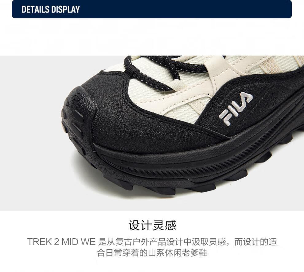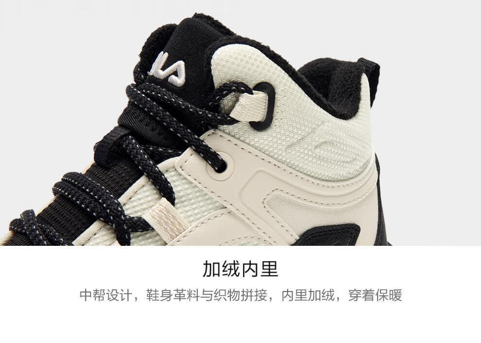 FILA autumn and winter women's shoes mid-cut plus velvet dad shoes sneakers 2025 winter new style baby's breath 2 casual shoes asparagus white/black-WB 35.5