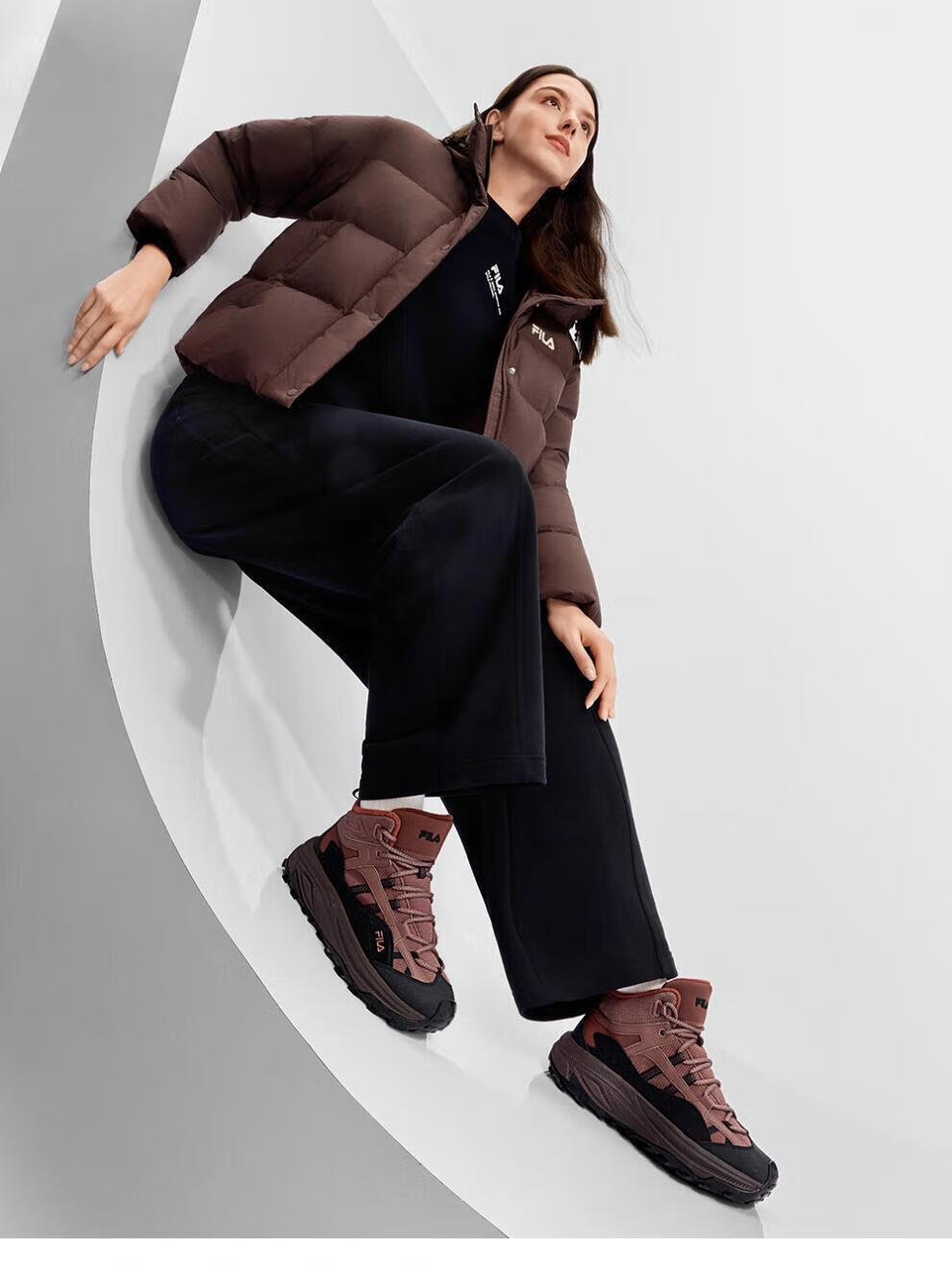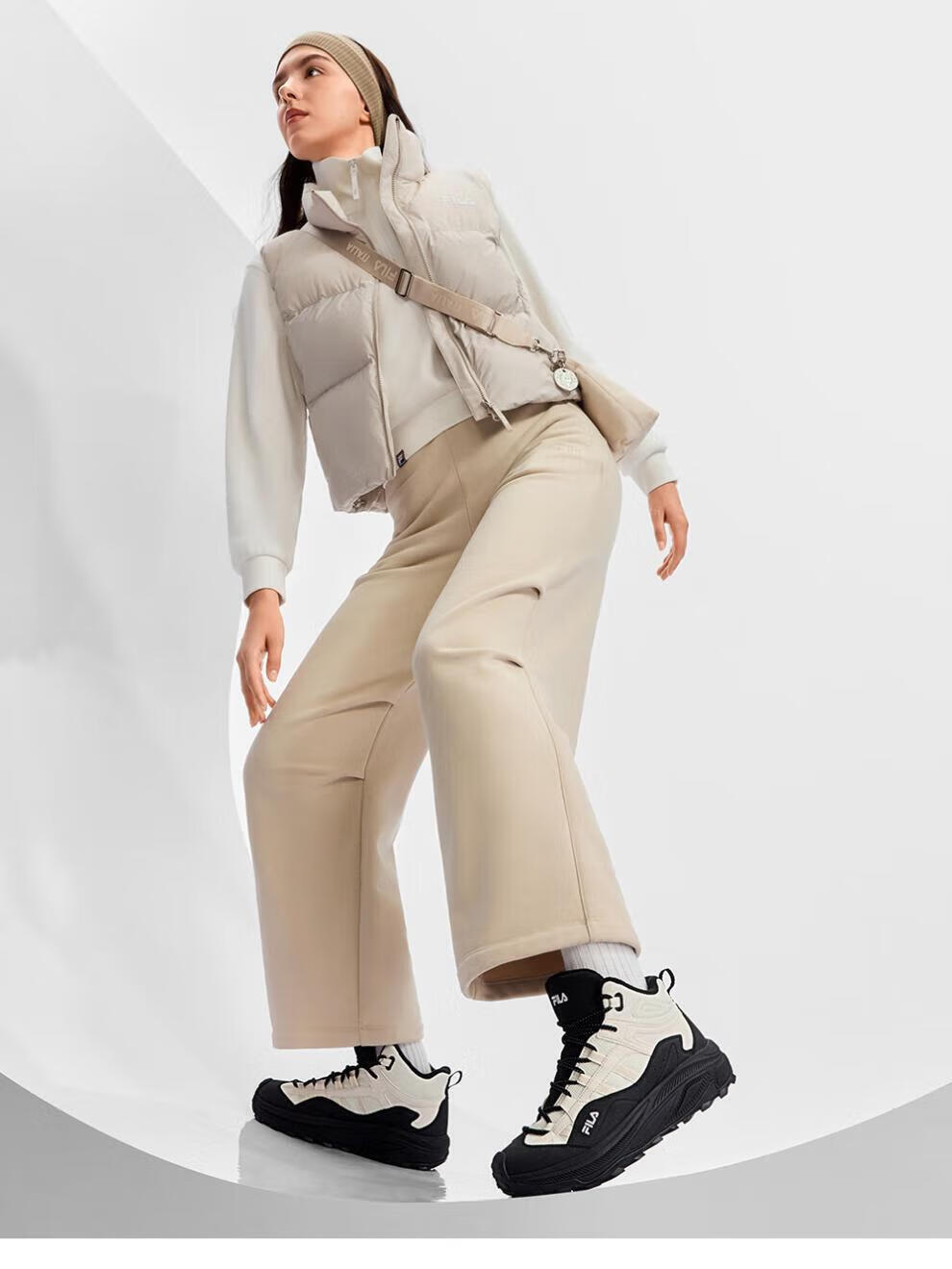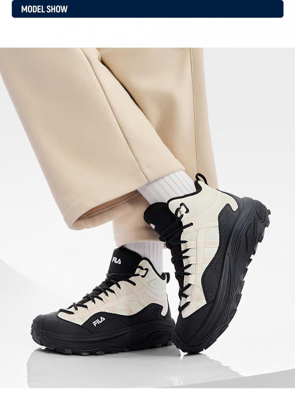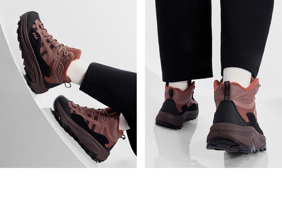 FILA autumn and winter women's shoes mid-cut plus velvet dad shoes sneakers 2025 winter new style baby's breath 2 casual shoes asparagus white/black-WB 35.5