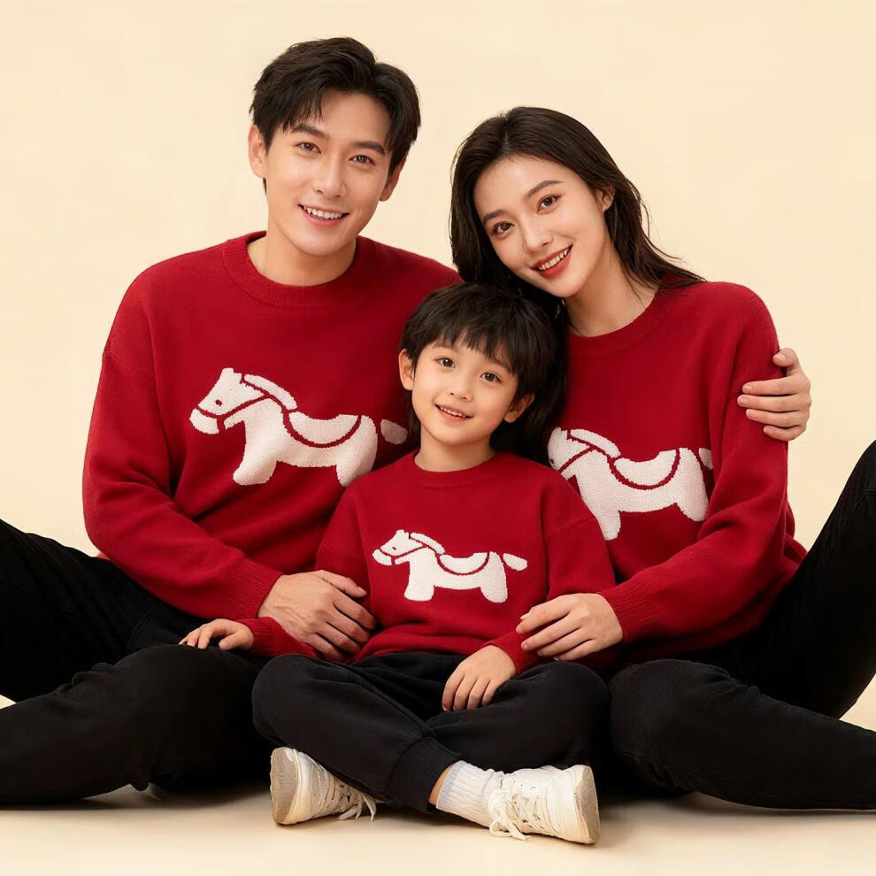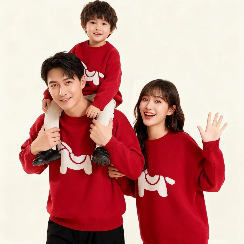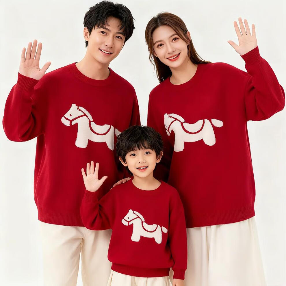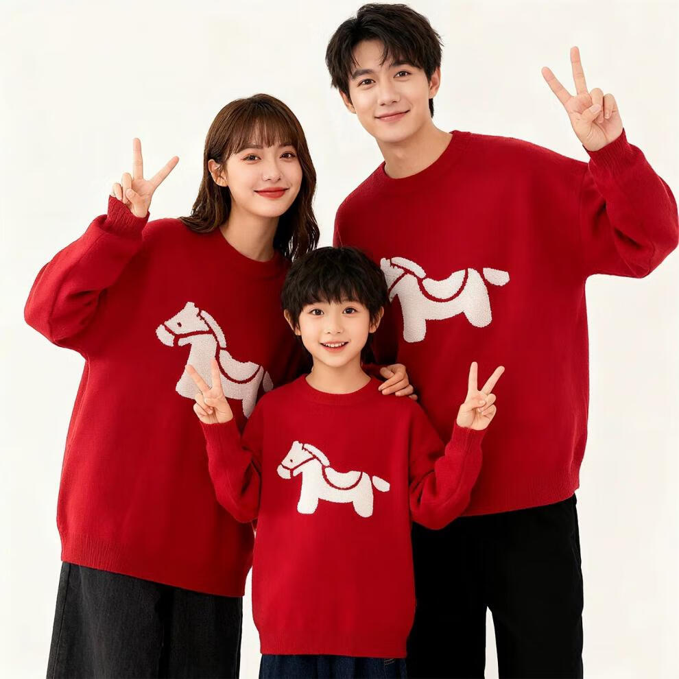 G.duck Year of the Horse parent-child clothing for a family of three 2026 new Spring Festival New Year's greetings clothes mother and son mother-daughter red New Year sweater red 175 L