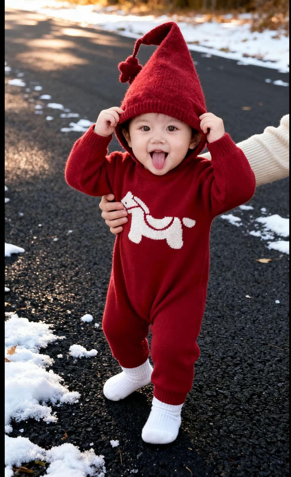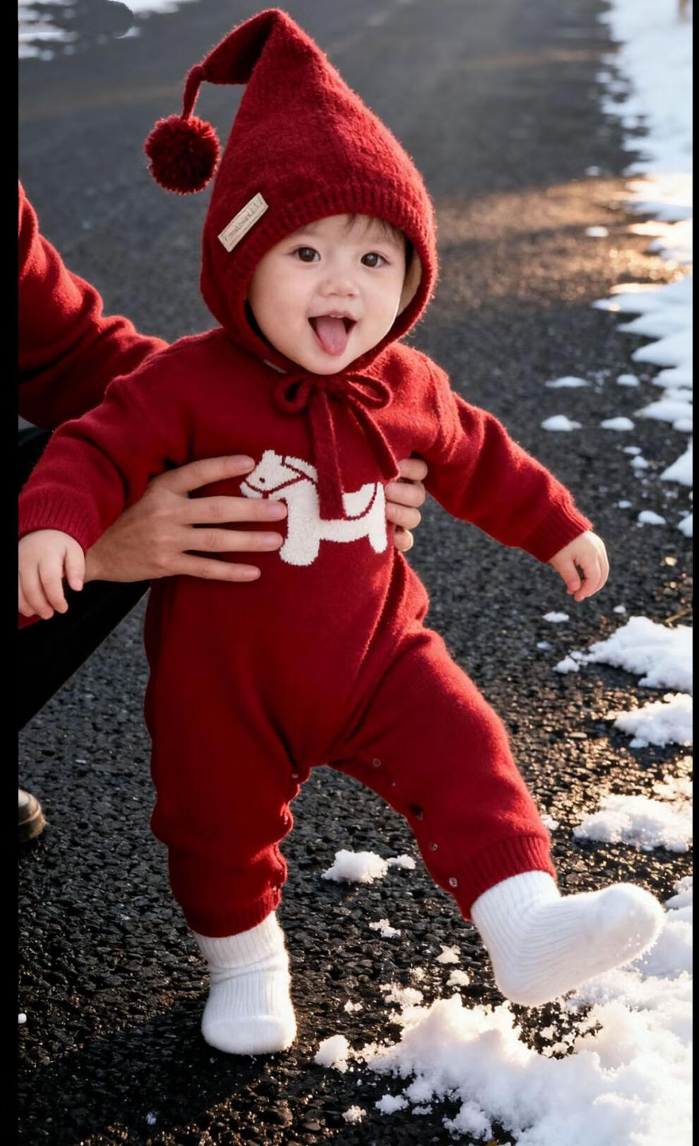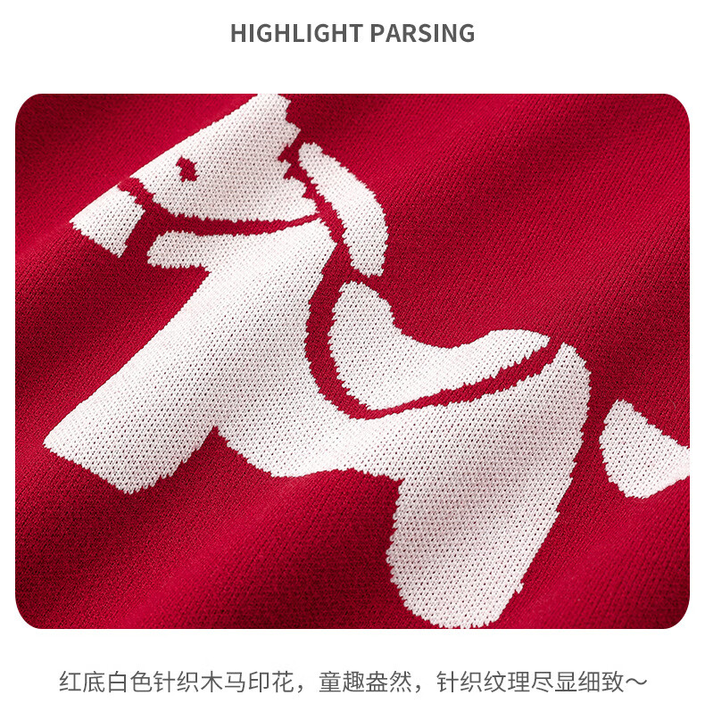 G.duck Year of the Horse parent-child clothing for a family of three 2026 new Spring Festival New Year's greetings clothes mother and son mother-daughter red New Year sweater red 175 L