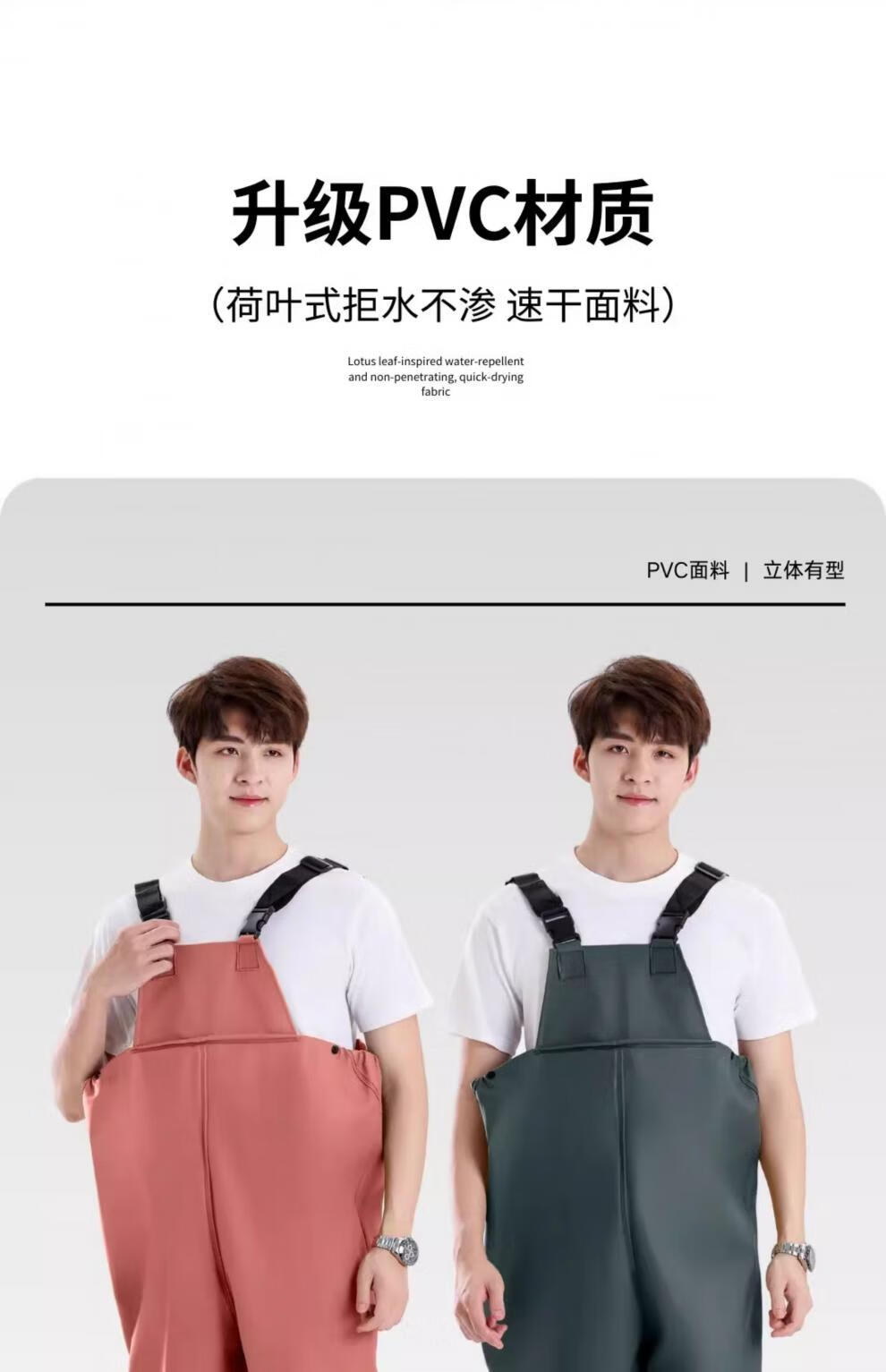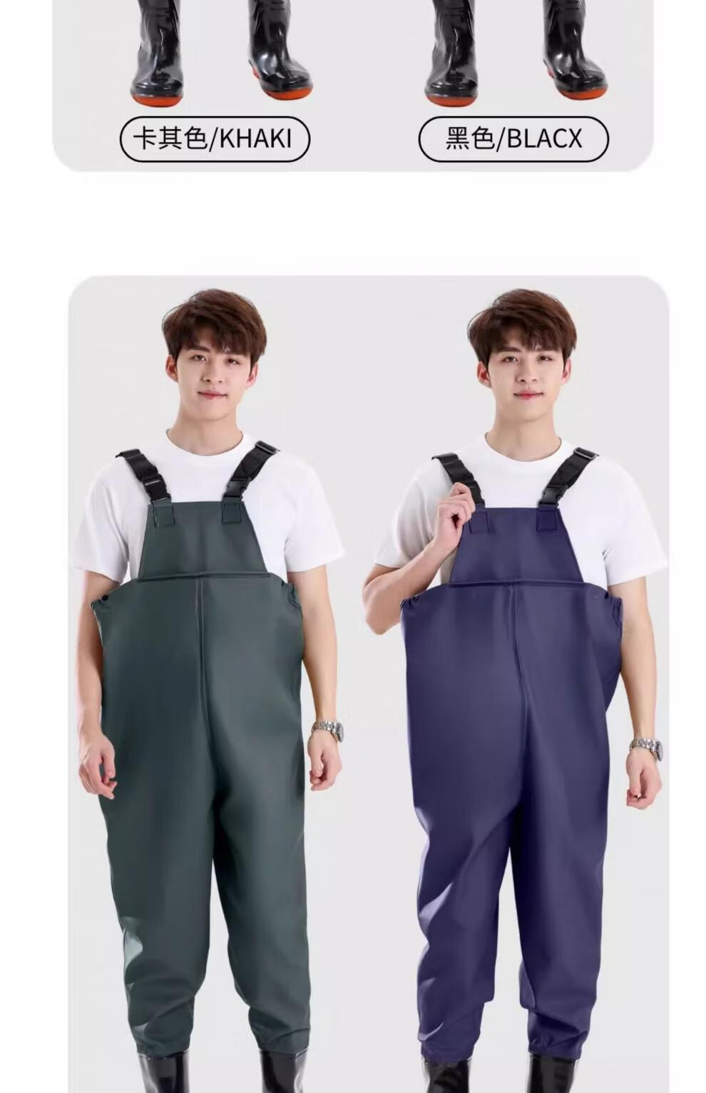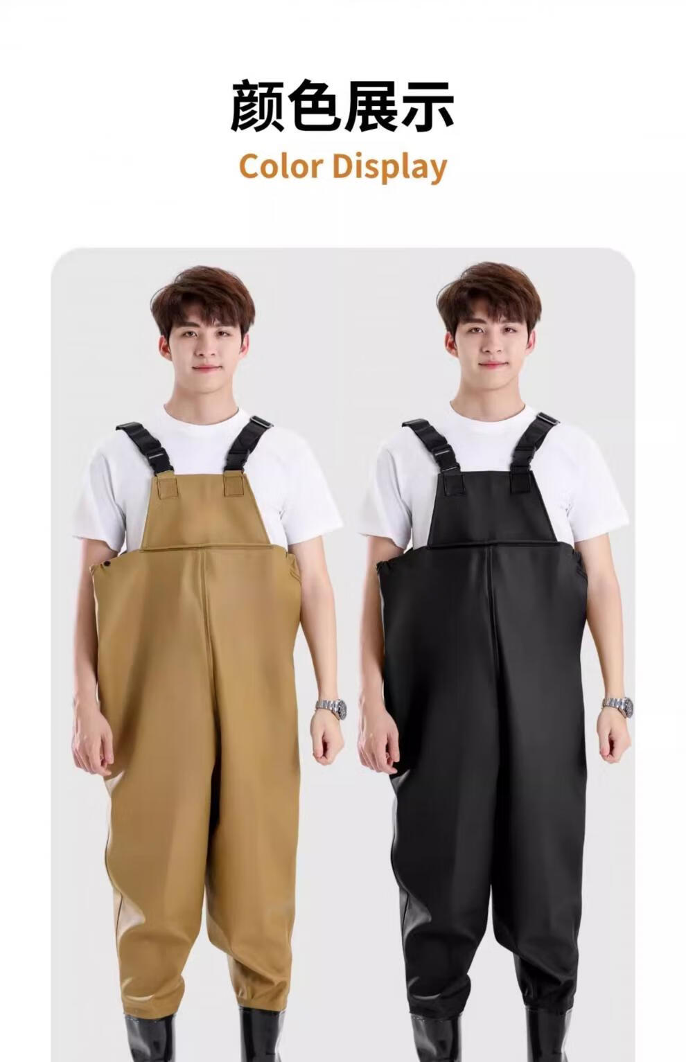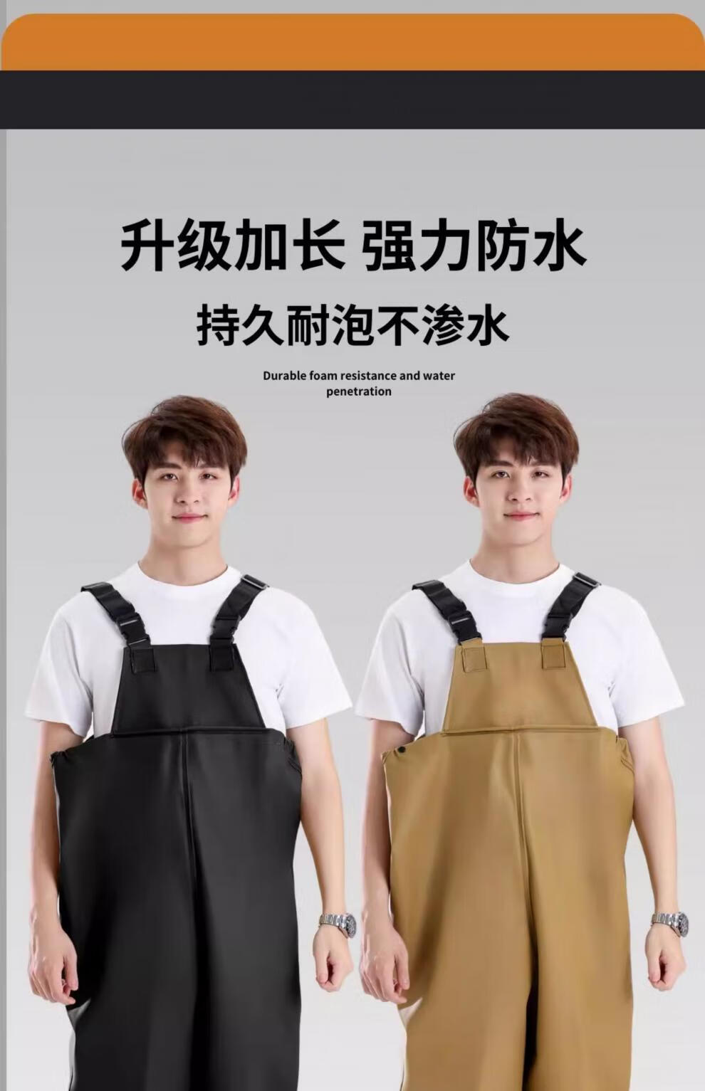 Meng Lanniao thickened one-piece waders for men, full-body waterproof rain pants, water shoes, fishing clothes, wear-resistant and durable leather trousers, black suspender waders (thickened + wear-resistant), shoe size 45