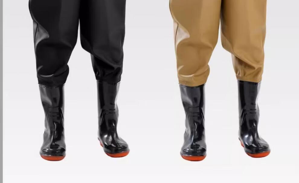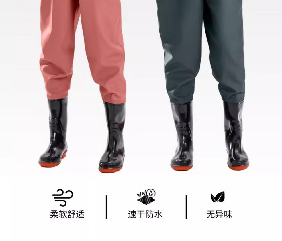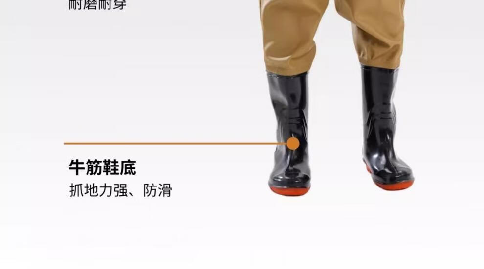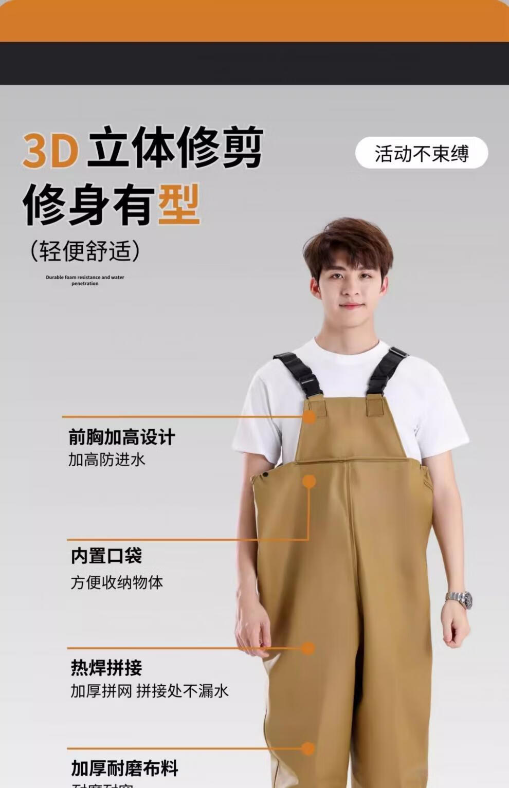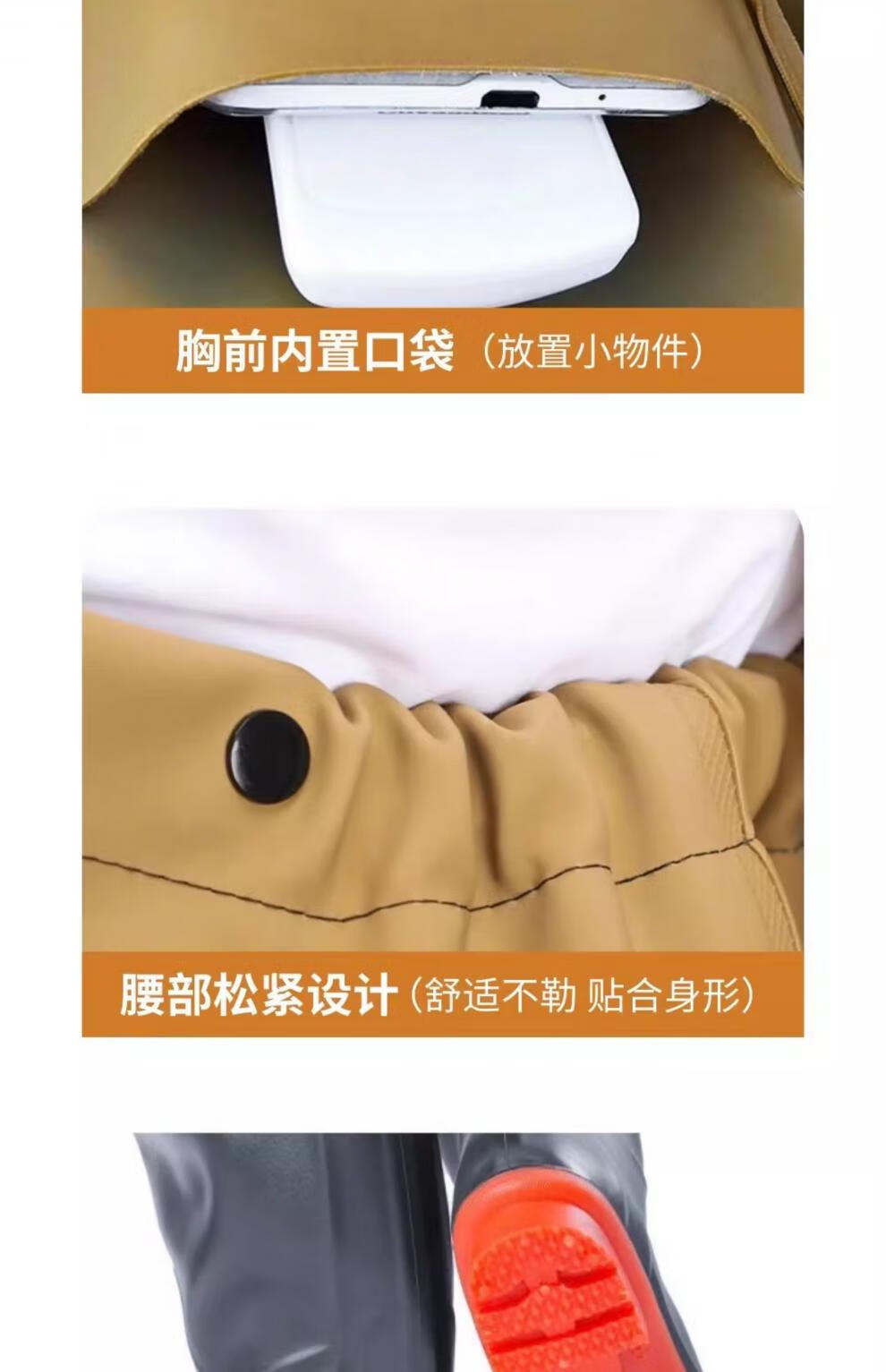 Meng Lanniao thickened one-piece waders for men, full-body waterproof rain pants, water shoes, fishing clothes, wear-resistant and durable leather trousers, black suspender waders (thickened + wear-resistant), shoe size 45
