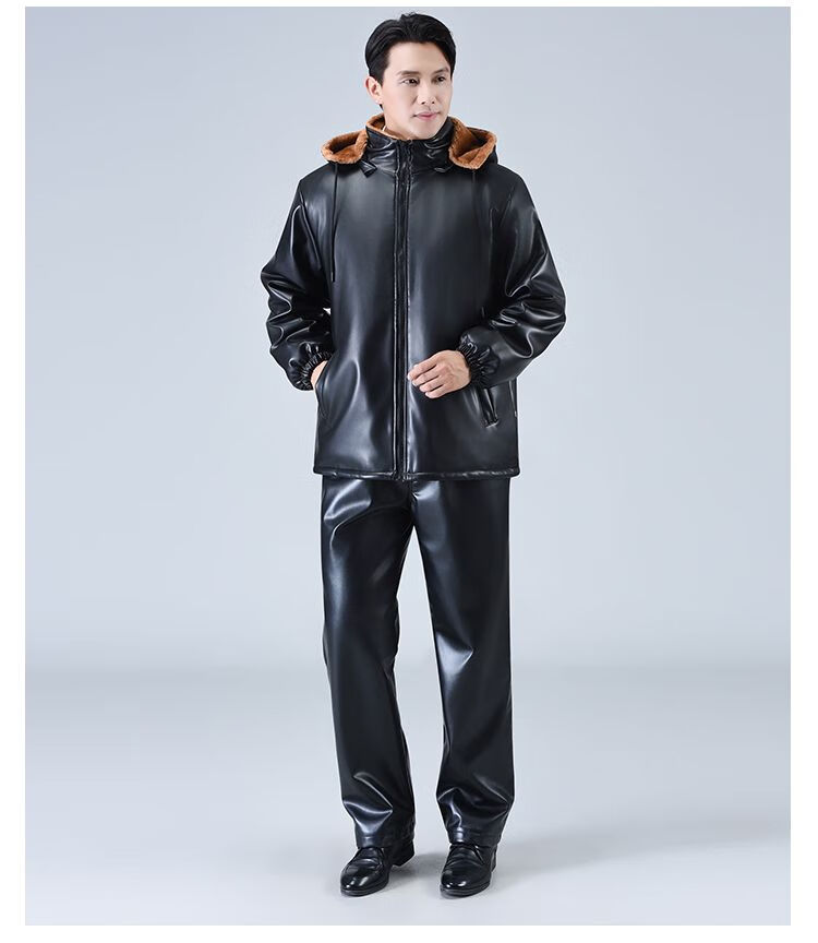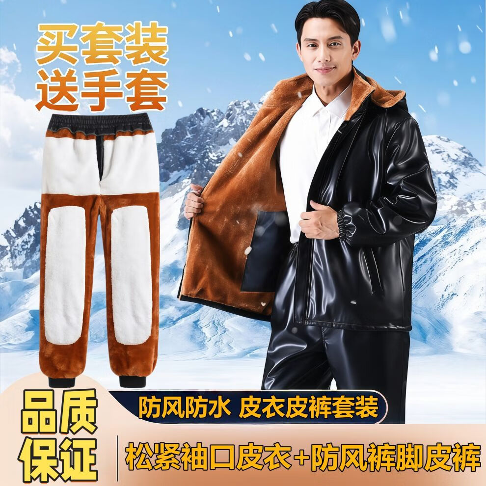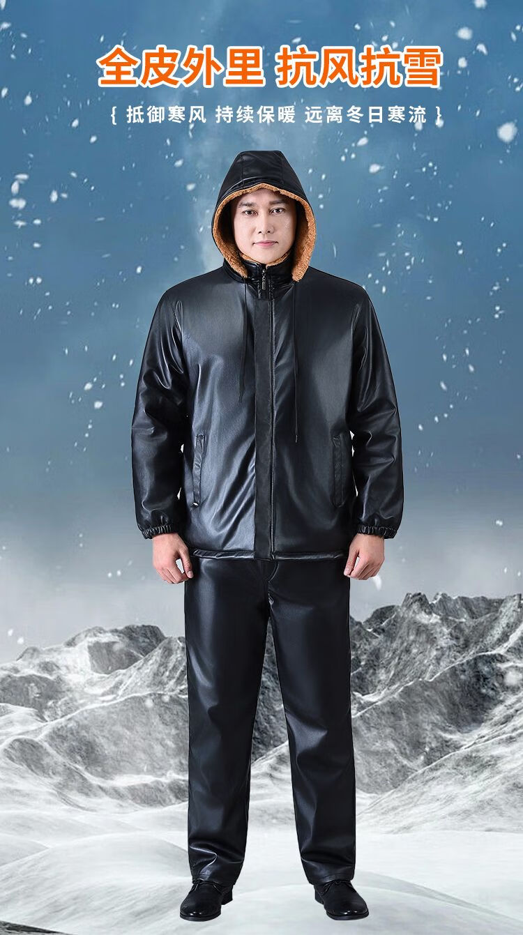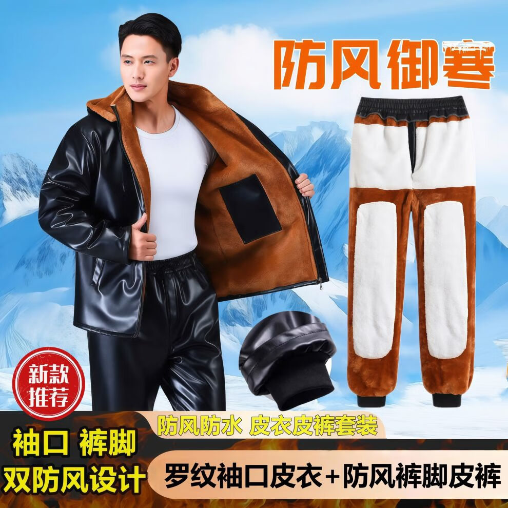 JEEP SPIRIT Костюм кожаной куртки и кожаных брюк Jeep мужской бархатный утолщенный для езды на вынос для вождения ветрозащитная, водонепроницаемая, теплая и морозостойкая спецодежда кожаная новая кожаная куртка ветрозащитная ребристые утолщенные манжеты 5XL (специальный размер) 180-200Джин Цзинь равен 0,5 кг